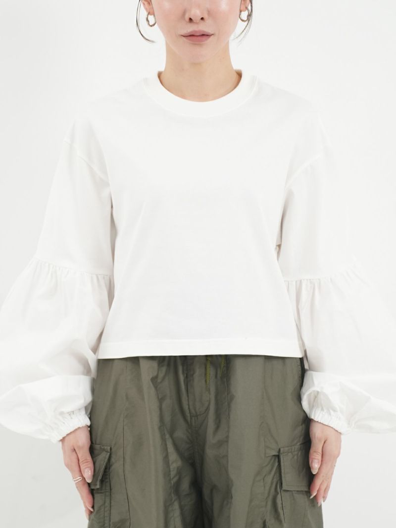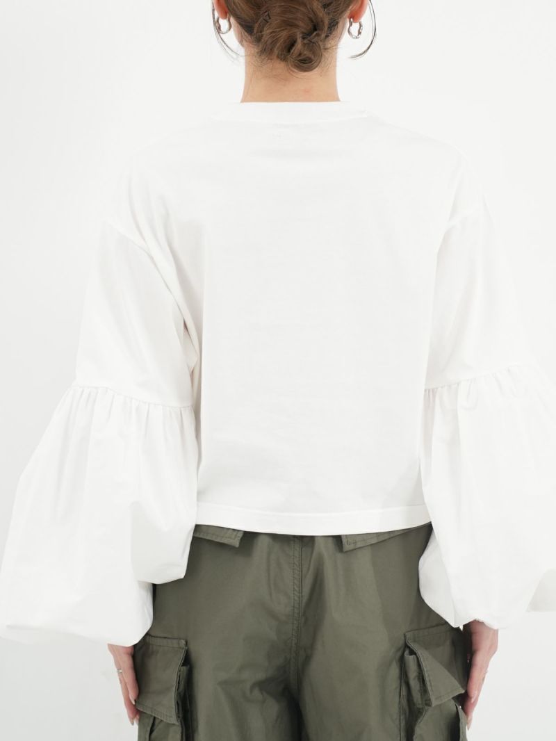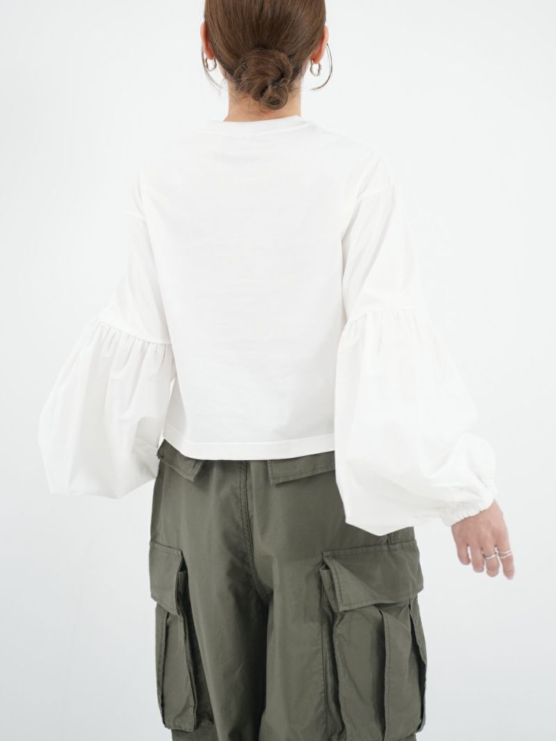 袖のパフスリーブと丈の短さがポイントのロニースコッツ別注カットソー。