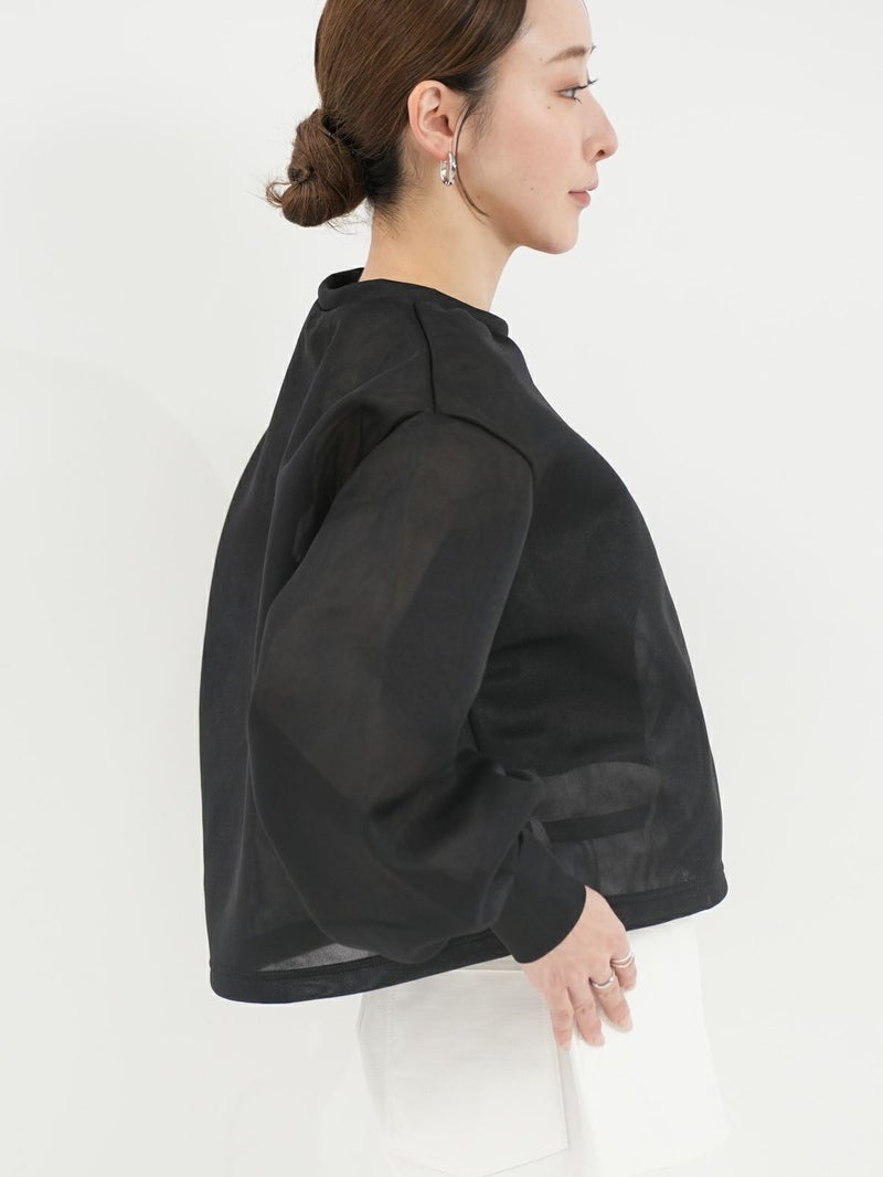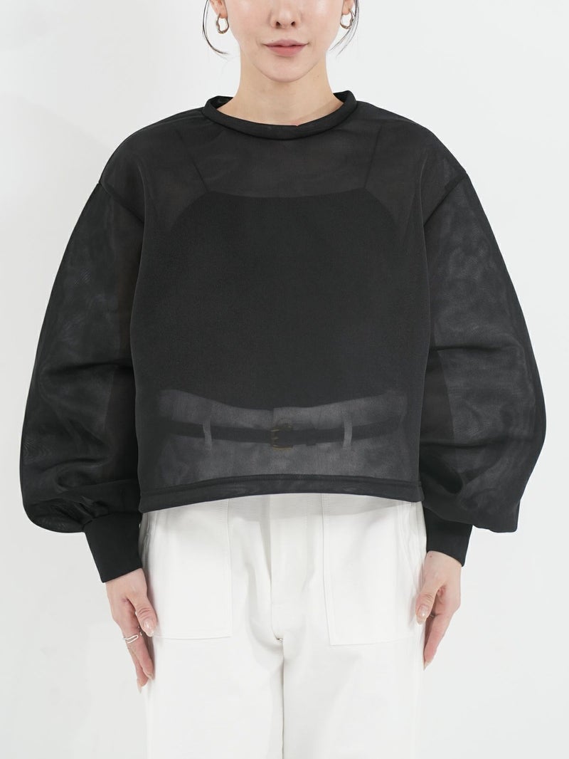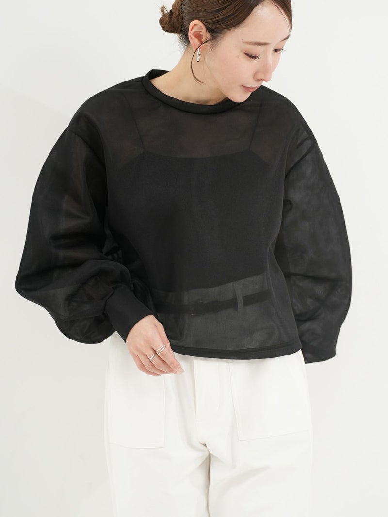 シアー感のあるダンボール素材を使ったロニースコッツ別注トップス。 シンプルな形ですが、立体感と程よい厚みで1枚でも様になります。インナーにキャミソールやカットソーなどを重ねて長いシーズン着用頂けます。