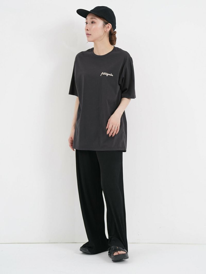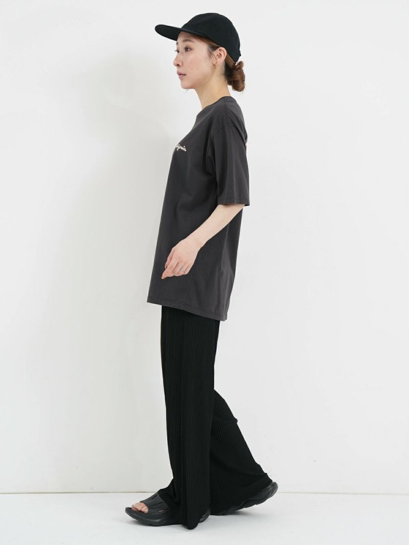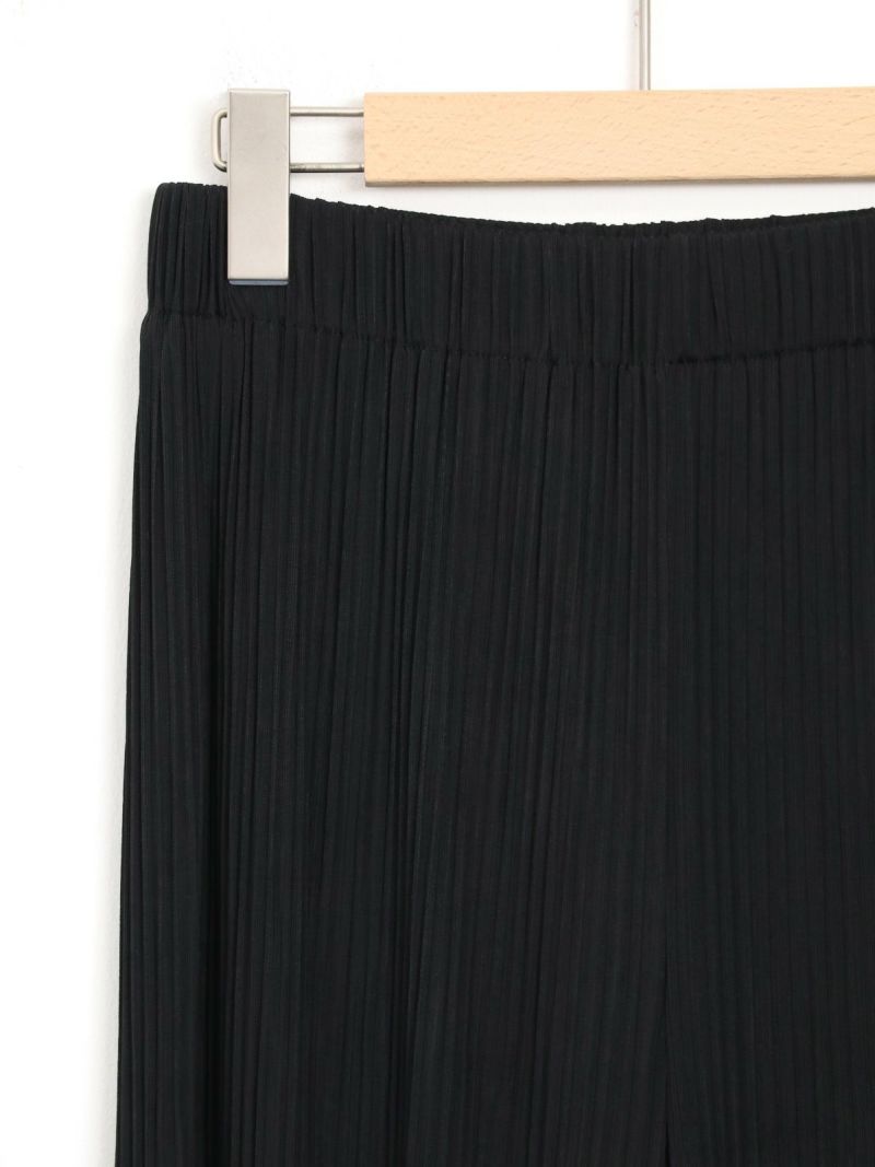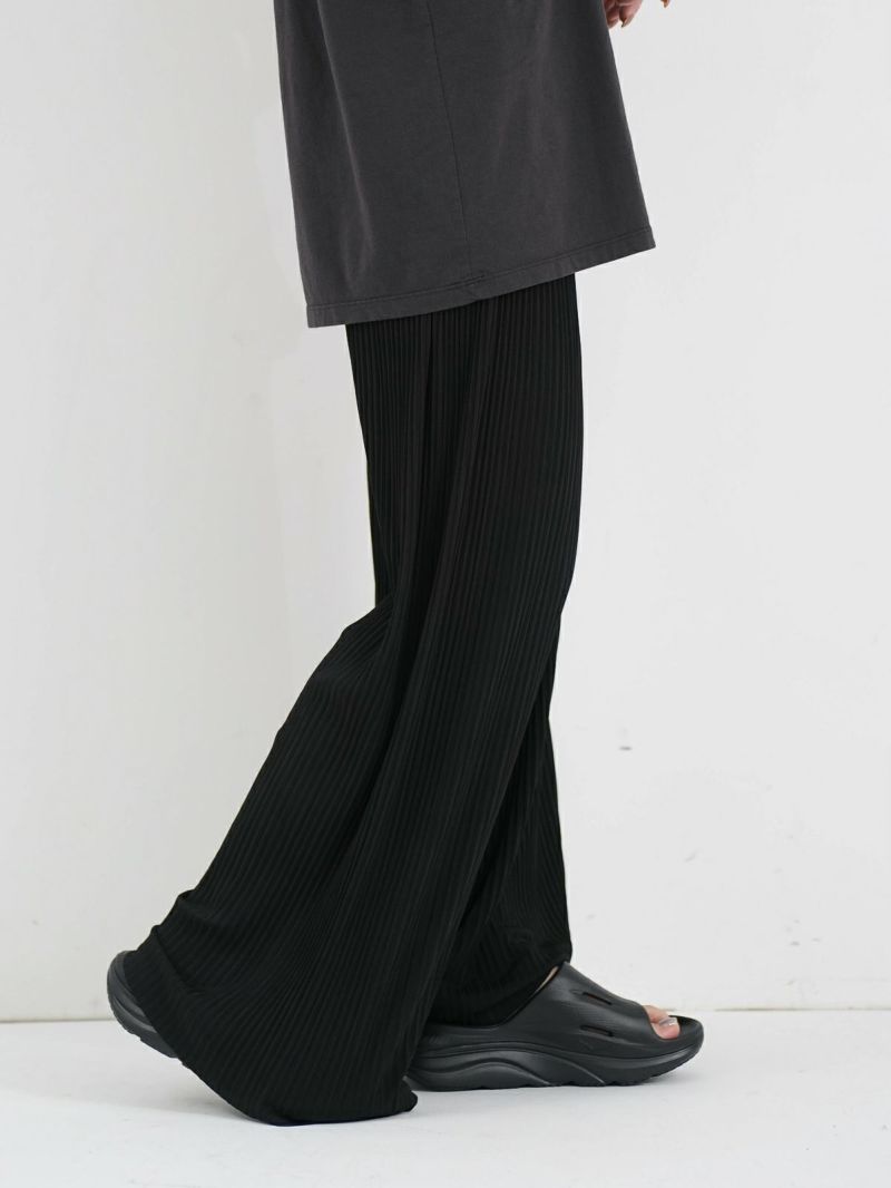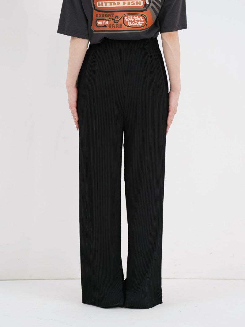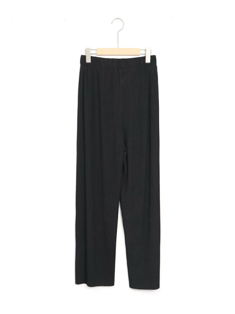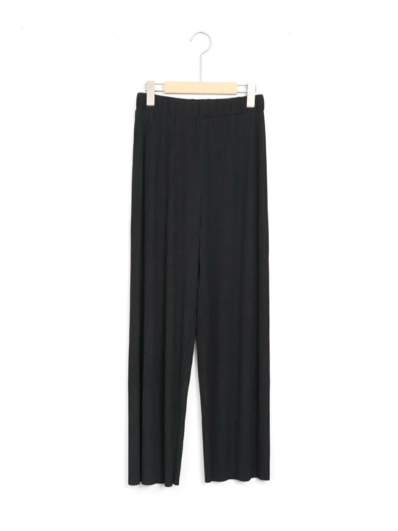 プリーツデザインのイージーパンツ。 光沢のある生地感で上品な雰囲気。 ウエストはゴム仕様、ストレッチの効いた生地でラクな着心地です。ゆったりめなTシャツやシャツと合わせた大人カジュアルスタイルにもおすすめです。