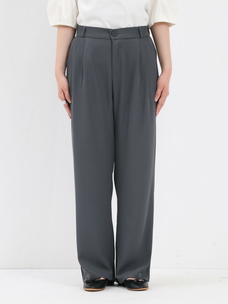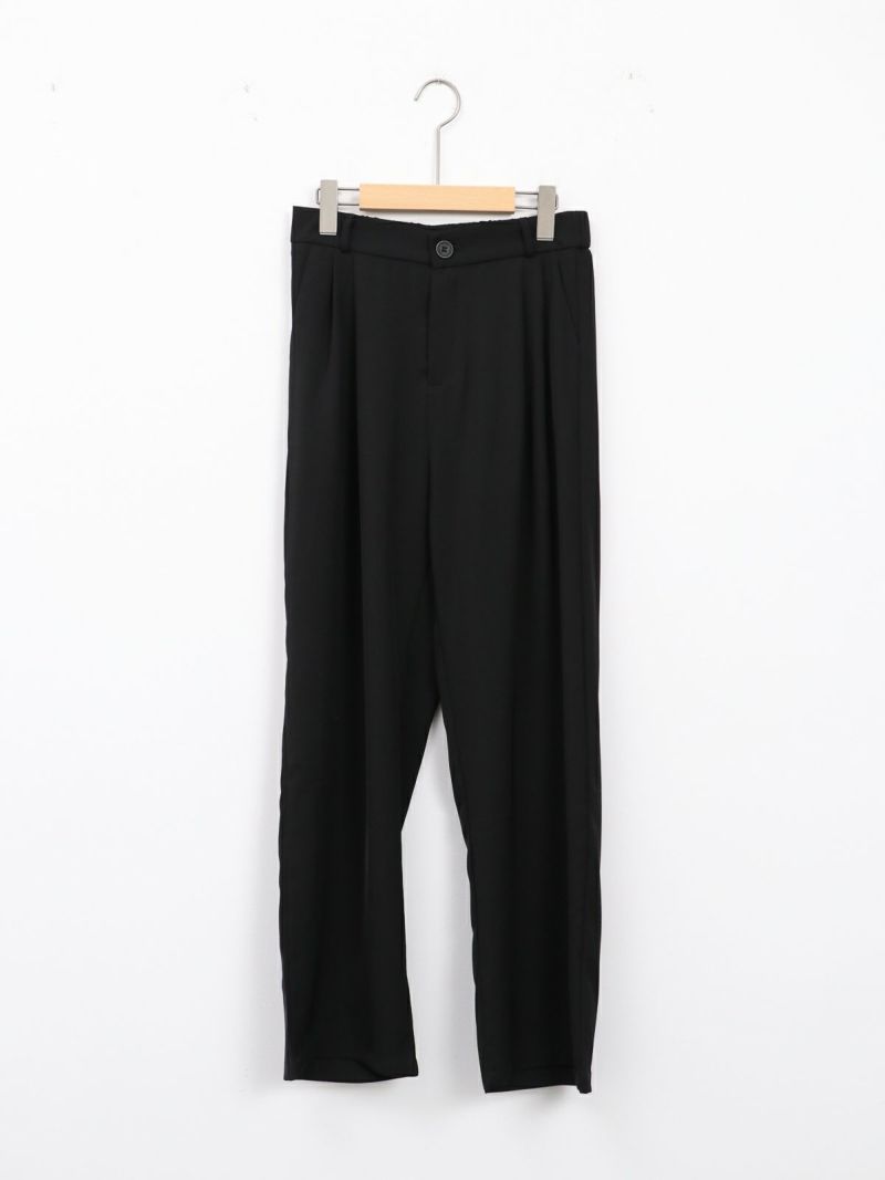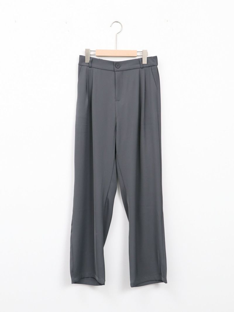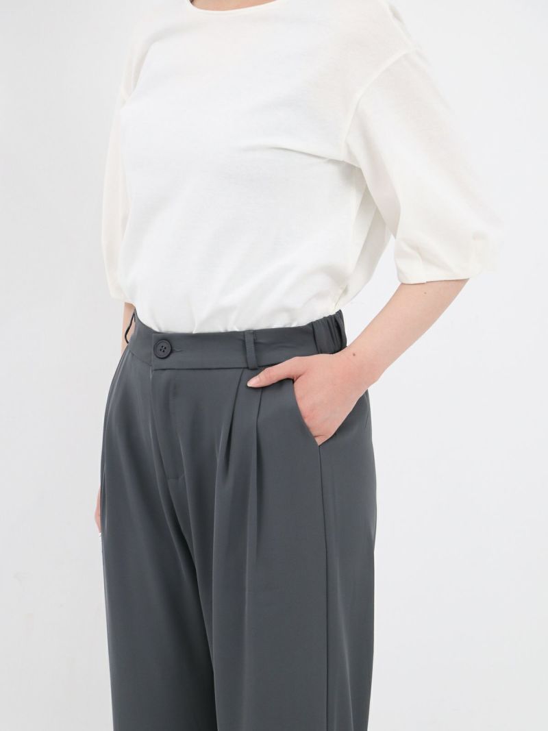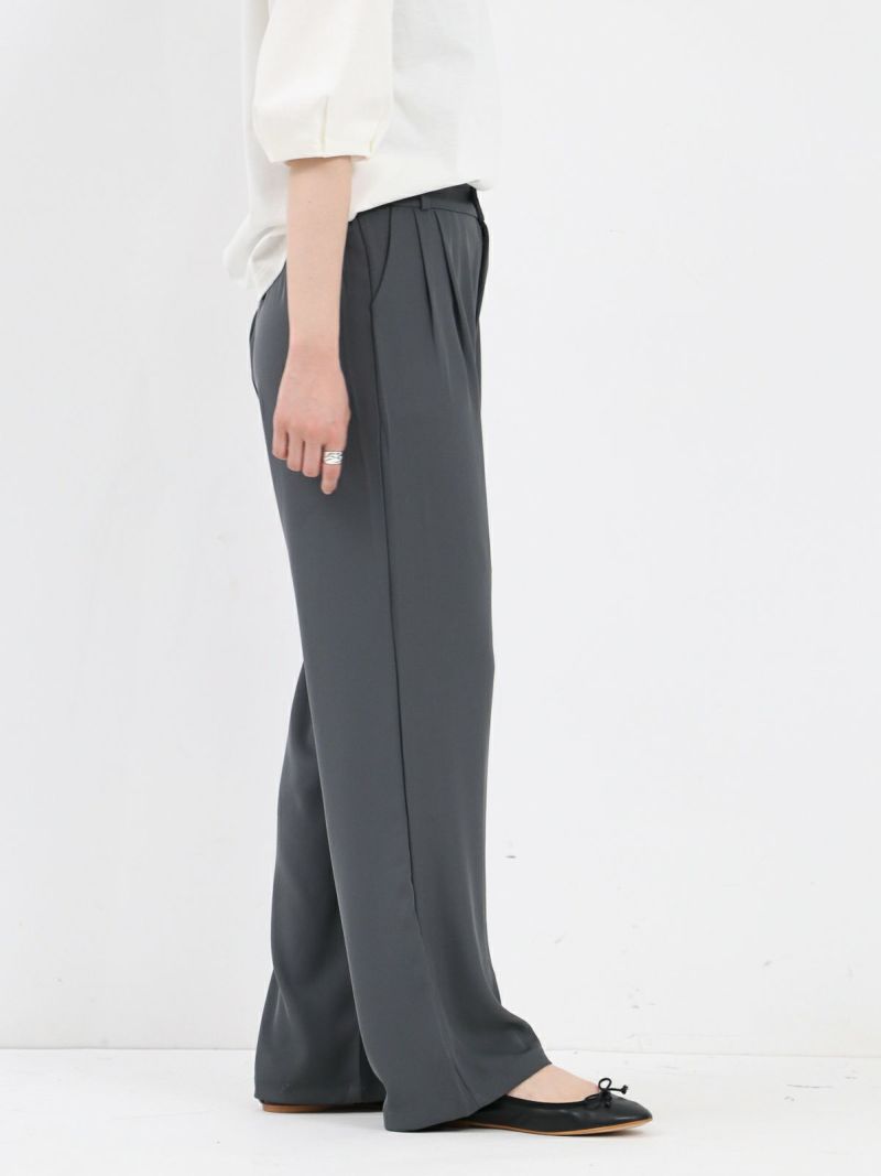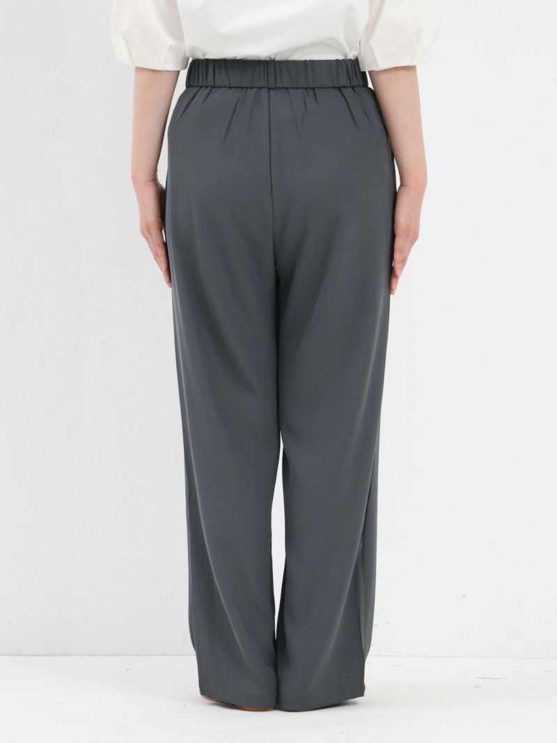 とろんとした素材が魅力のタックパンツ。 ウエストは後ろゴム仕様で履き心地も抜群。お仕事から普段着まで幅広く使える一枚です。