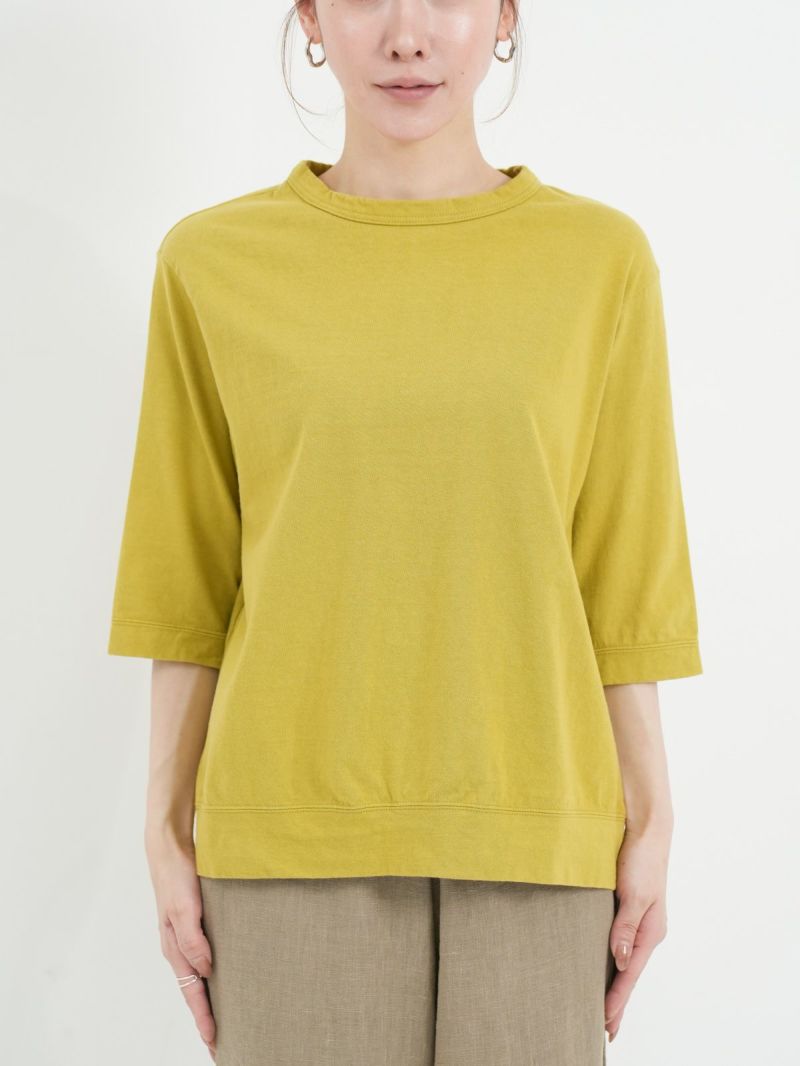 程よく厚みのある生地感が特徴のTシャツ。 コットン100%の柔らかな着心地ですっきりとしたシルエットが魅力。トレンドに左右されない、ベーシックなデザインで合わせるアイテムを選びません。色違いでおすすめです。