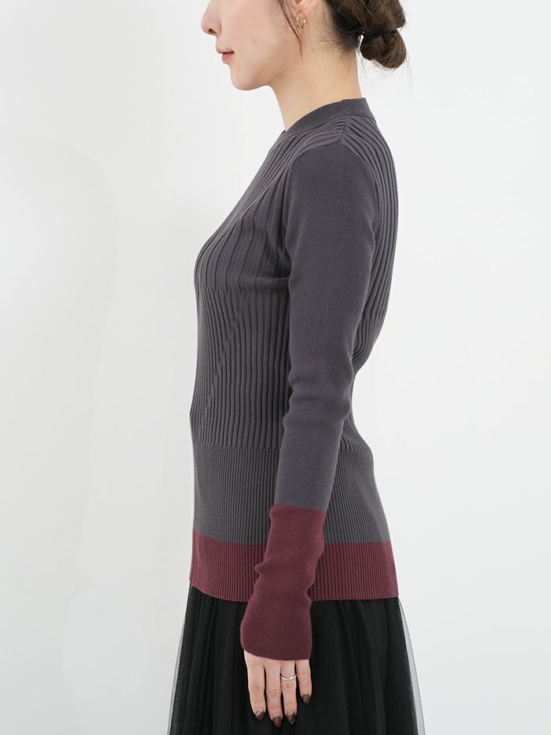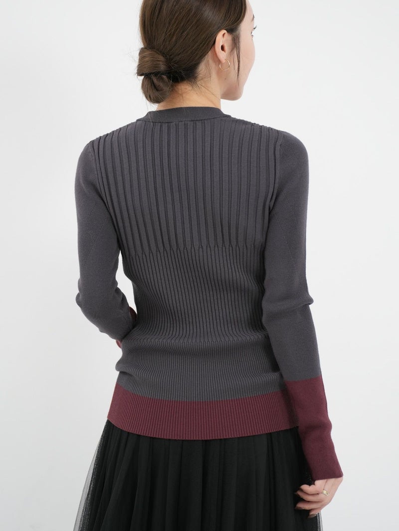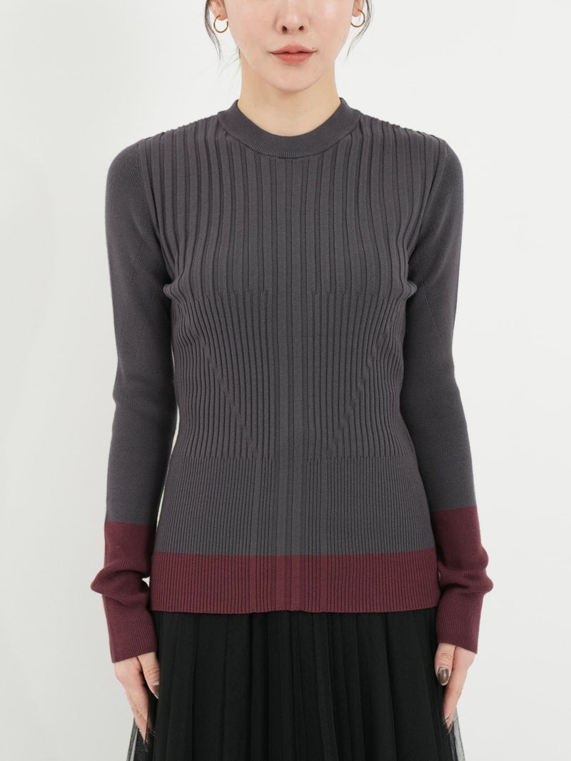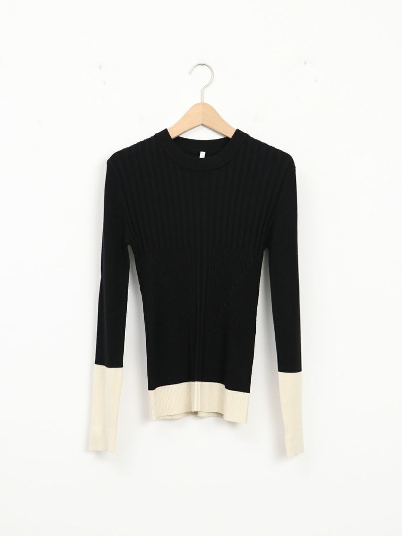 デイリーに活躍するリブニット。 裾と袖の配色デザインがさりげないアクセントに。立体感あるリブ編みで程よくフィットし、着やすさも◎シンプルながら一枚で主役になり、インナー使いや重ね着にも活躍する万能アイテムです。
