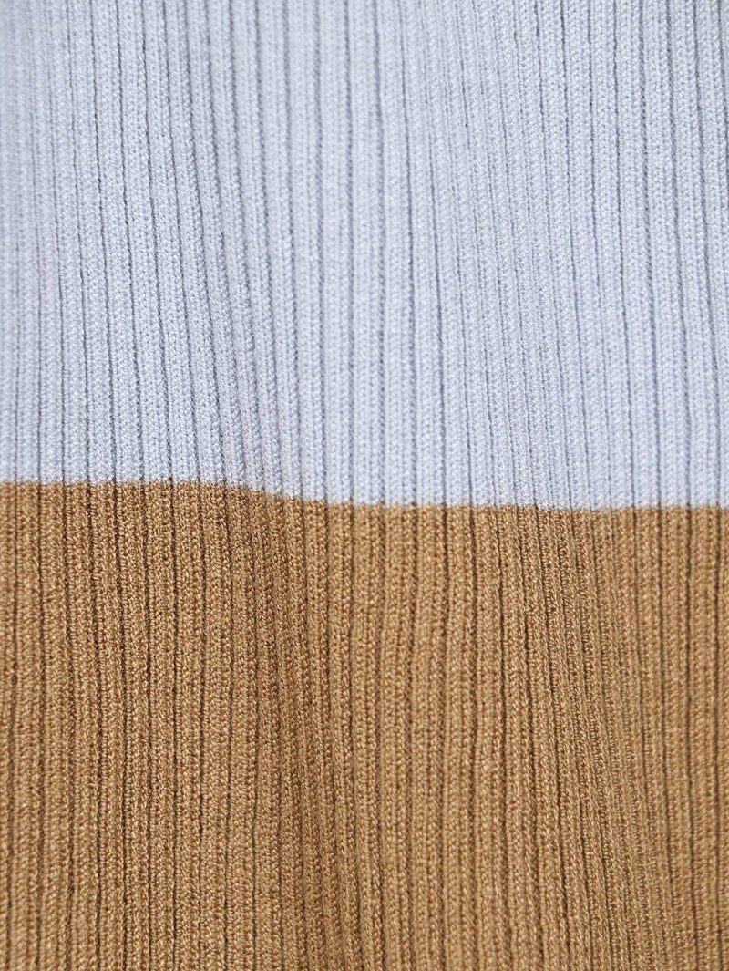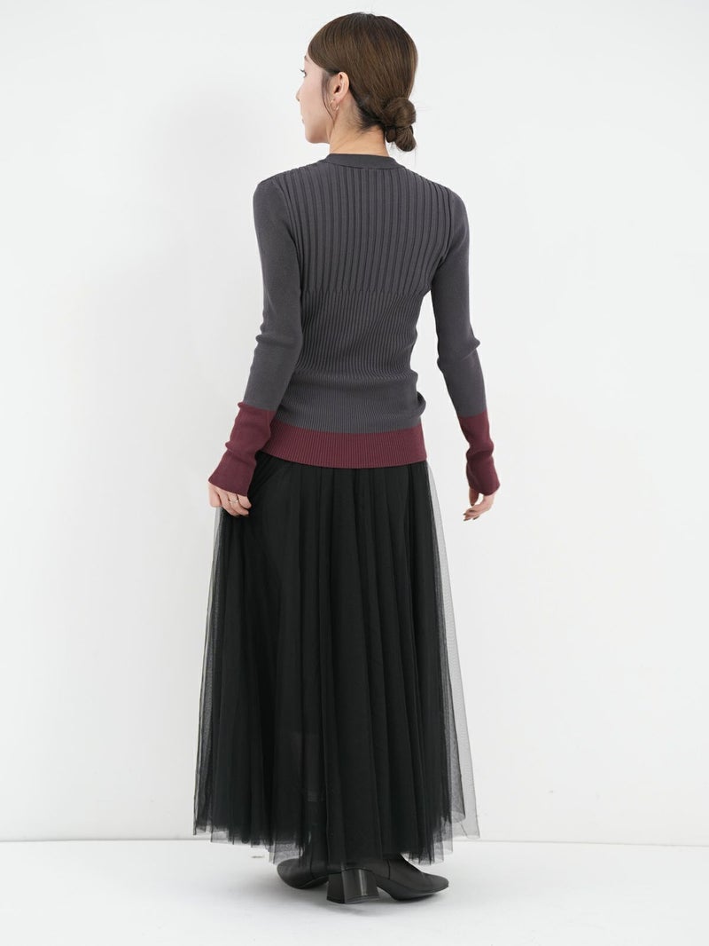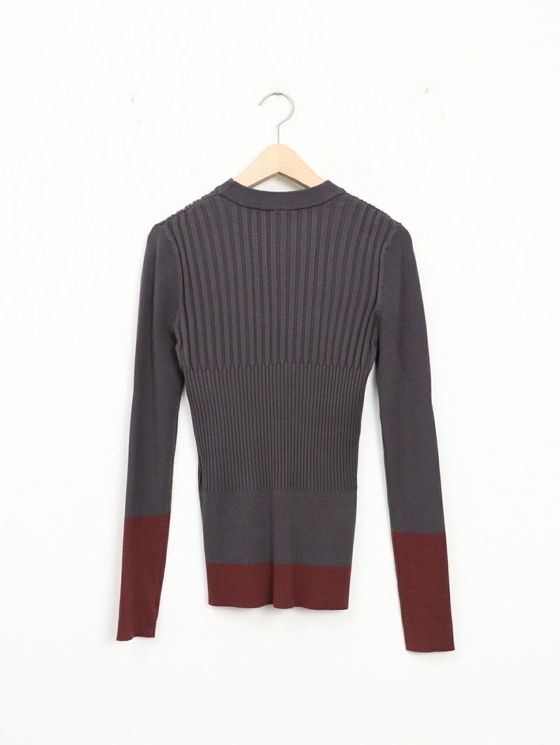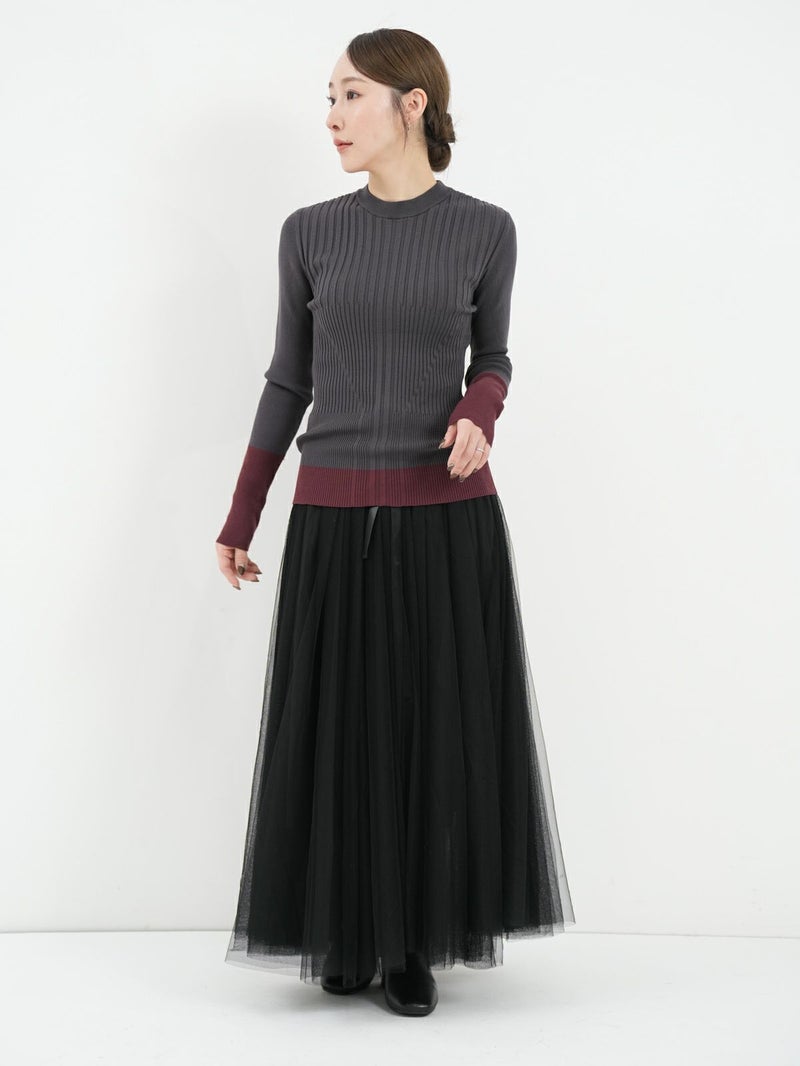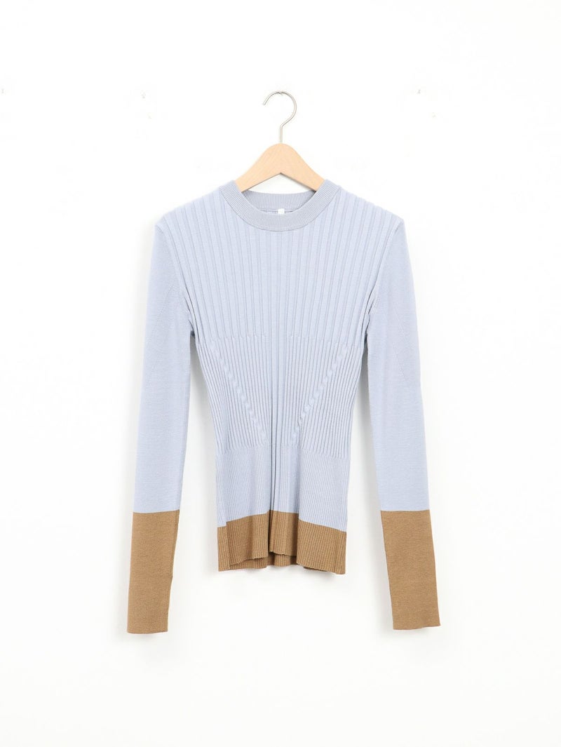 デイリーに活躍するリブニット。 裾と袖の配色デザインがさりげないアクセントに。立体感あるリブ編みで程よくフィットし、着やすさも◎シンプルながら一枚で主役になり、インナー使いや重ね着にも活躍する万能アイテムです。