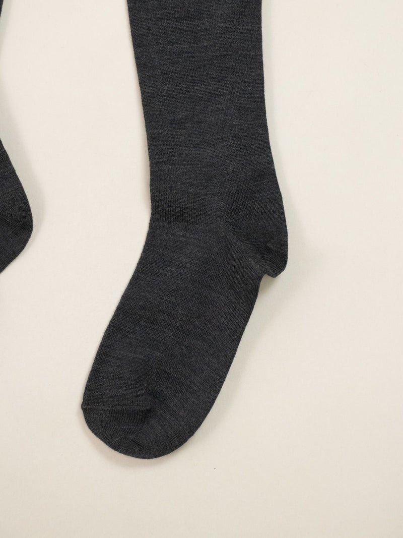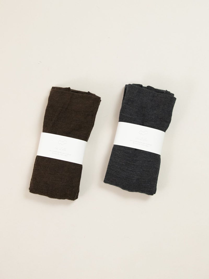 プレーンで上質なタイツ。 細リブで伸びがよい履き心地。細番手のメリノウールを使用しているため、チクチク感がなく、保温性が良いうえ、汗を吸っても蒸れにくいです。ウエスをゴムと一緒に編むことで締め付け感を少なくしています。