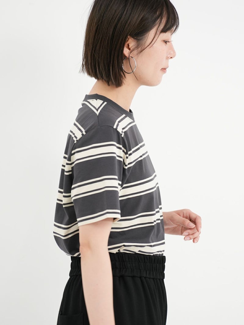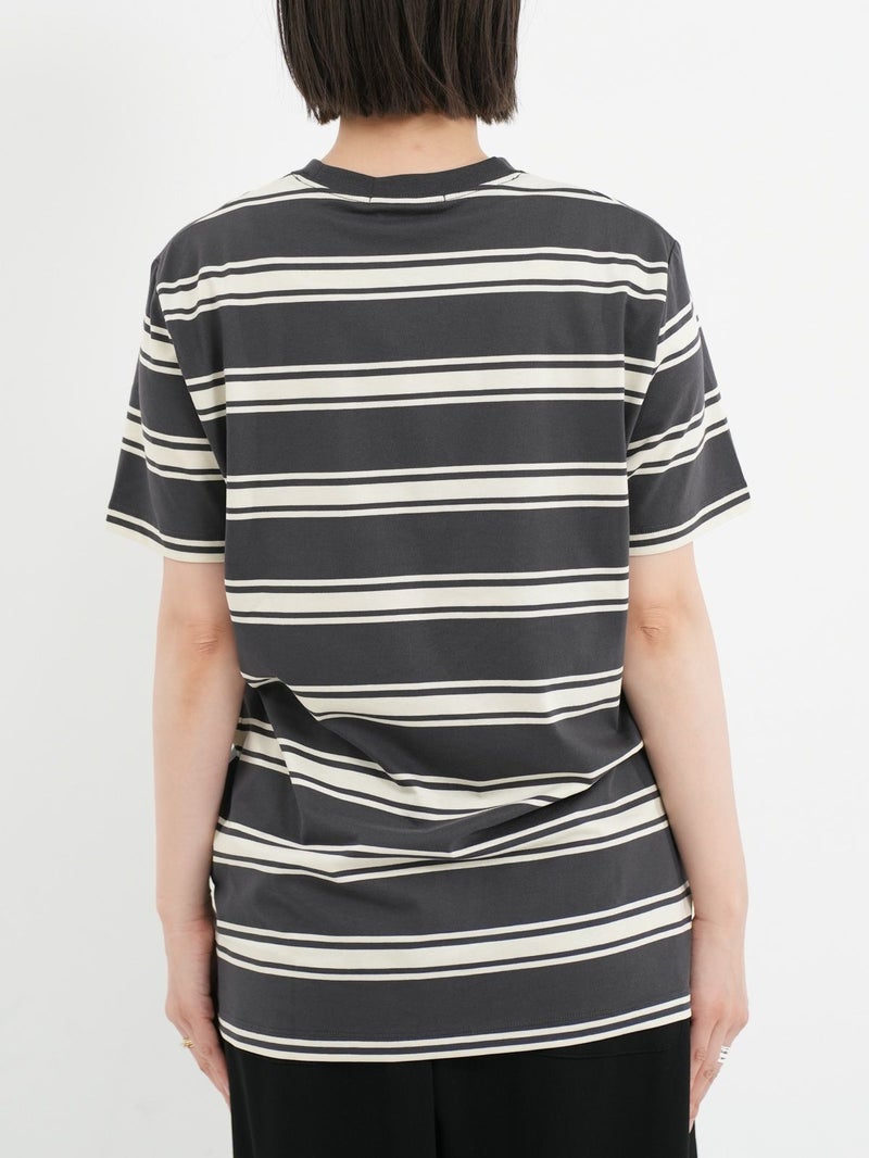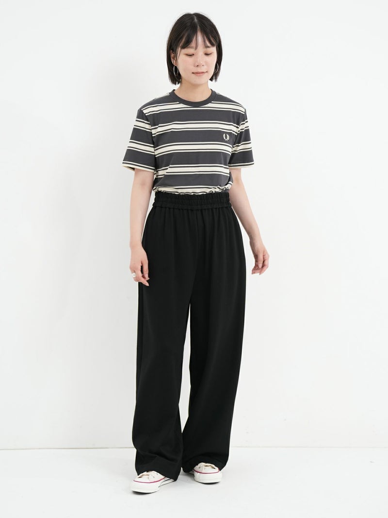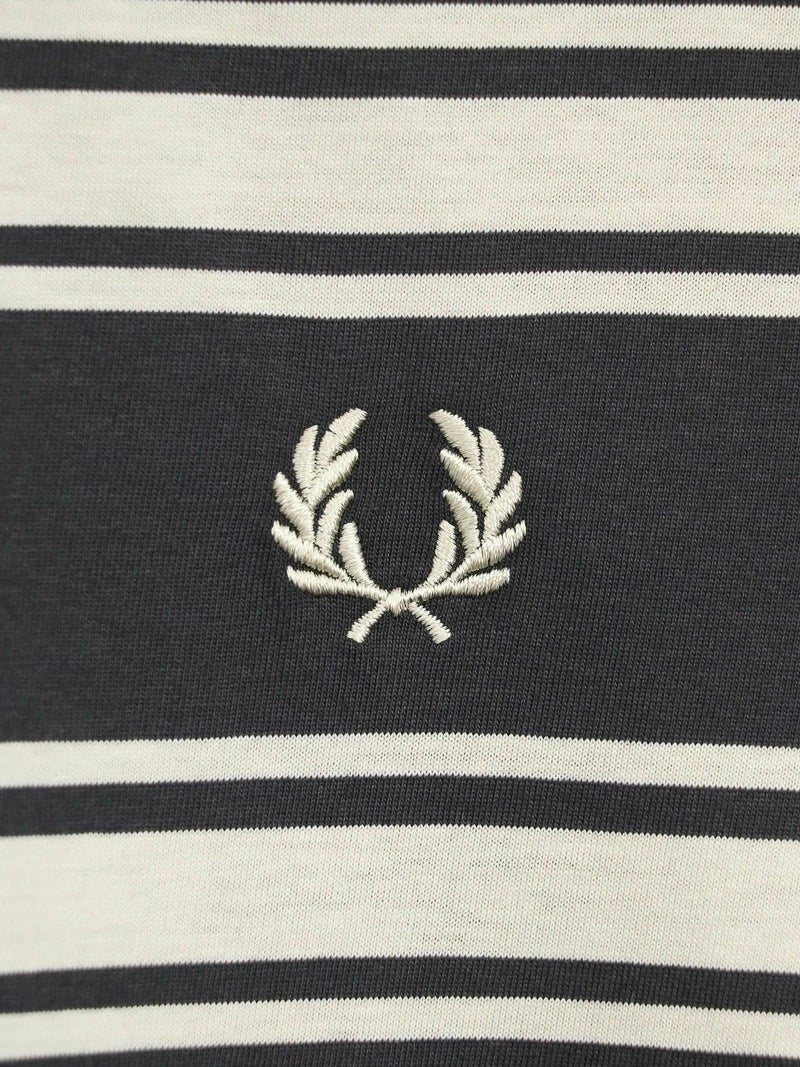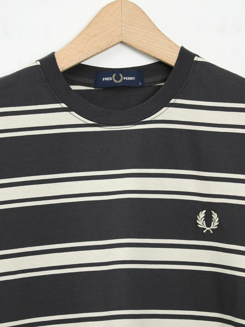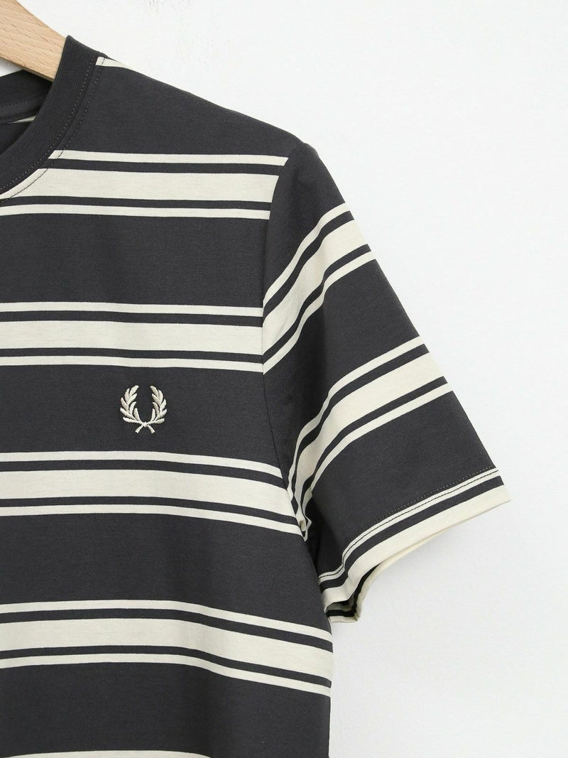ピッチが太めのボーダーデザインが大人カジュアルコーデに馴染むショートスリーブTシャツ。 きれいめコーデやモードスタイルにもマッチする、落ち着いたトーンの配色がシックな雰囲気を放つ一枚です。FRED PERRYを象徴するローレルリースのワンポイントロゴ刺繍をあしらったベーシックなデザイン。中で身体が泳ぐくらいのレギュラーフィットシルエットながら、ルーズ過ぎずタイト過ぎない、バランスの良いサイジングがポイント。