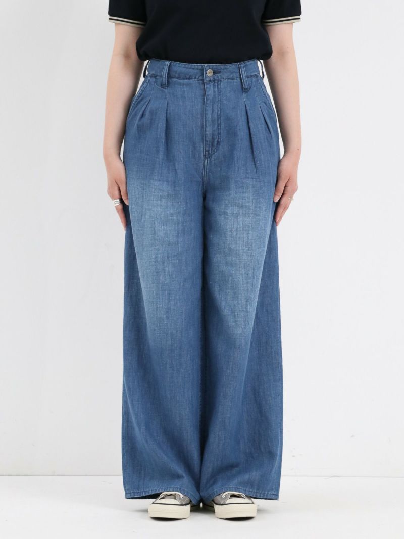 Healthy denimから2タックデザインのワイドパンツが入荷。 コットンリネン素材のライトオンスの生地を使用しているため、ボリューム感がありながらも裾幅広く風通しが良いので真夏もべたつかず快適に着用いただけます。Tシャツやリネンシャツに合わせるのがオススメです。