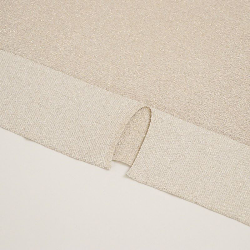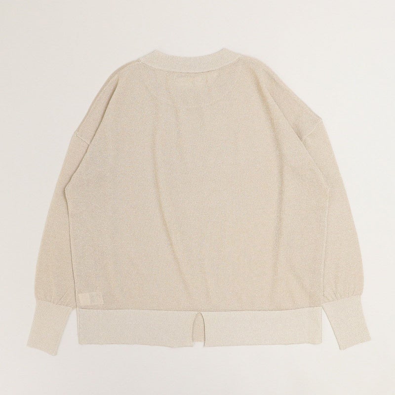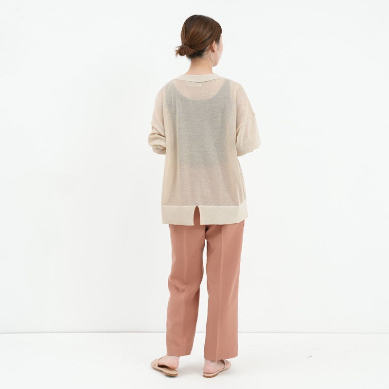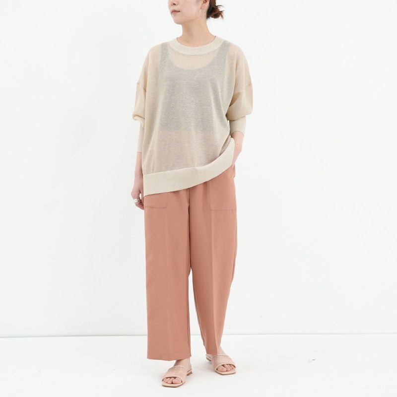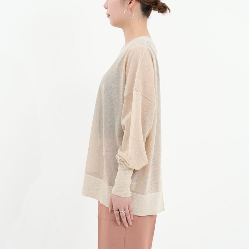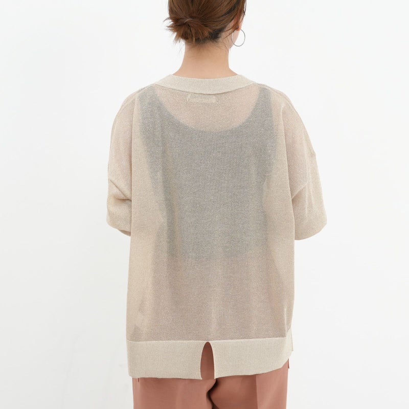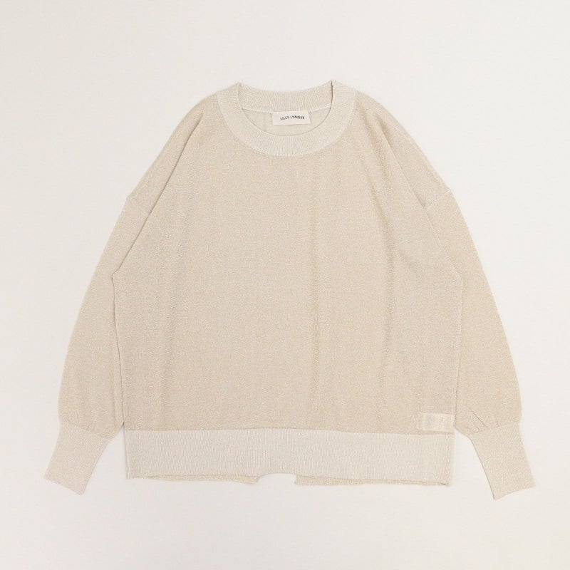 LILLY LYNQUE定番、毎シーズン好評の透け感シャリ感のあるサマーニット。 ラメを引きそろえておりキレイ目にも合わせやすい印象です。清涼感があり、着用期間も長く様々な合わせで楽しんでいただけます。