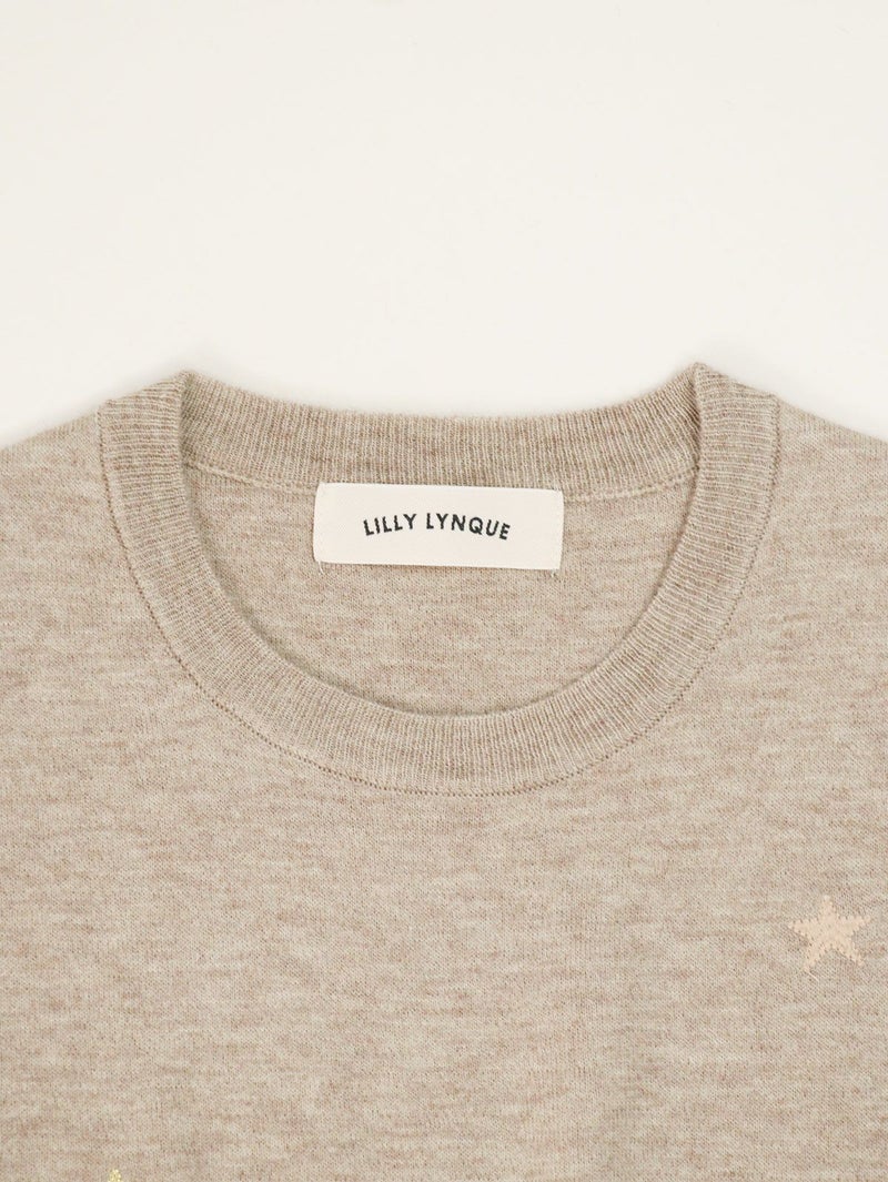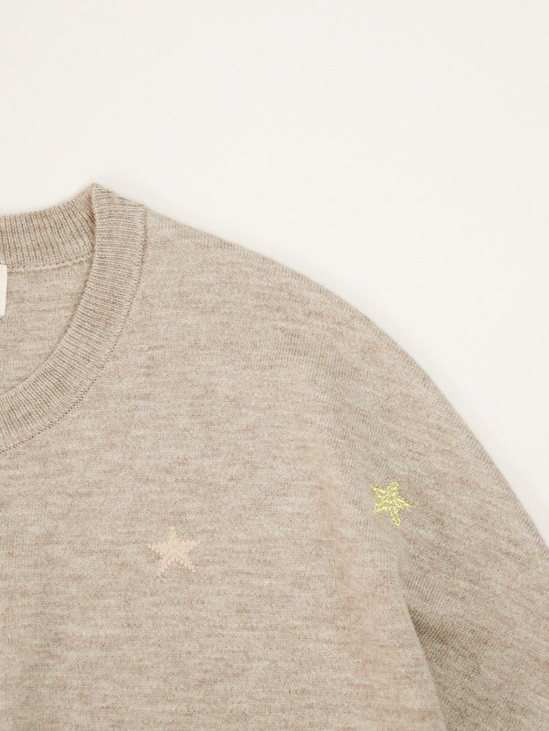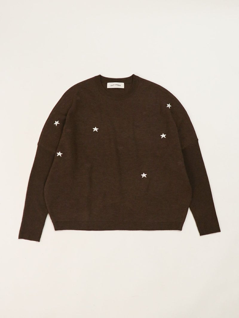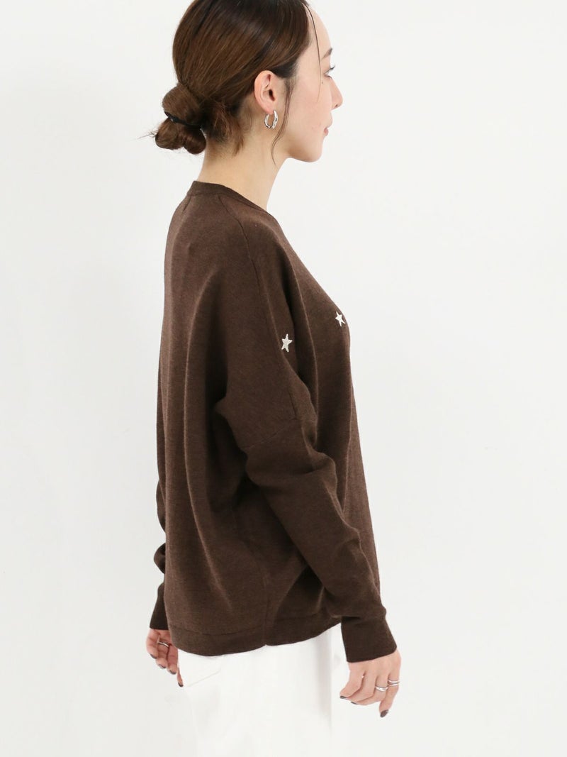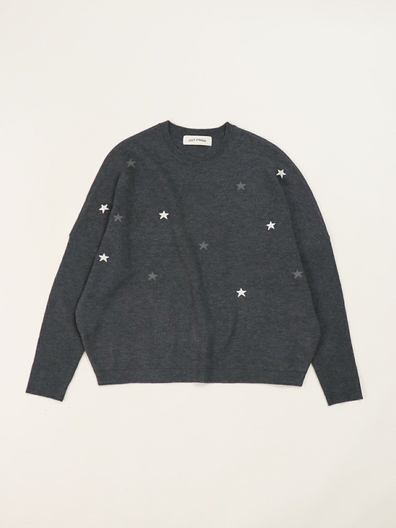 スター刺繍がポイントになったハイゲージニット。 シンプルなクルーネックデザインに、さりげなく輝く星の刺繍を散りばめました。ハイゲージならではのきれいめな表情で、カジュアルすぎず上品な印象に。ウール混ながら繊細な糸を使用しているため、ちくちくしにくく肌触りもやさしい着心地です。どんなボトムにも合わせやすく、デイリーに活躍してくれる1枚です。