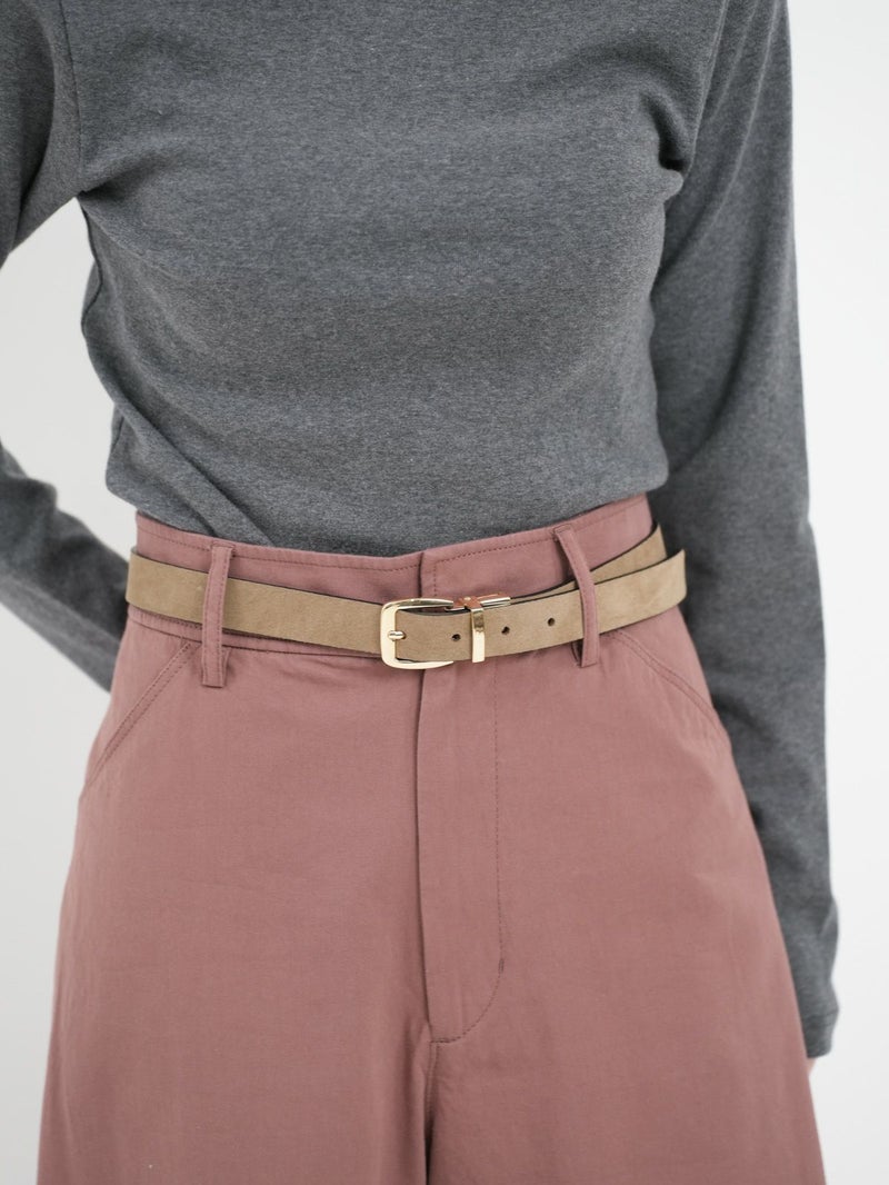 イタリアメイドのレザーベルト。 リバーシブルで使える万能ベルト。ベルト本体とバックルを軽く引き離しながらバックルを回転させることで、ベルトの裏表の切り替えが可能です。