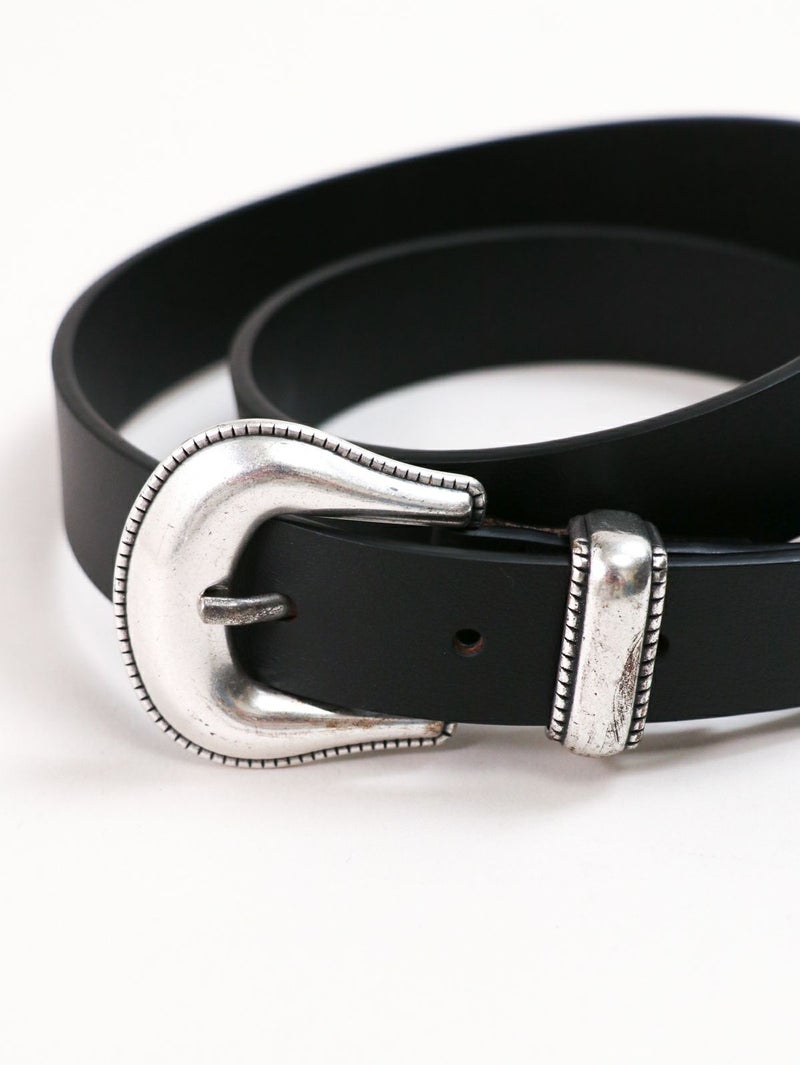 イタリアメイドのレザーベルト。 牛革なので使い込む程レザー特有の経年変化が楽しめます。またバックルが大きめでコーディネートのポイントにおすすめです。