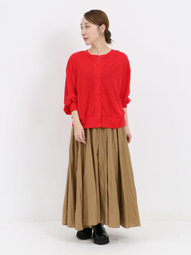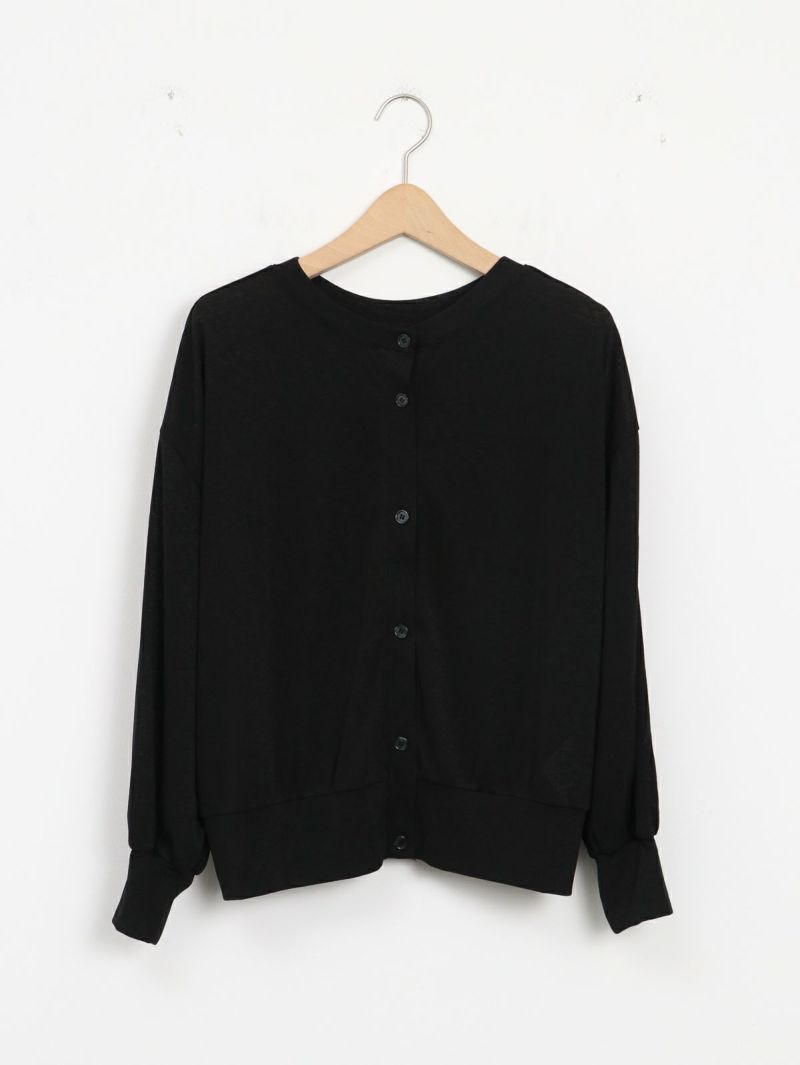 前後どちらにも着用可能なカーディガン。透け感のある薄手のフライス生地で、伸縮性に優れておりレイヤードにも◎