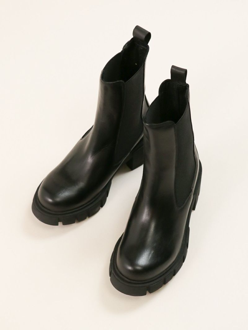 足を入れると重すぎず硬すぎない質感なので、普段履きにもオススメです。足首周りがスッキリ細くみえるバランスなのでスカートと好相性。気軽にブーツを履きたい方に重宝する一足です。