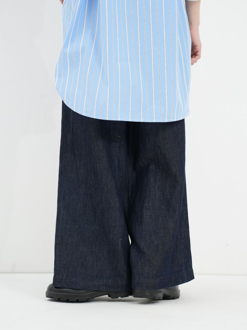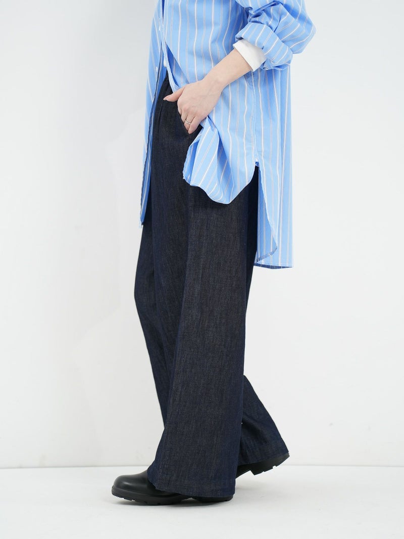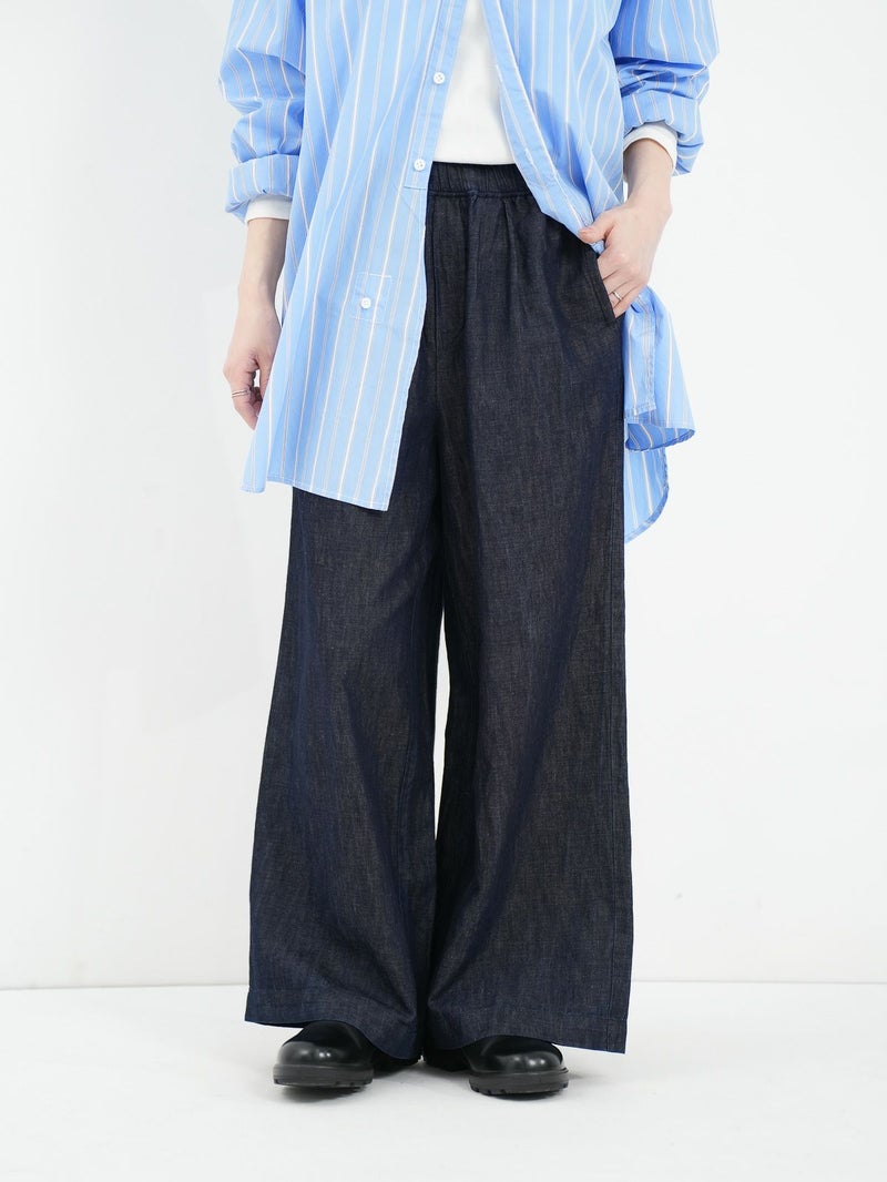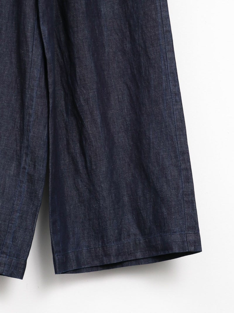 コットン、リネン混紡でナチュラルな素材感のワイドパンツ。 ウォッシュ加工が施され、柔らかく、厚みのない軽やかな着心地です。ショート丈のトップスはもちろん、ワンピースにレイヤードして見せるのも◎
