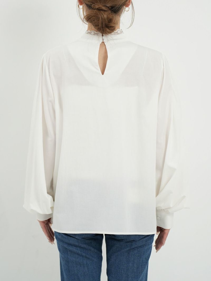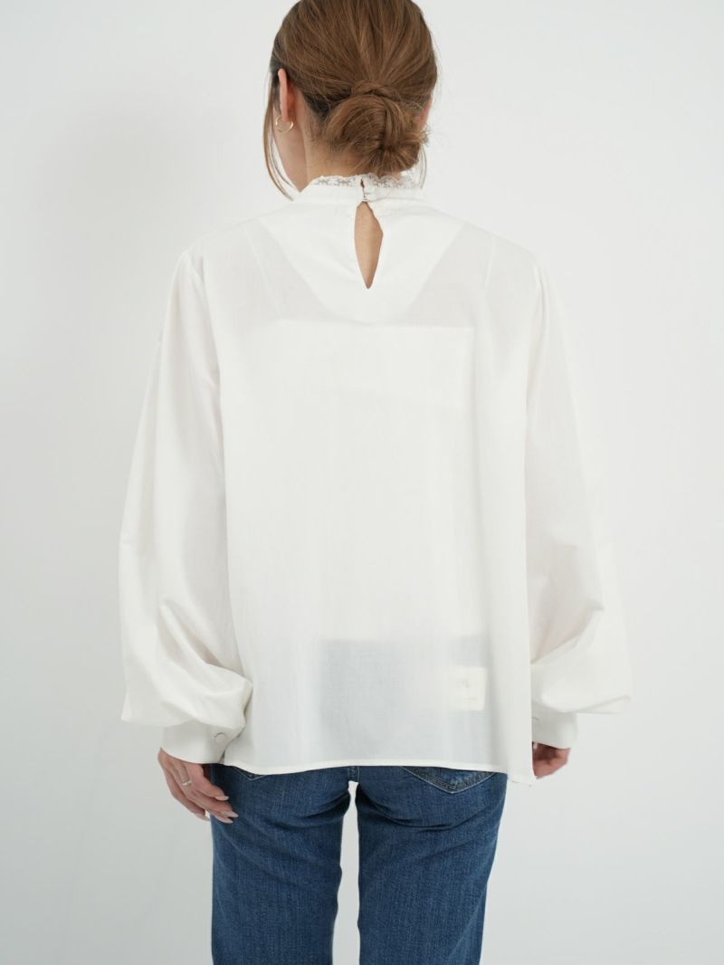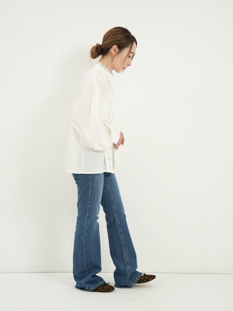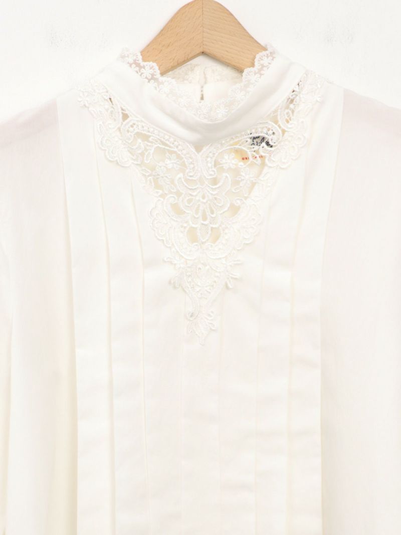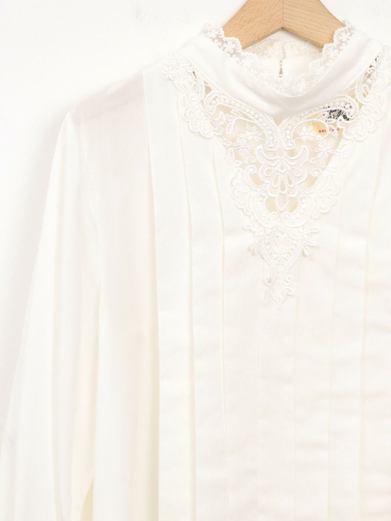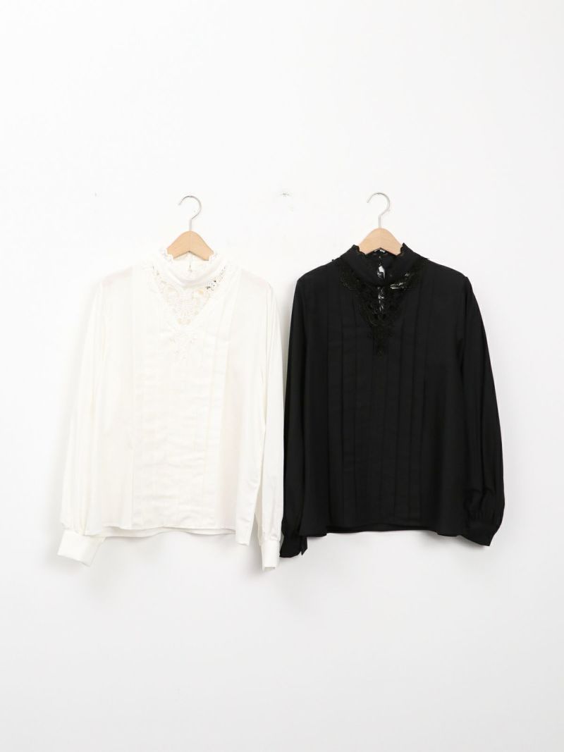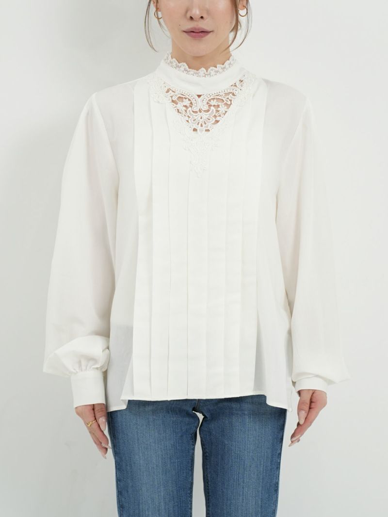 クラシックなイメージの繊細なレース使いがポイントのブラウス。 ヴィンテージブラウスを元に、丈や袖のボリュームを細かく修正を加えた拘りの1枚。見頃のピンタックデザインがスタイリングに存在感をプラスしてくれ、華やかにまとまります。