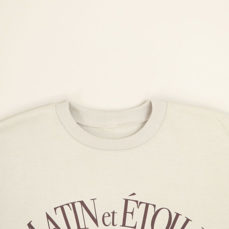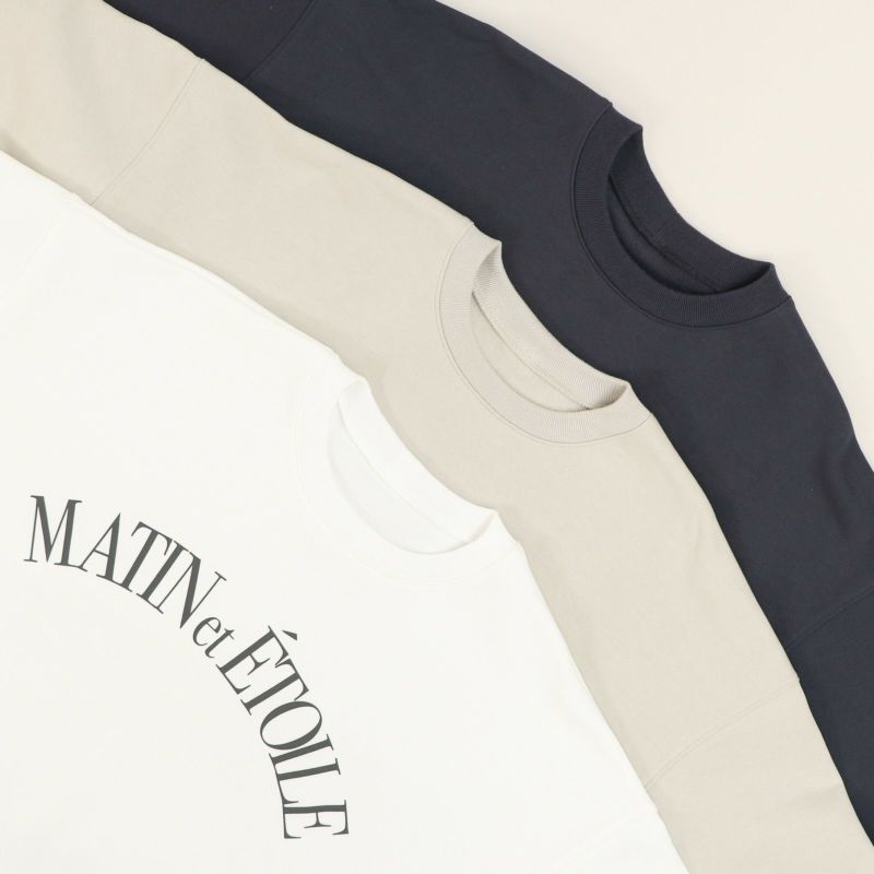 柔らかく肌あたりの良い裏起毛裏毛を使用したオーバーサイズのロゴスウェット。 洗濯しても型崩れしにくく、着心地の良いドライタッチな風合いが特徴です。 程よくゆるさのあるシルエットは大人の女性が着こなしやすいバランスでこなれ感を与えてくれます。 ベーシックなオフとチャコールに加え、グレージュとブルーグレーはMICAオリジナルカラーで染めています。 「MATIN et ETOILE (マタン エ エトアル)」はフランス語で「朝と星」という意味。
