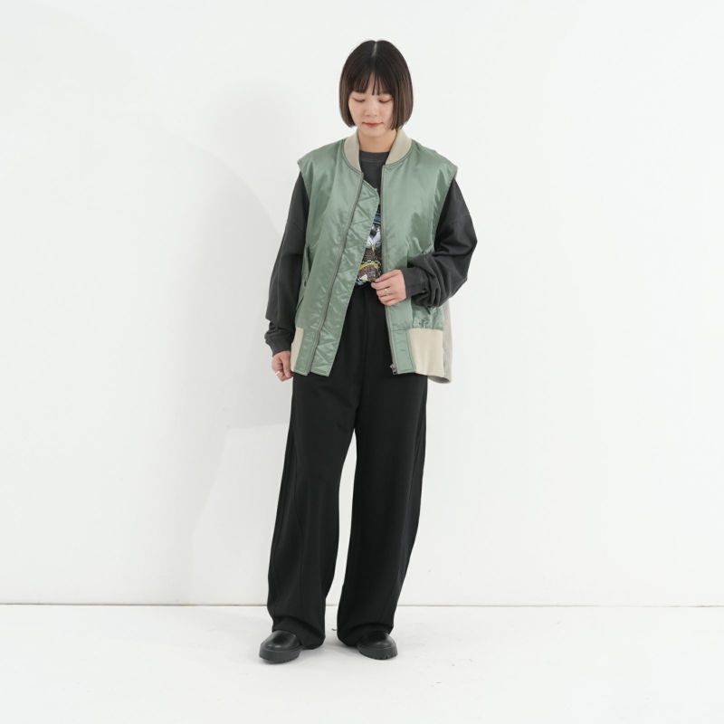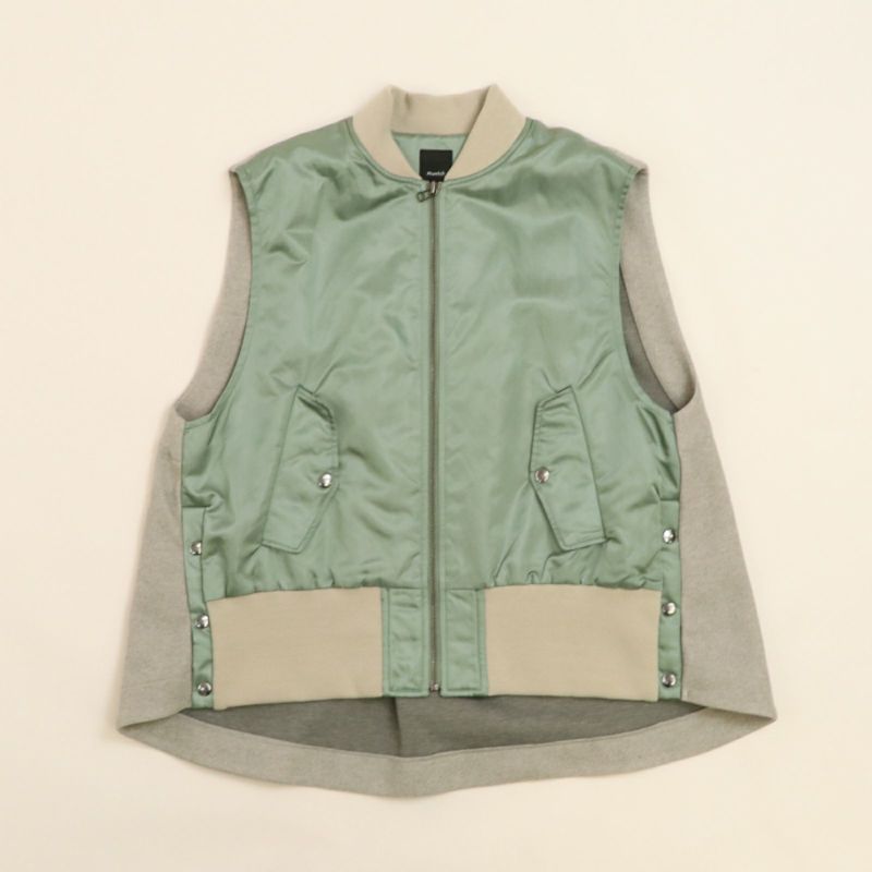 深みのある光沢と滑らかさが特徴の中綿入りナイロンとウール見えするジャージをドッキングさせたAラインジレ。 女性らしいデザインに見えるように拘りました。アームホールは広めに設計されておりインナーのサイズ感も気にせずに着用していただけます。