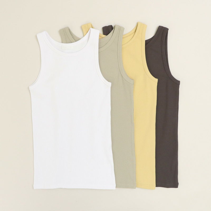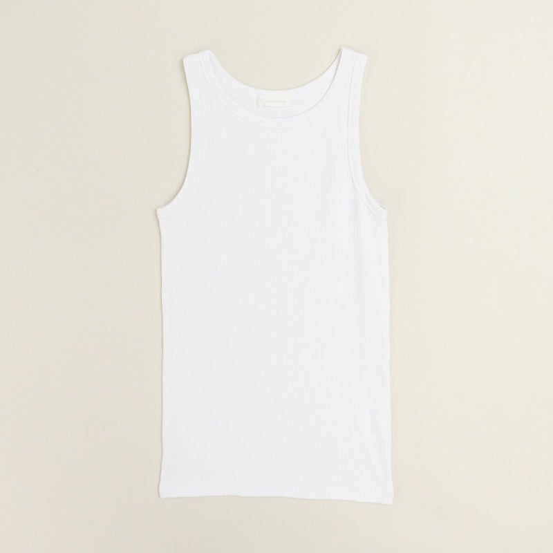 スポーティーな印象のアメリカンスリーブタンクトップ。 ストレッチ入りの細めのテレコで着心地も良い1枚です。シャツやシアートップスのインナーにおすすめです。