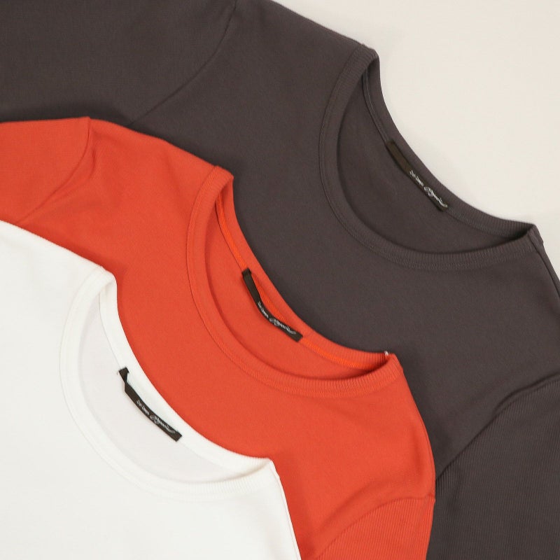 定番のストレッチテレコ素材を使用したクルーネックプルオーバー。 ネックラインの開きがちょうどよく、1枚でもインナーでも着用できるベーシックなカットソーです。