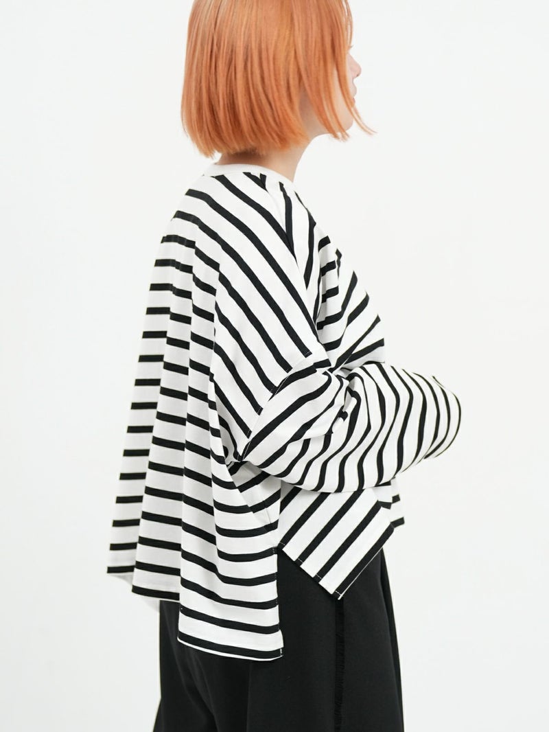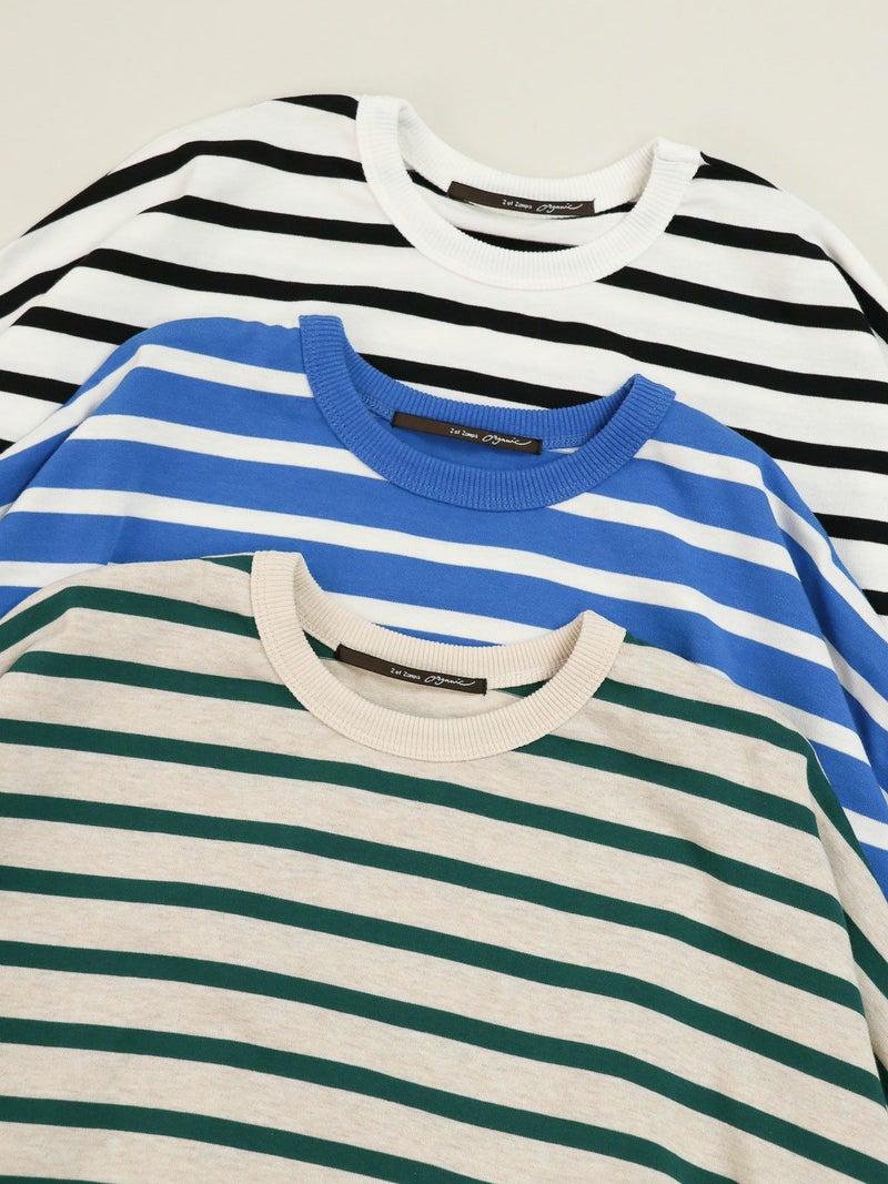 定番のボーダーカットソー。 コンパクトな丈感とゆとりのあるシルエットでトレンド感を加えました。春らしさを感じるカラーの3色展開です。