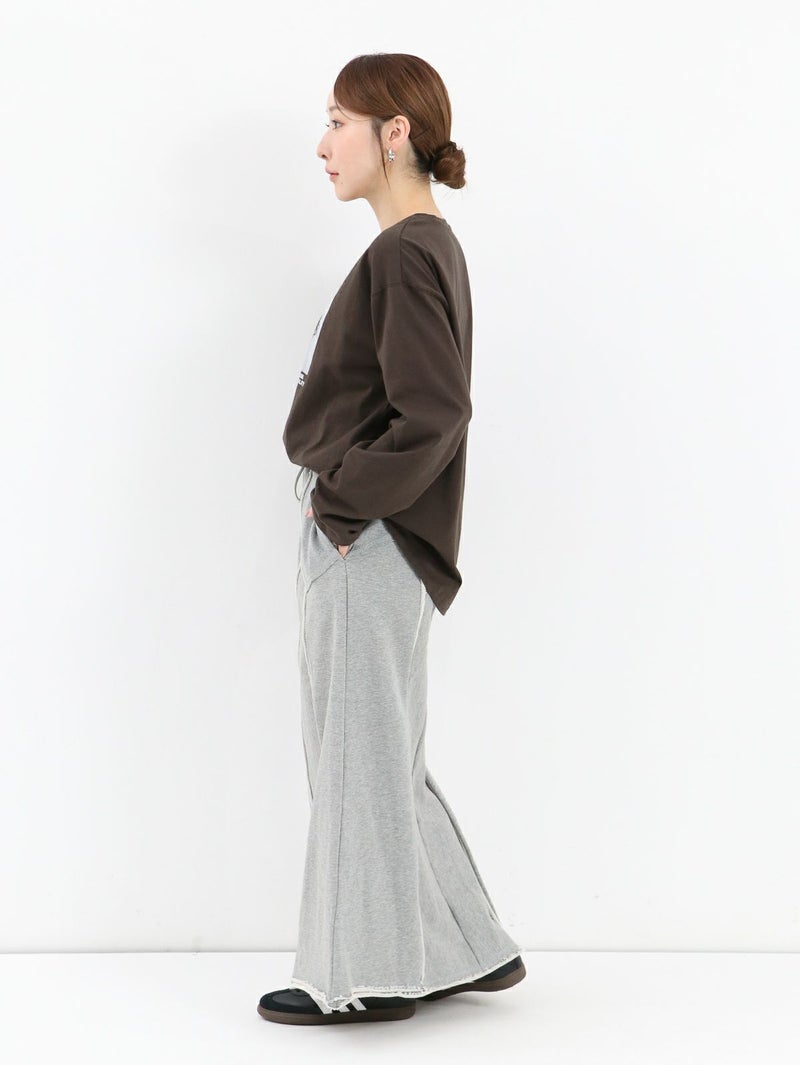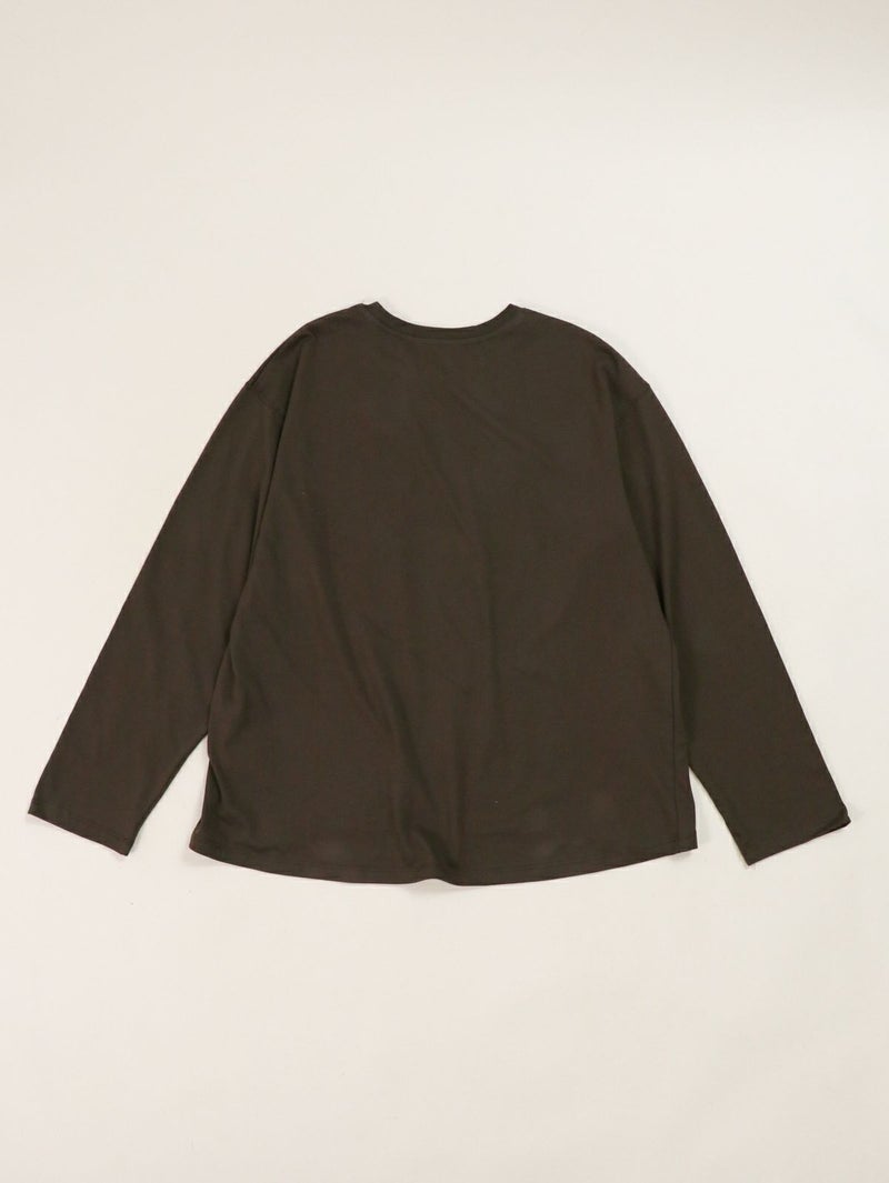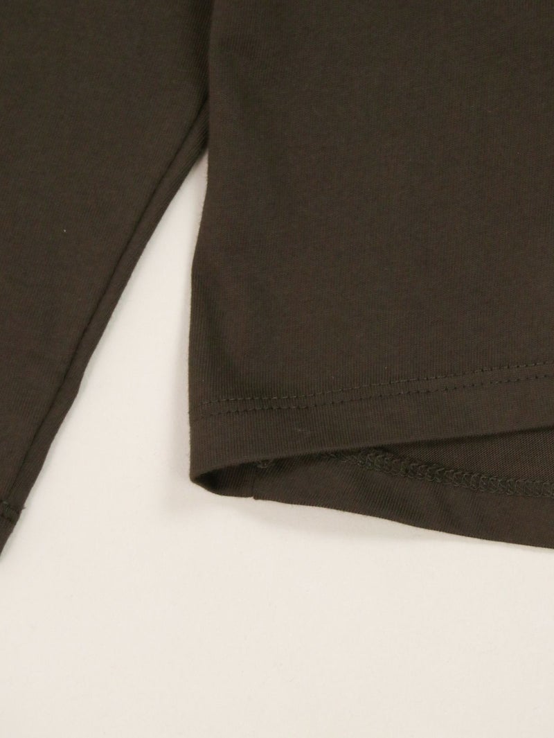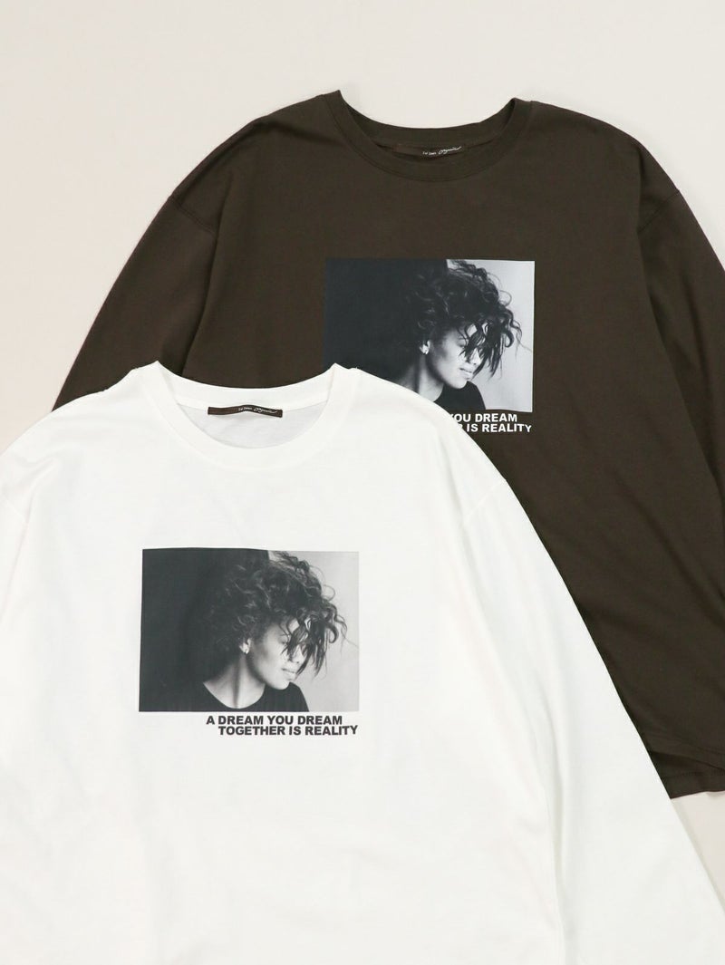 前後差つきのラウンドヘムのクルーネックロンT。 モノクロフォト×ロゴプリントで大人っぽく着用でき、シルケット風天竺素材で滑らかな着心地です。 ロゴモチーフ=みんなで一緒に見る夢は現実になる
