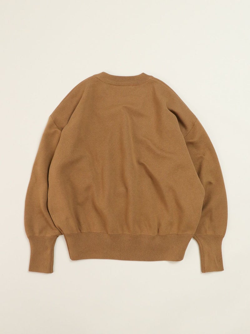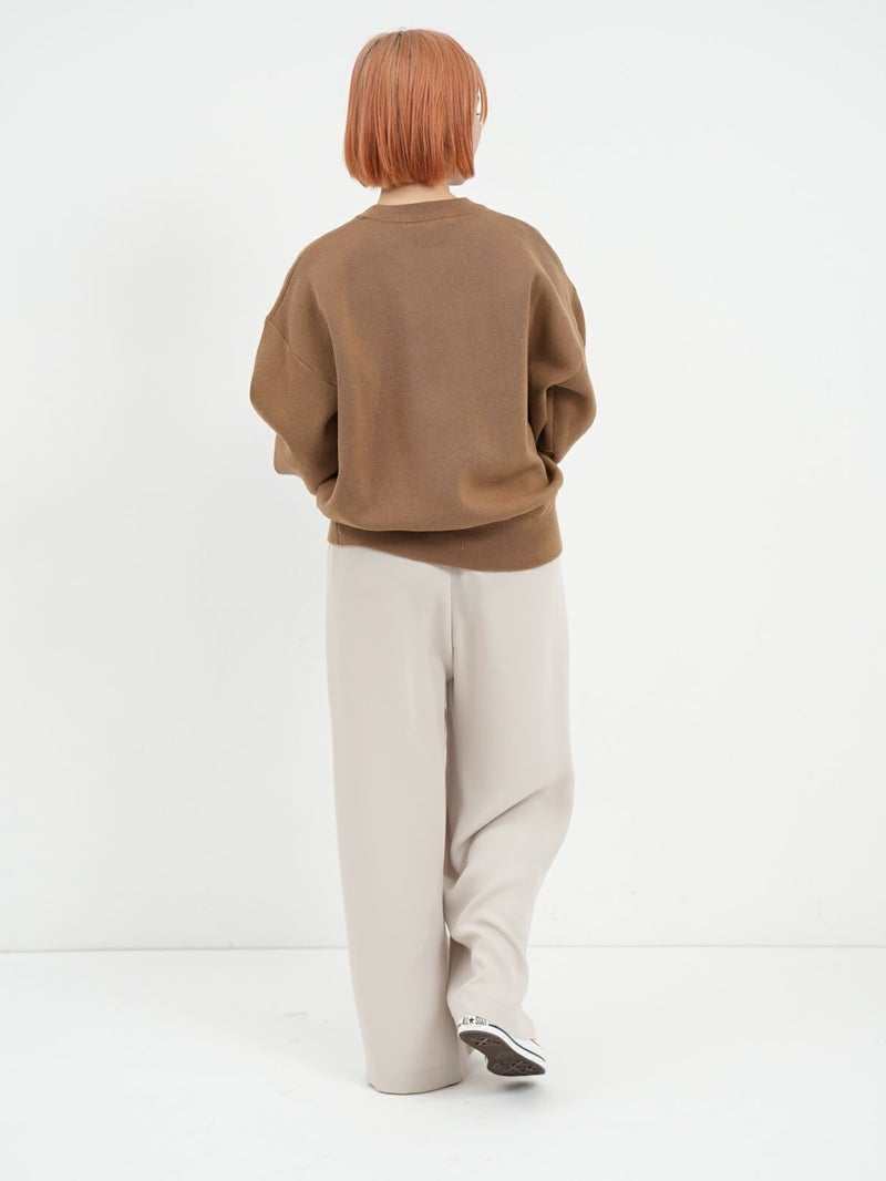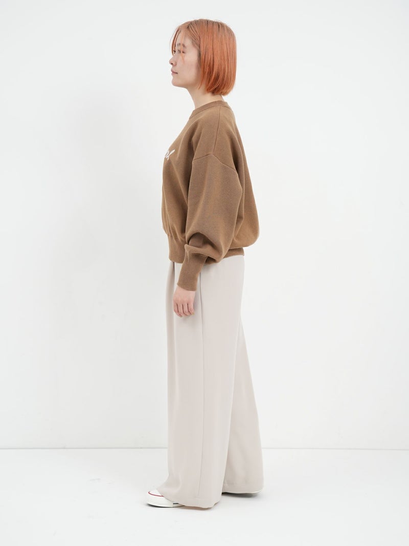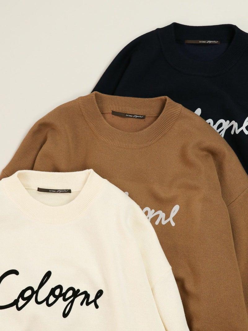 フロントロゴかポイントの春先に活躍するコットンニット。 ロングシーズン活躍し、コットンニットなので着心地も良くホームケア可能。パンツ、スカートスタイル、ボトムスを選ばずに合わせていただけます。