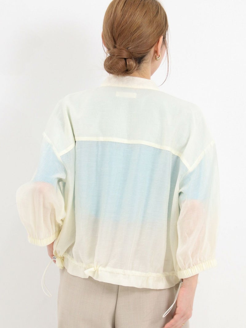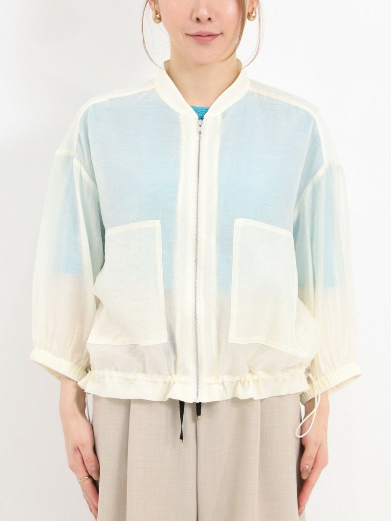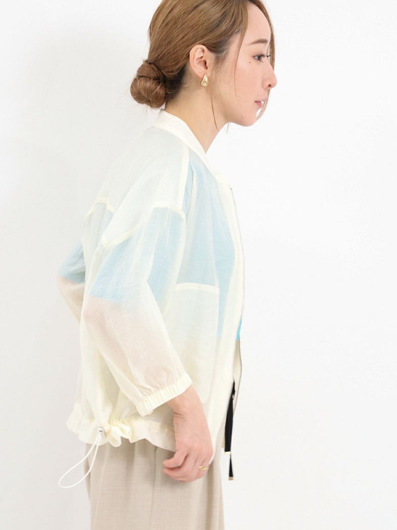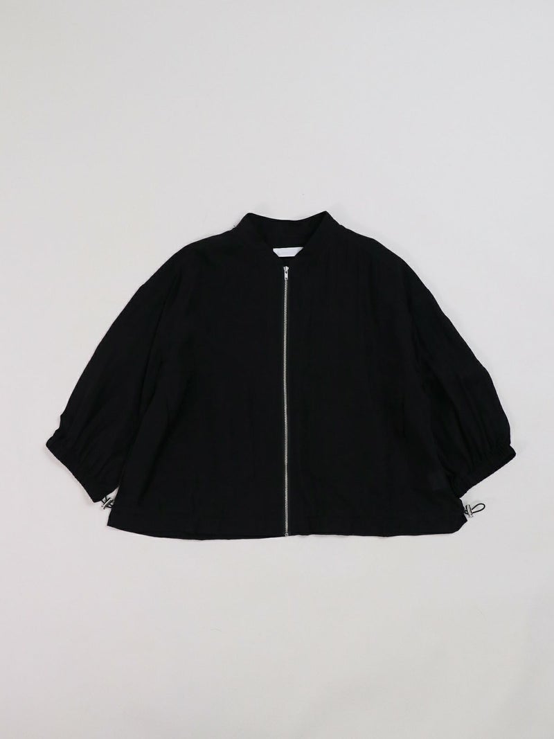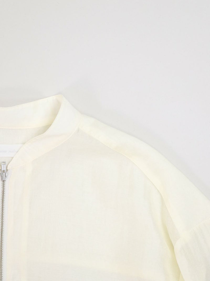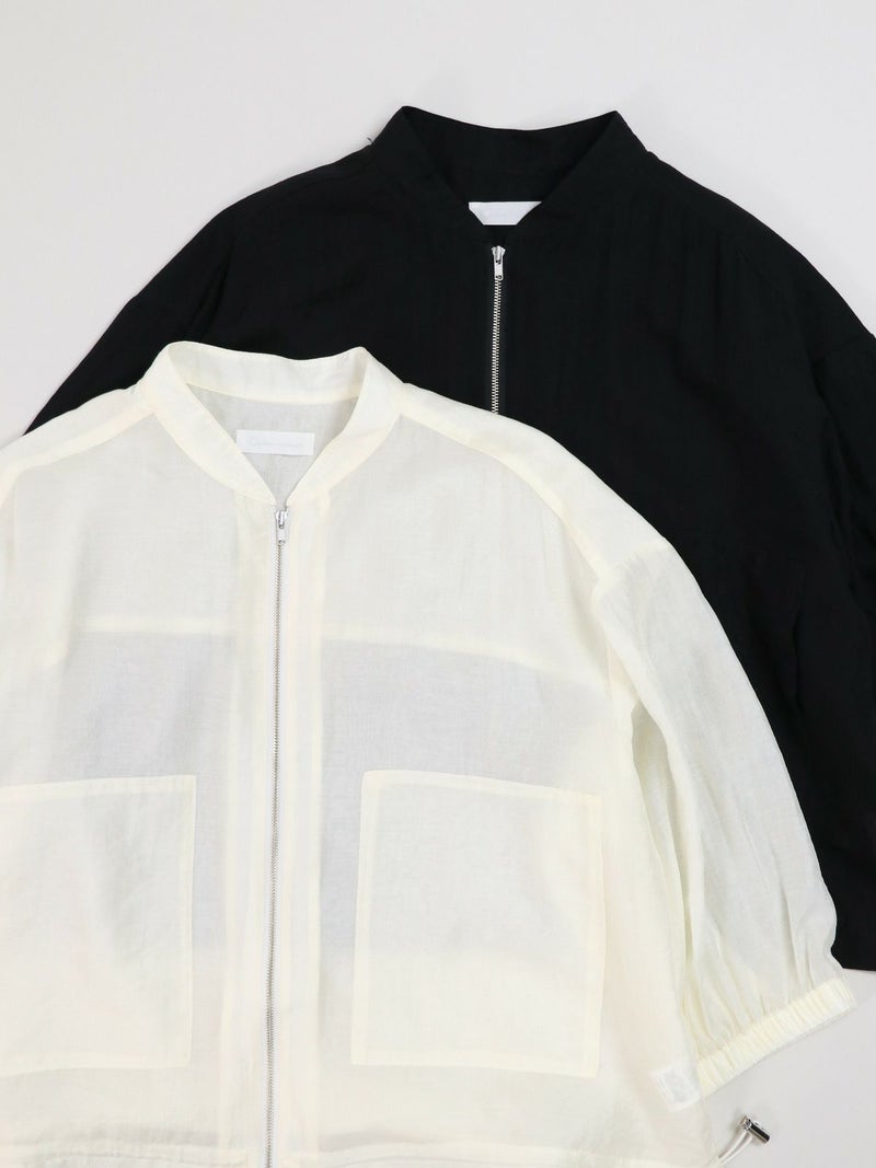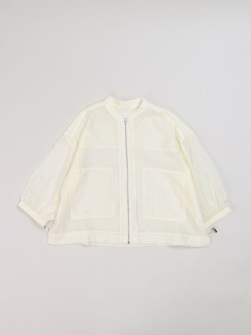 上品な光沢が特徴のローン素材を使用したブルゾン。 七分袖で、今時期から夏の軽い羽織りとしても活躍します。
