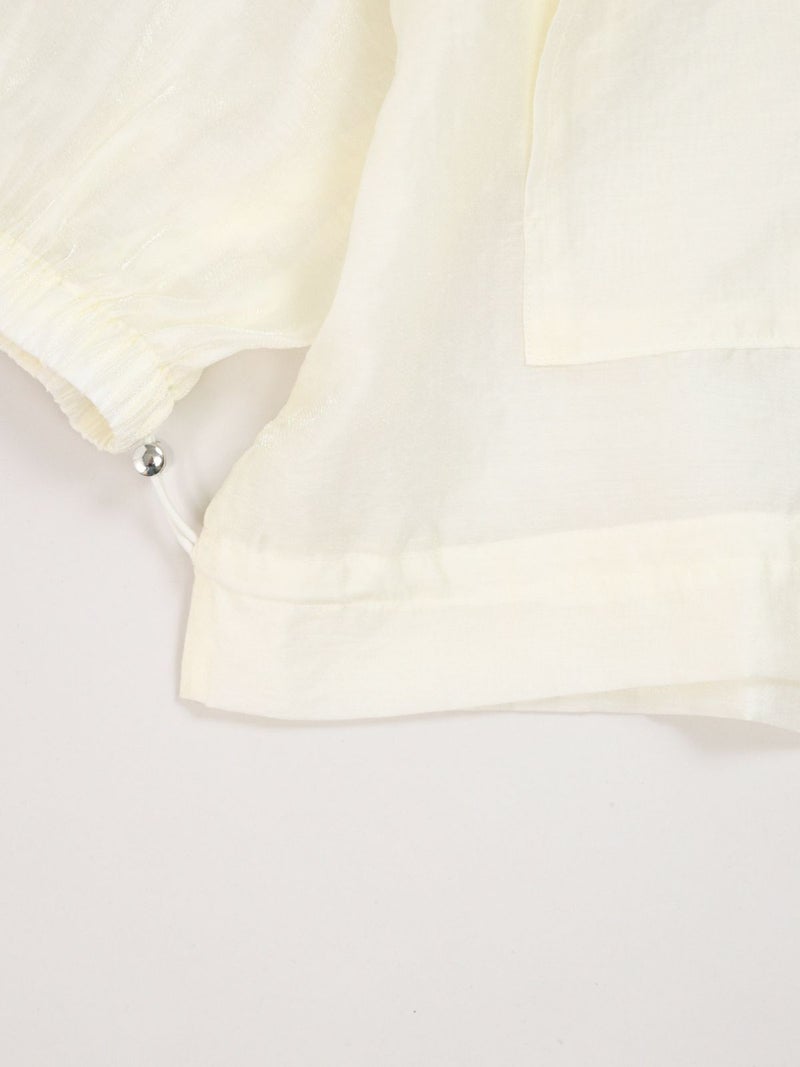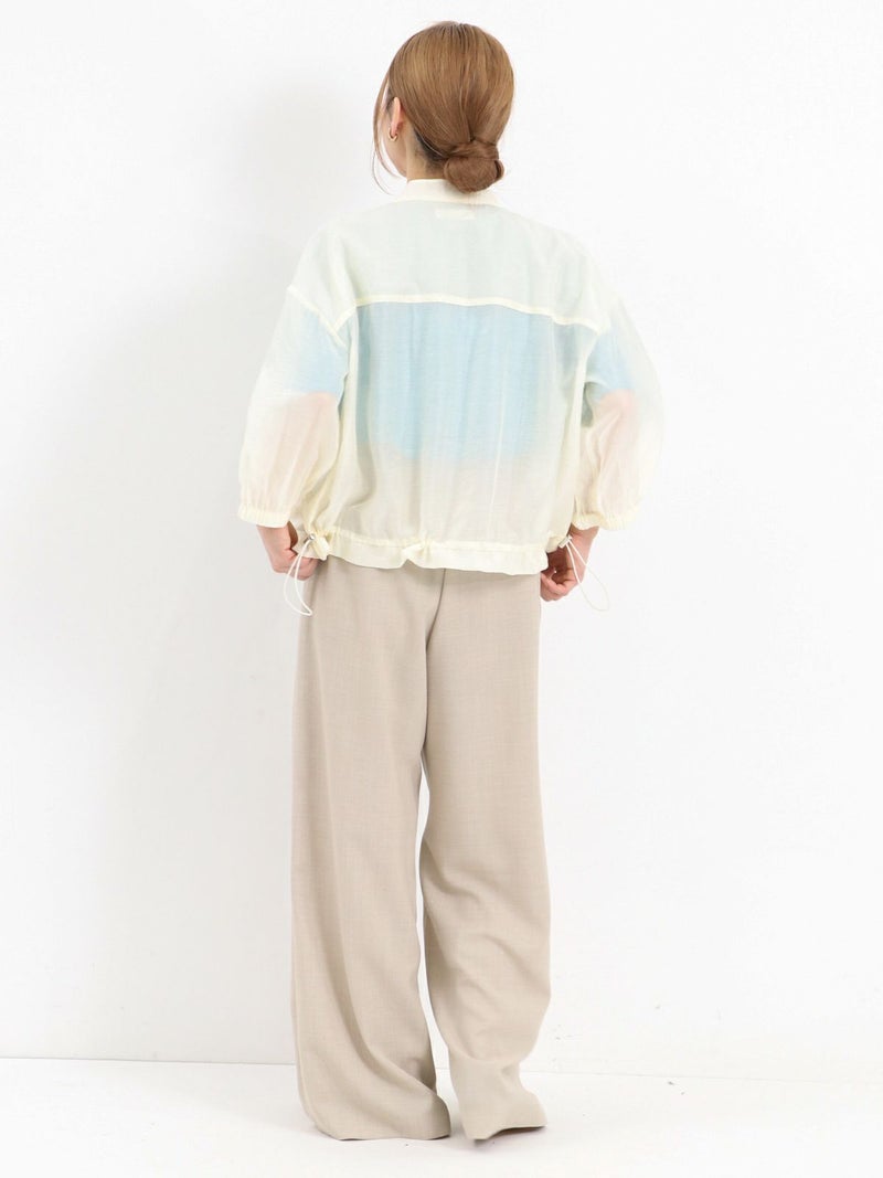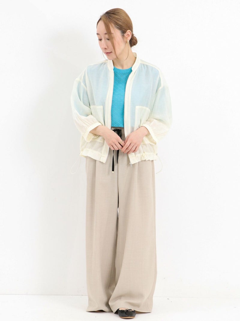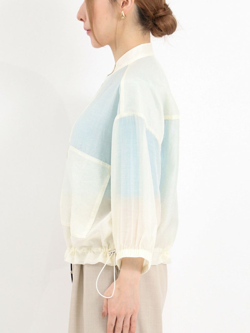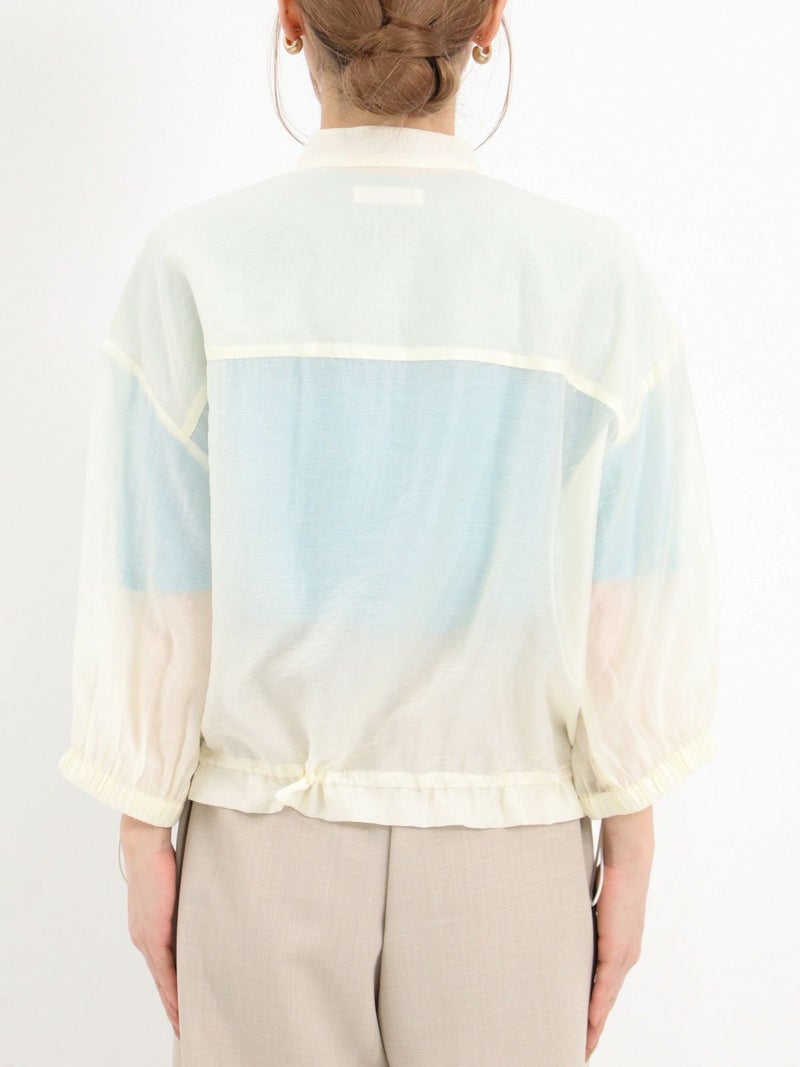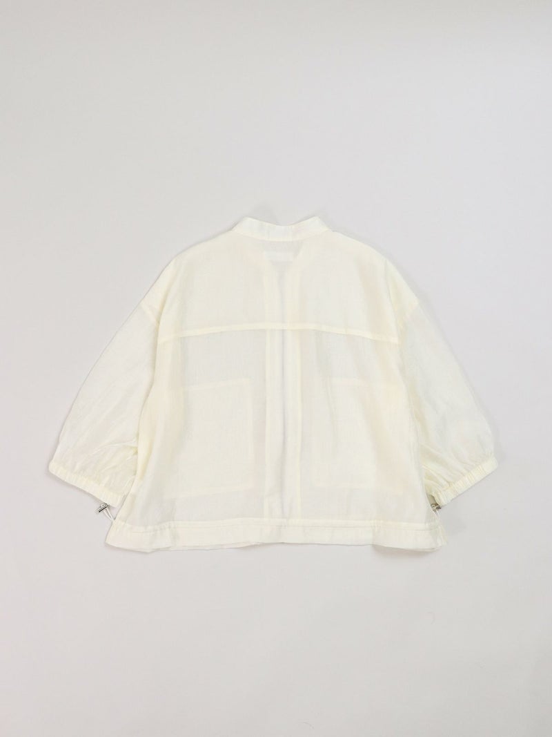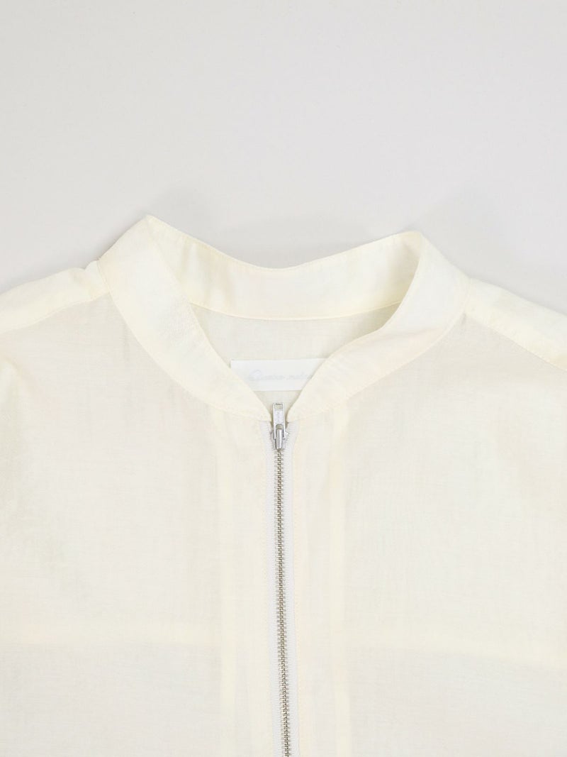 上品な光沢が特徴のローン素材を使用したブルゾン。 七分袖で、今時期から夏の軽い羽織りとしても活躍します。