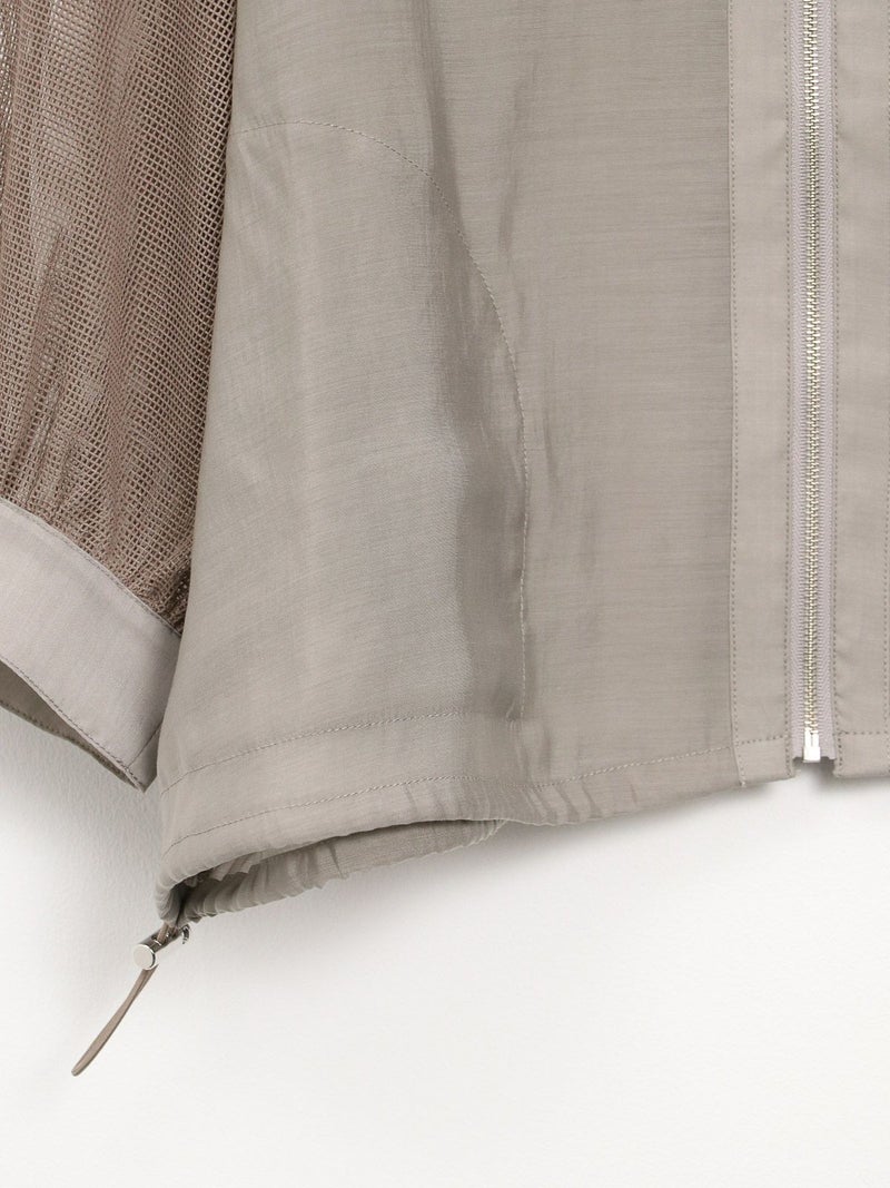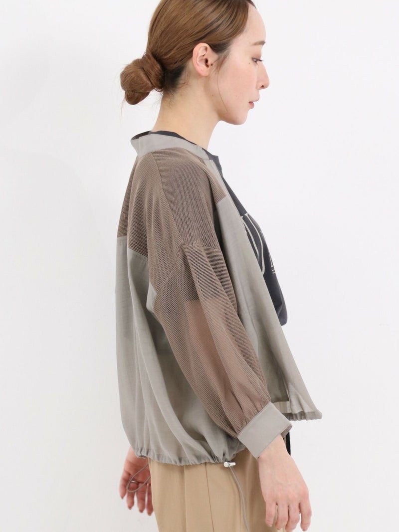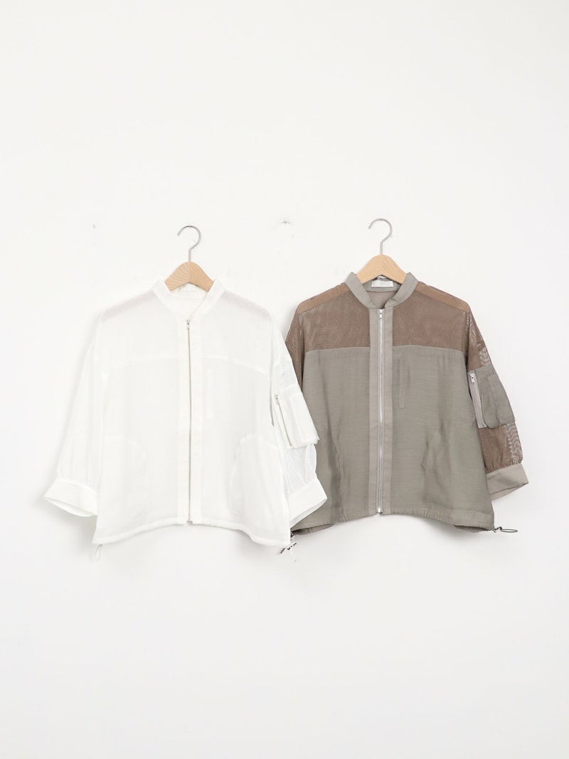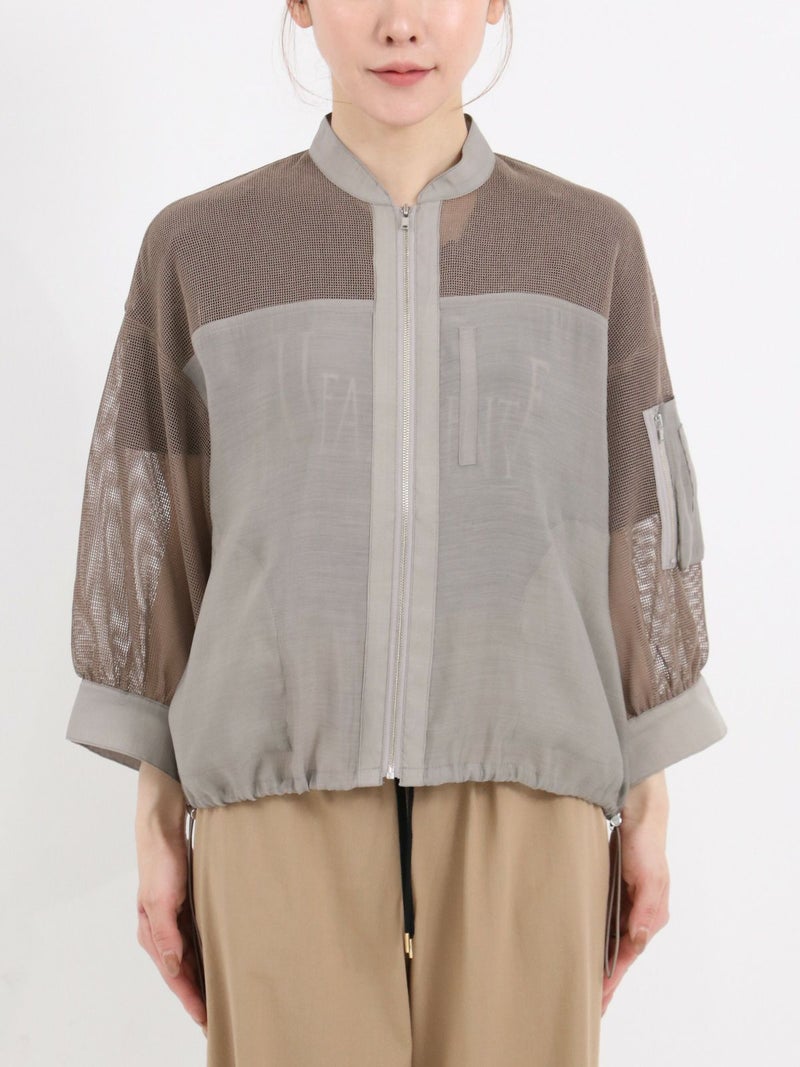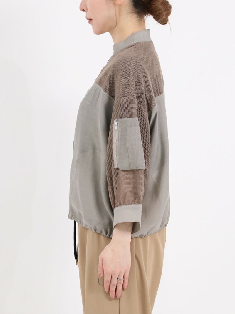 7分袖、ヨークと袖がメッシュ仕立てになったブルゾン。 MA-1風のデザインがコーディネートのアクセントになり、軽い着心地です。裾のドロストでシルエットの変化も楽しめます。