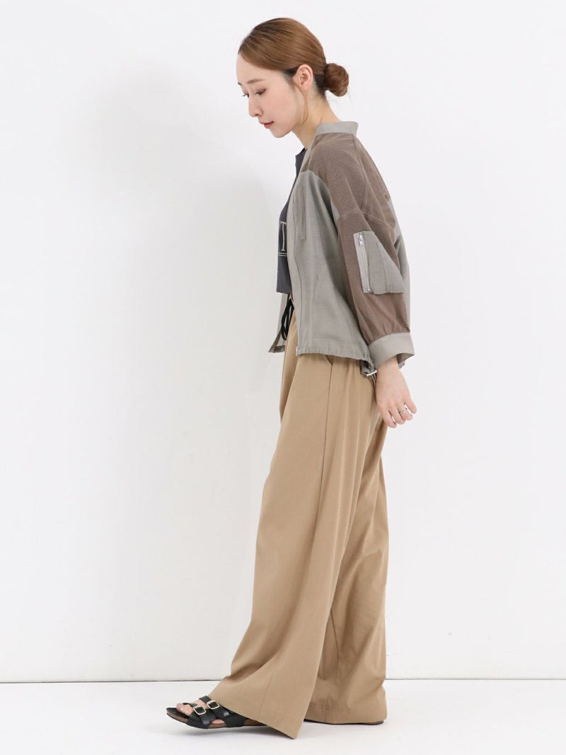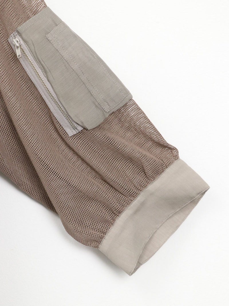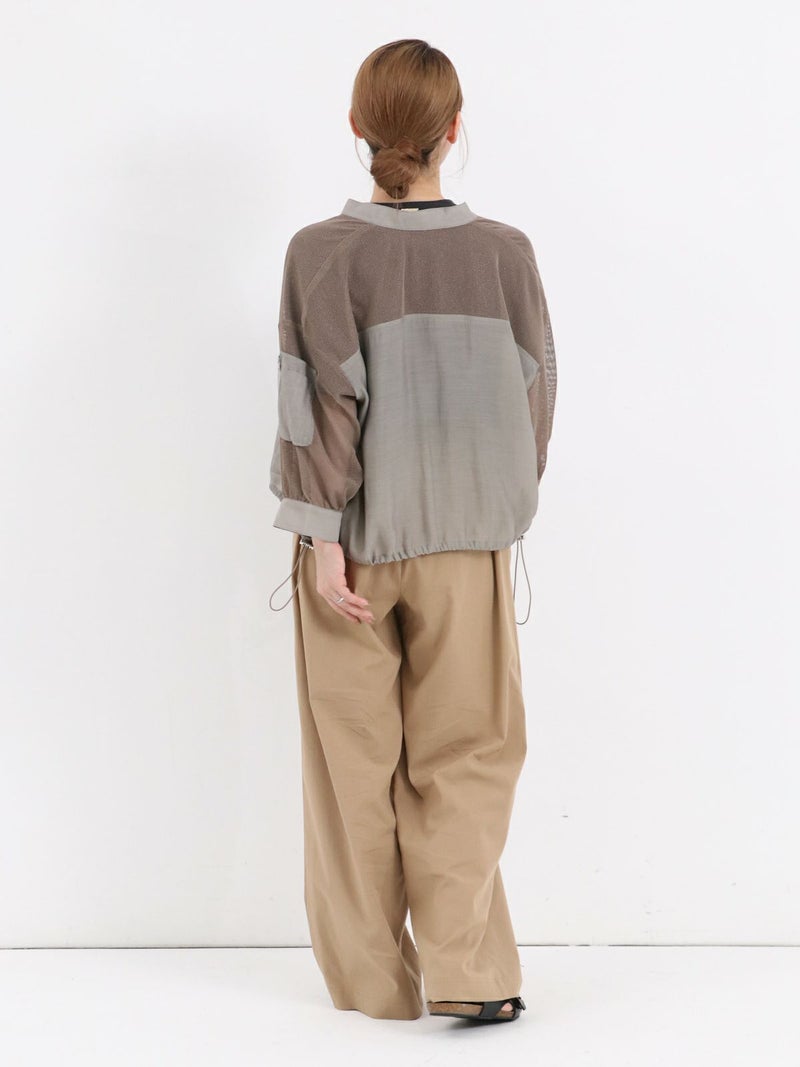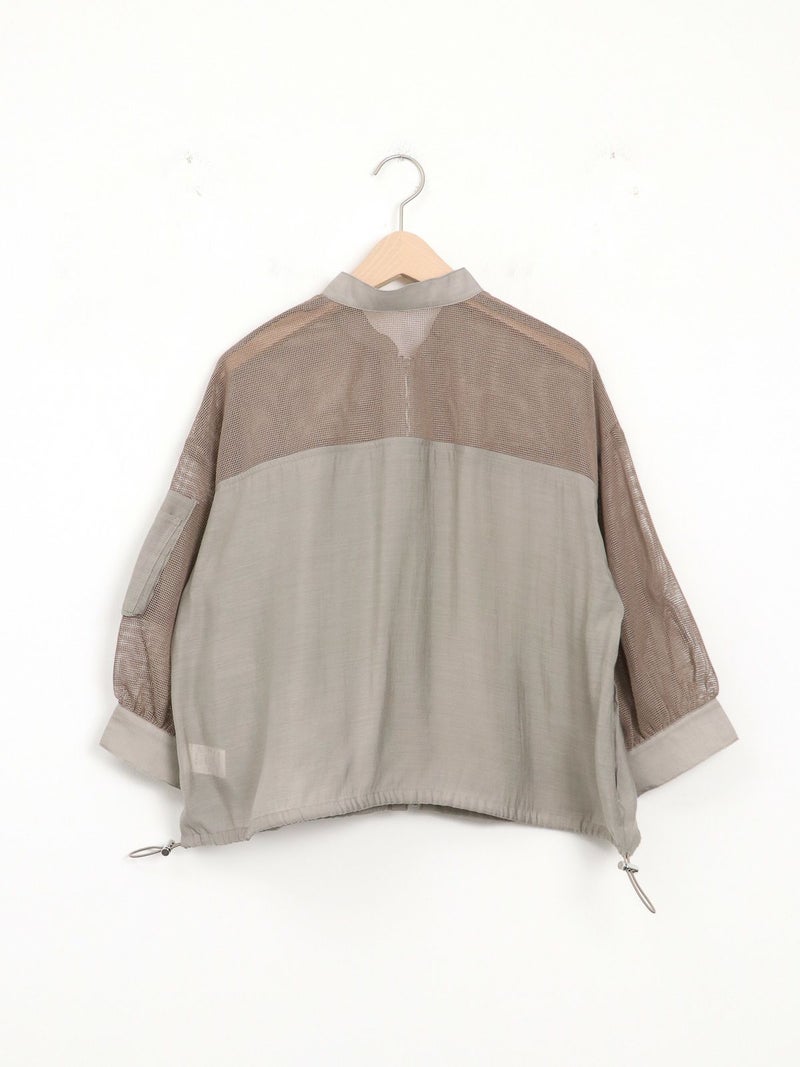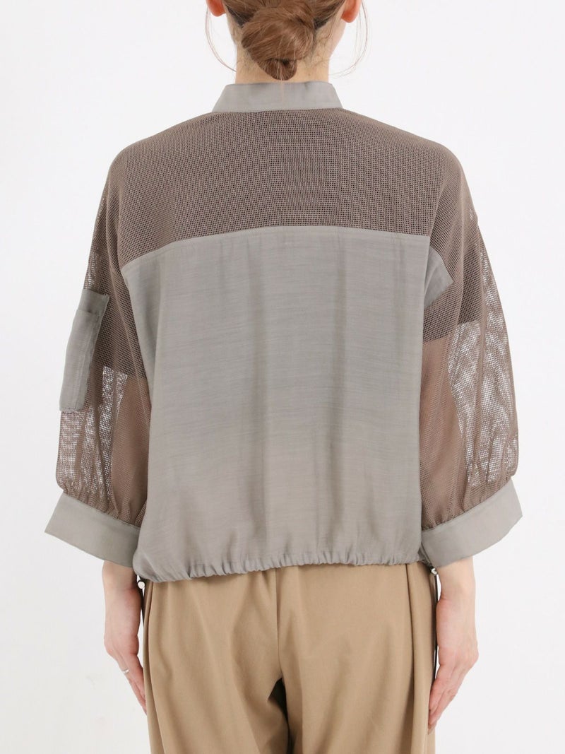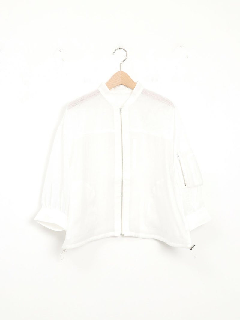7分袖、ヨークと袖がメッシュ仕立てになったブルゾン。 MA-1風のデザインがコーディネートのアクセントになり、軽い着心地です。裾のドロストでシルエットの変化も楽しめます。