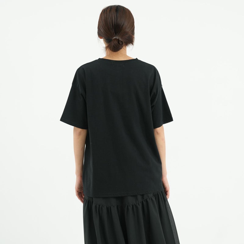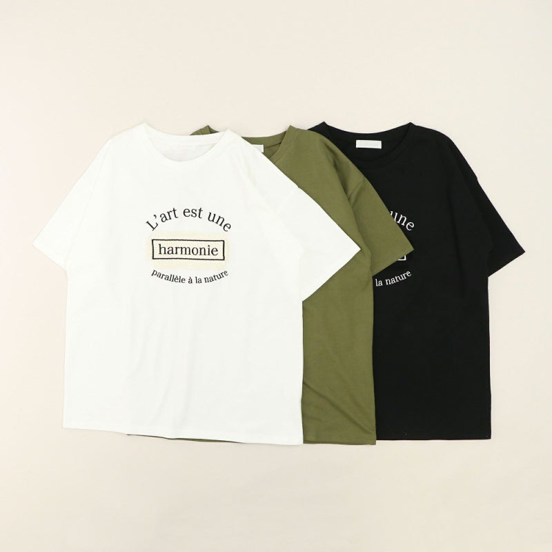 立体感のあるパッチワークのロゴがポイントのTシャツ。 程よくゆったりとした身幅のあるサイズ感でボトムスを選ばす着用できる夏の定番アイテムです。