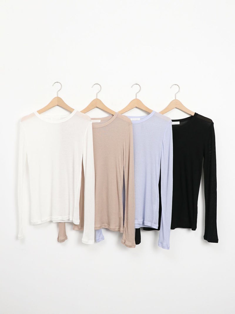 ソフトな肌触りのシアーフライスプルオーバー。 トップスの下のレイヤー用としてのインナー使いから、1枚着としても活躍します。 ベーシックカラーに加え、春らしさのある柔らかな明るめカラー合わせた4色展開です。