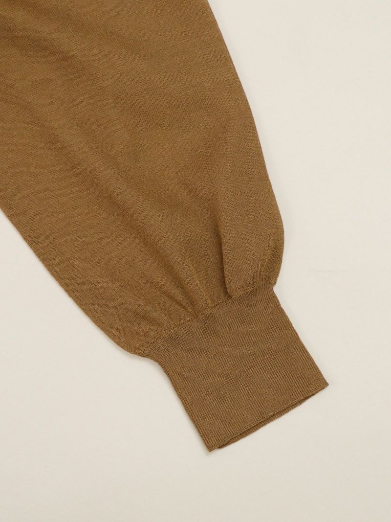 tan tan別注プルオーバーニット。 上品な光沢感と程よいシアー感が女性らしい印象に。袖にボリューム感を持たせたことでシンプルになりすぎず、一枚でサマになる万能トップスです!