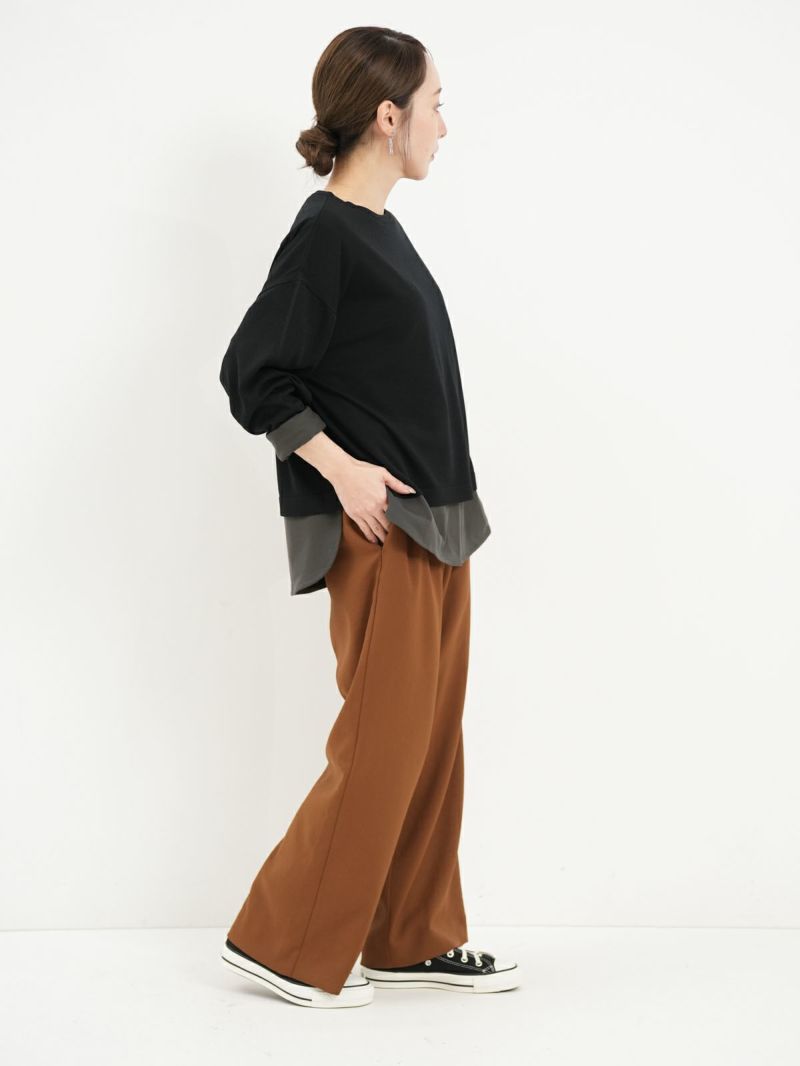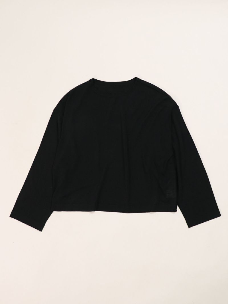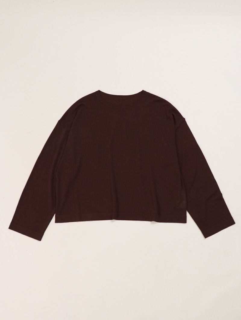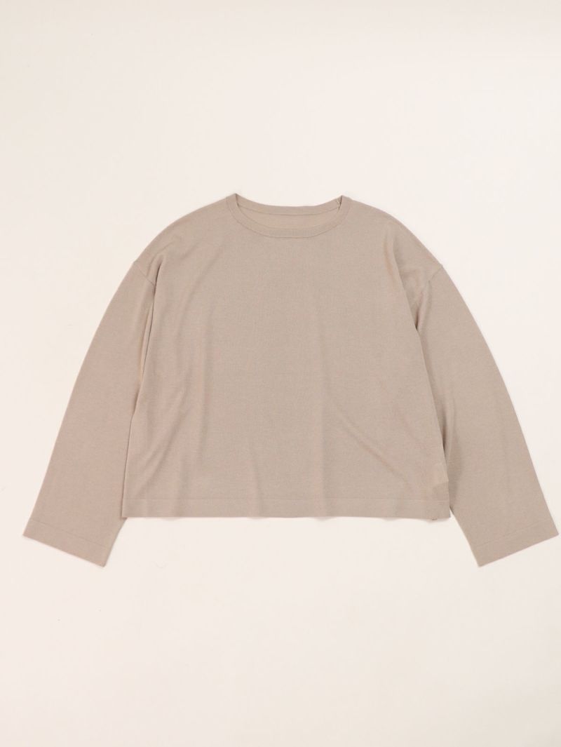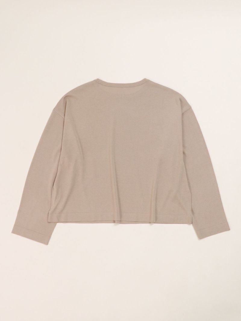 クルーネックのプルオーバーニット。 シルクの様に滑らかで肌触りが良く、秋口にちょうどいい素材感です。アームにゆとりを持たせ、袖口は締め付けずに仕上げたデザイン。風通しよく涼しく着られるので、季節の変わり目にもぴったりです。