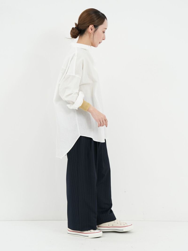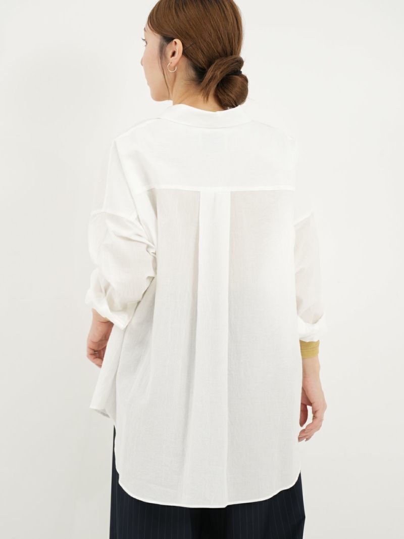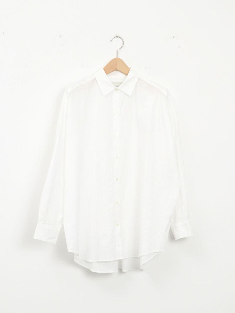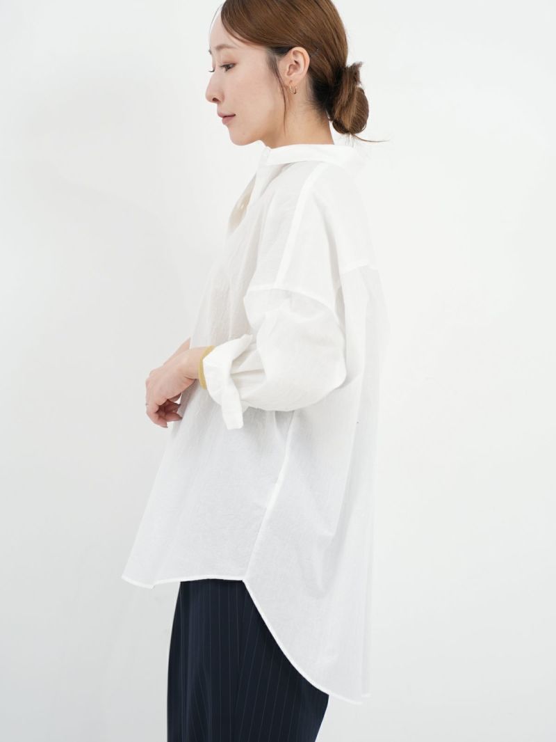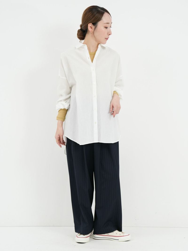 ラフに仕上がる大きめのシルエットがこなれた印象に見せてくれます。コットン100%の柔らかな着心地◎一枚着としてはもちろん、ニットやスウェットなどのインナーや羽織としても使いやすいシンプルなデザインはロングシーズン活躍してくれる必須アイテムです。