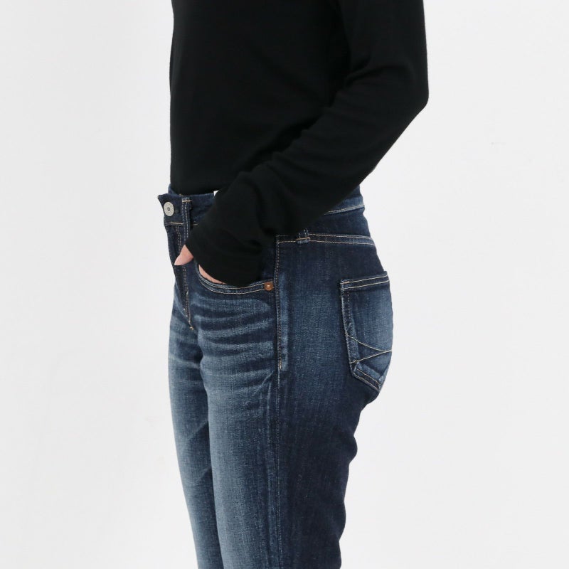 腰回りゆったり、ひざ下すっきりなシルエットは、どんな体型の方にもフィットする万能アイテム。 ぴったりしすぎず、なだらかに下半身をカバーしてくれるシルエットで、細みえ効果も狙えそうです。 生地は柔らかな風合いとはき心地の良さが特徴の再生繊維(セルロース)ストレッチデニムを使用。