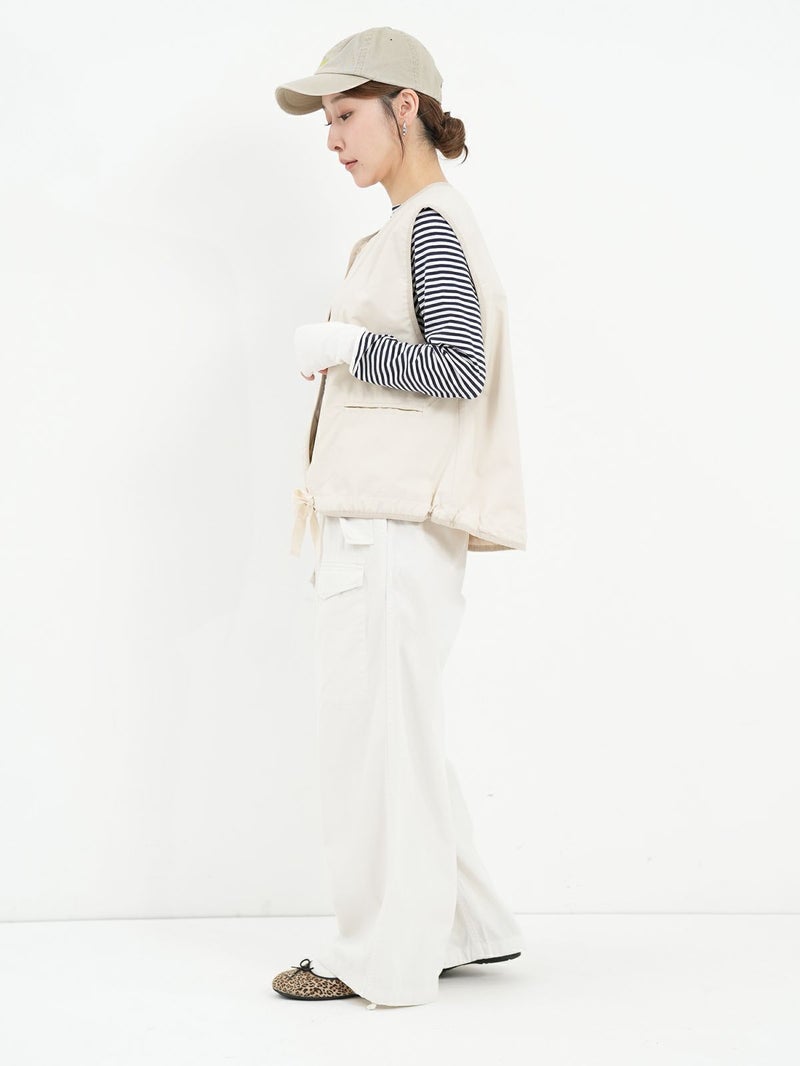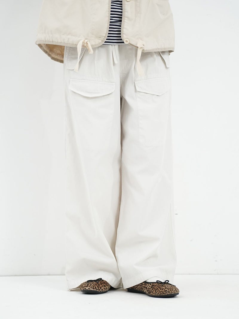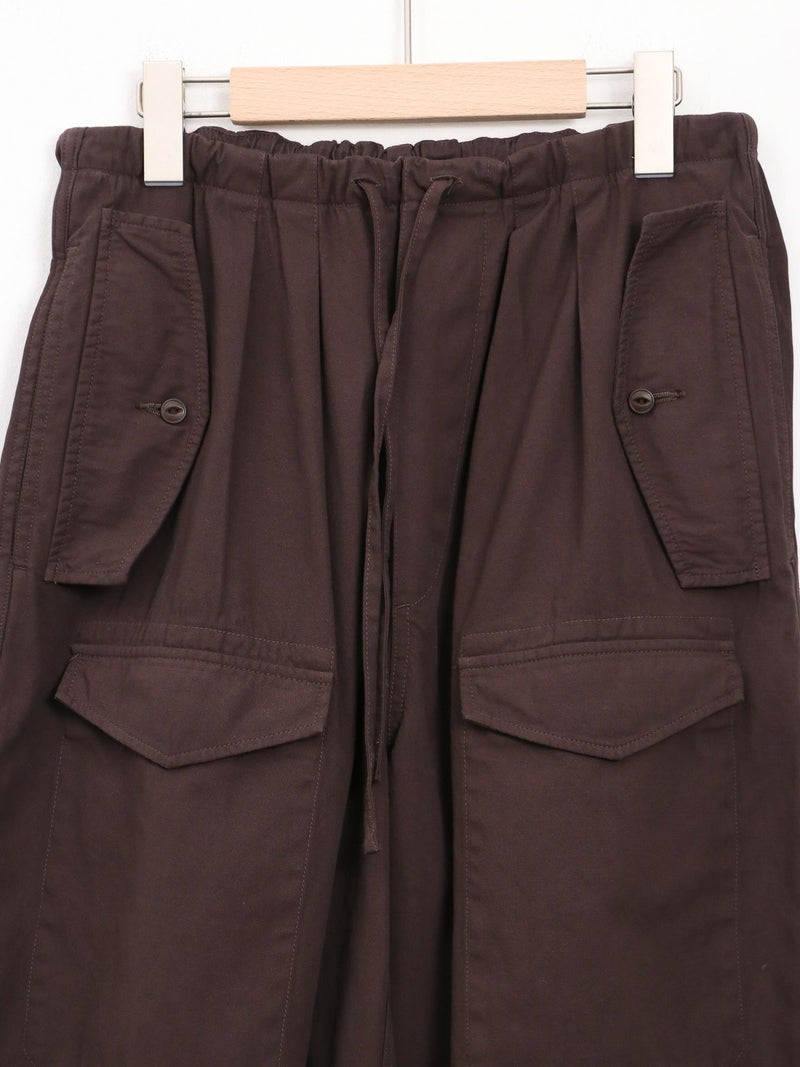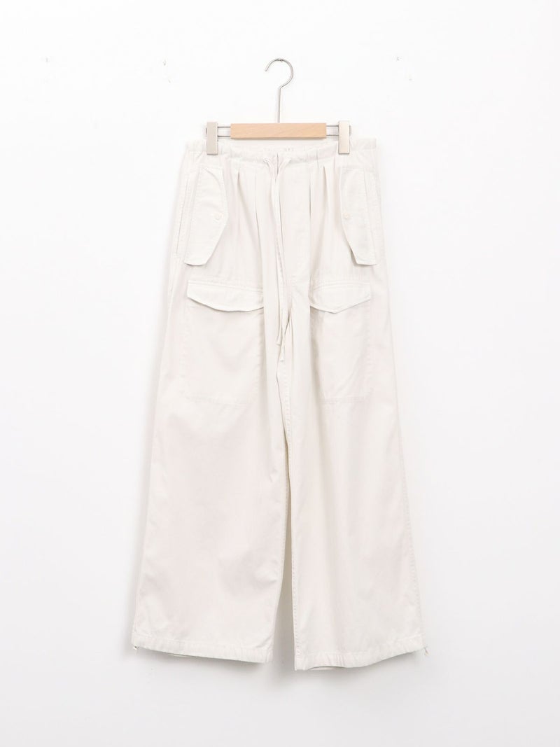 クラシックを今の空気で更新する、TICCAのカーゴパンツ。 ヴィンテージのカーゴをベースに、高密度に織り上げた薄手のコットンギャバジンを使用。繊細なピーチ起毛加工により、程よくハリを抑えたしなやかな風合いに仕上げています。製品染めによる奥行きのある発色と、ゆったりとした分量感、落ち感の美しいシルエットが魅力。カジュアルながらも上品に着こなせる、大人のための一本です。