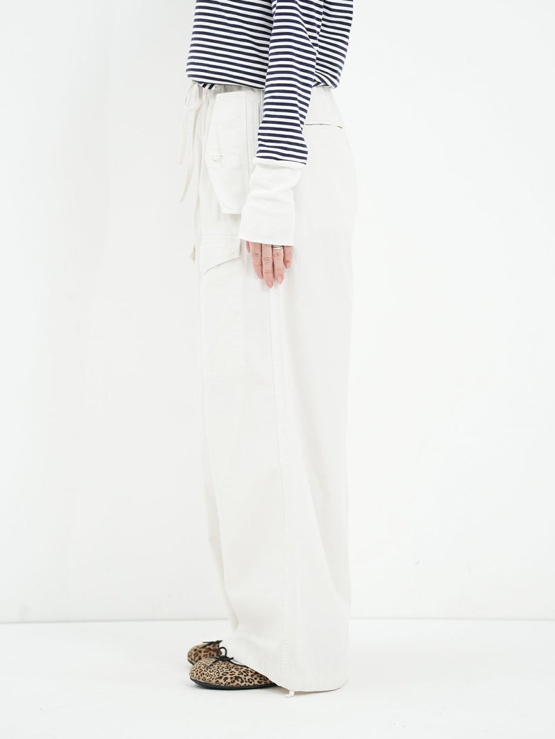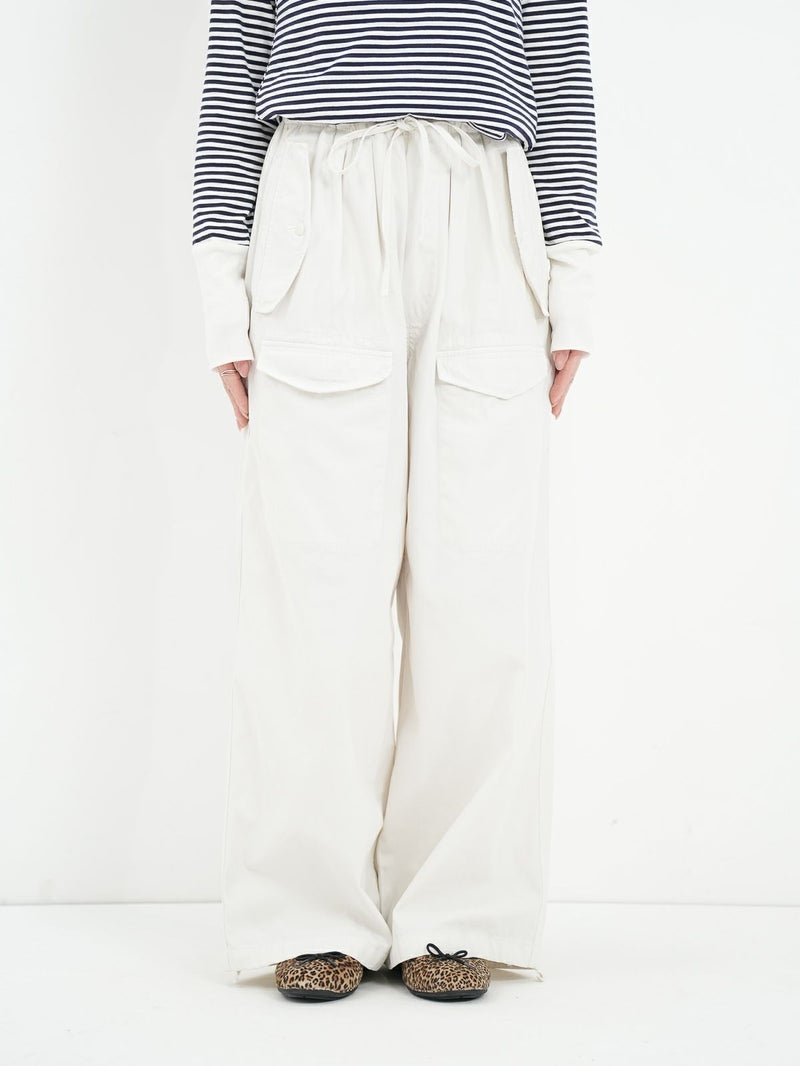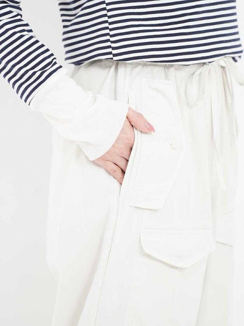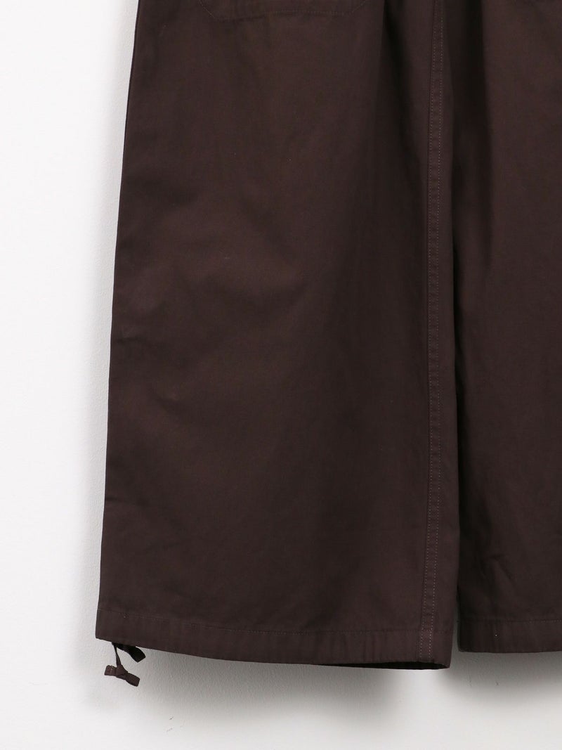 クラシックを今の空気で更新する、TICCAのカーゴパンツ。 ヴィンテージのカーゴをベースに、高密度に織り上げた薄手のコットンギャバジンを使用。繊細なピーチ起毛加工により、程よくハリを抑えたしなやかな風合いに仕上げています。製品染めによる奥行きのある発色と、ゆったりとした分量感、落ち感の美しいシルエットが魅力。カジュアルながらも上品に着こなせる、大人のための一本です。
