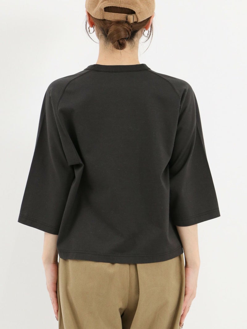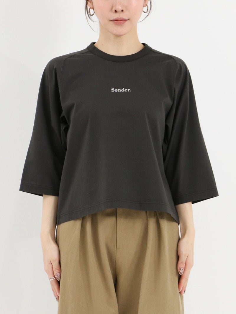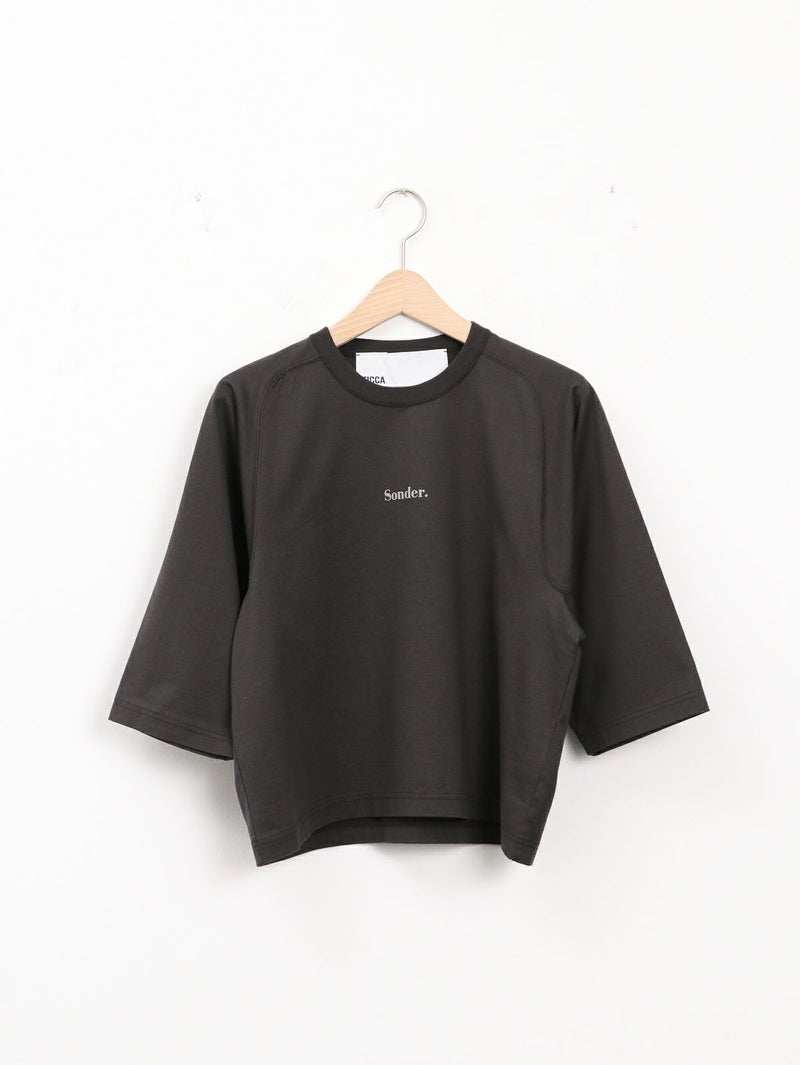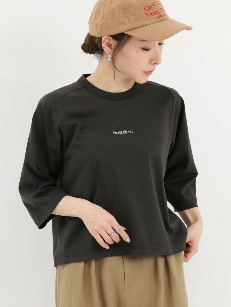 立体的なフロッキーロゴがアクセントになった八部袖Tee。 フロントにあしらった''Sounder''は英語圏のスラングで“一人ひとりに、それぞれの物語がある”という意味。デニムやカーゴパンツに合わせてもラフになりすぎず、今からの季節はレイヤードアイテムとしても活躍する1枚です。
