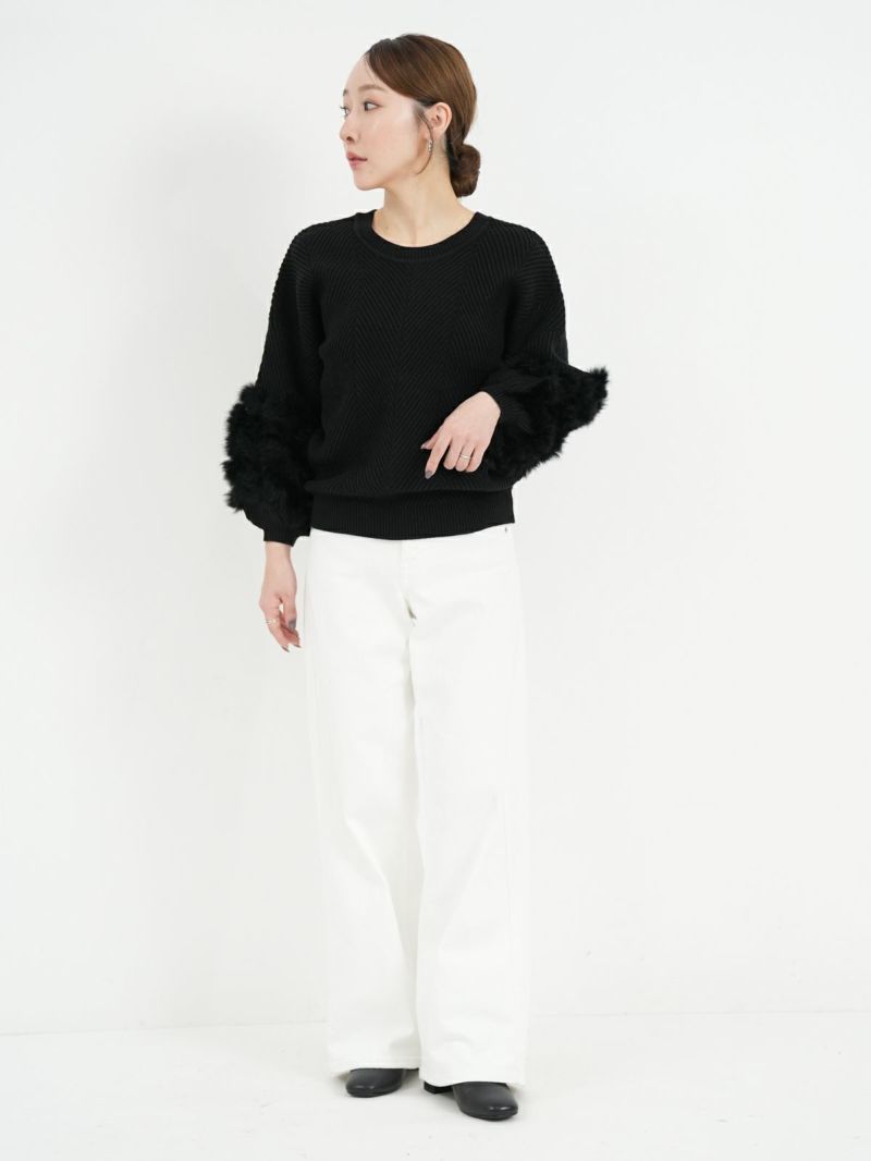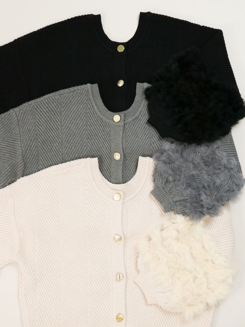 袖にラビットファーを縫い込んだ上質なニットトップス。 前後2WAYのデザインで、プルオーバーでも、カーディガンとしてもご着用頂けます。おでかけにはもちろん、オケージョンシーンにも華やかな1枚。タイトスカート合わせでレディに着こなしたり、デニム合わせで大人カジュアルも楽しめます。