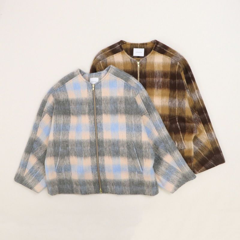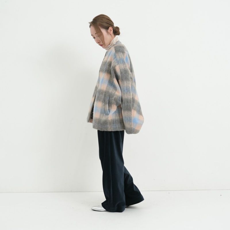 ウール混素材で軽くて温かく、シンプルなデザインで気軽に羽織れます。 柔らかな配色のチェック柄なのでキレイ目なコーディネートにも女性らしく合わせていただけます。