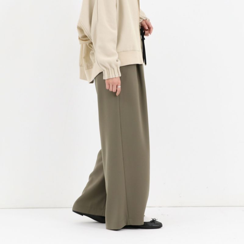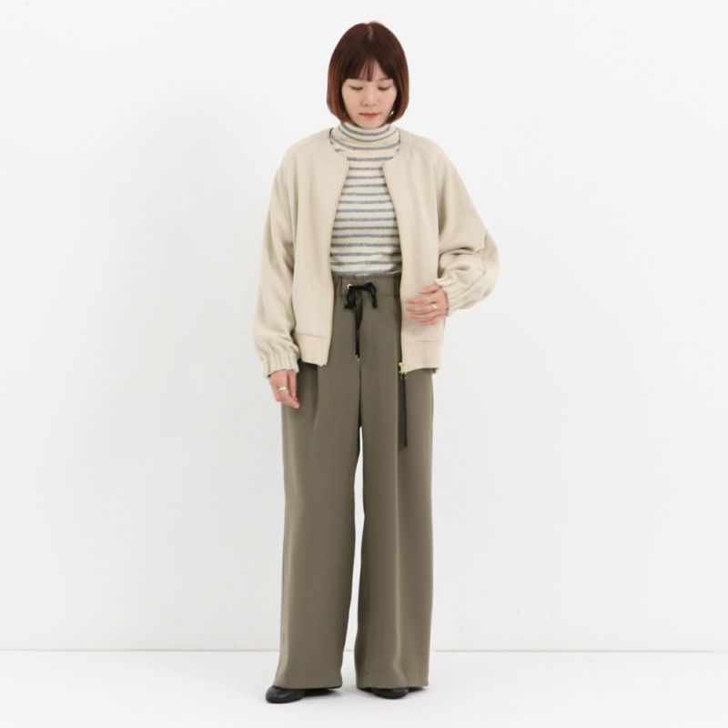 リラックスした着用感ながらも上品なドレープと光沢感が大人なシルエットを演出してくれます。オールシーズンお使いいただける、 troisのロングセラーアイテムです。
