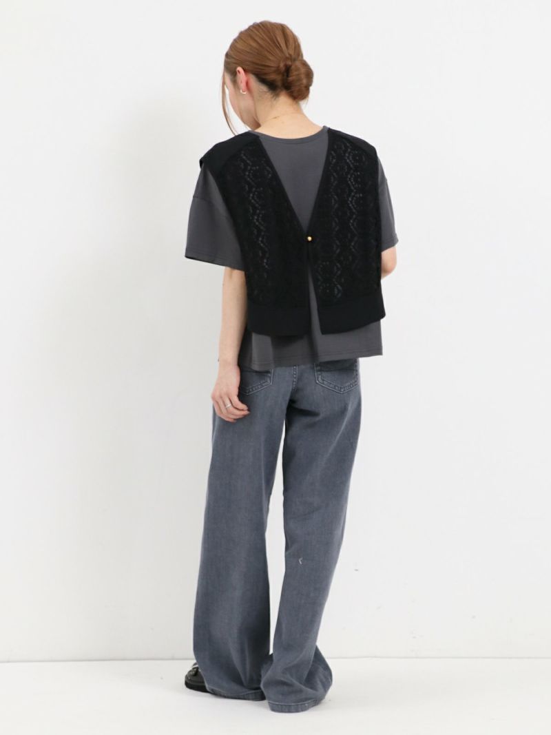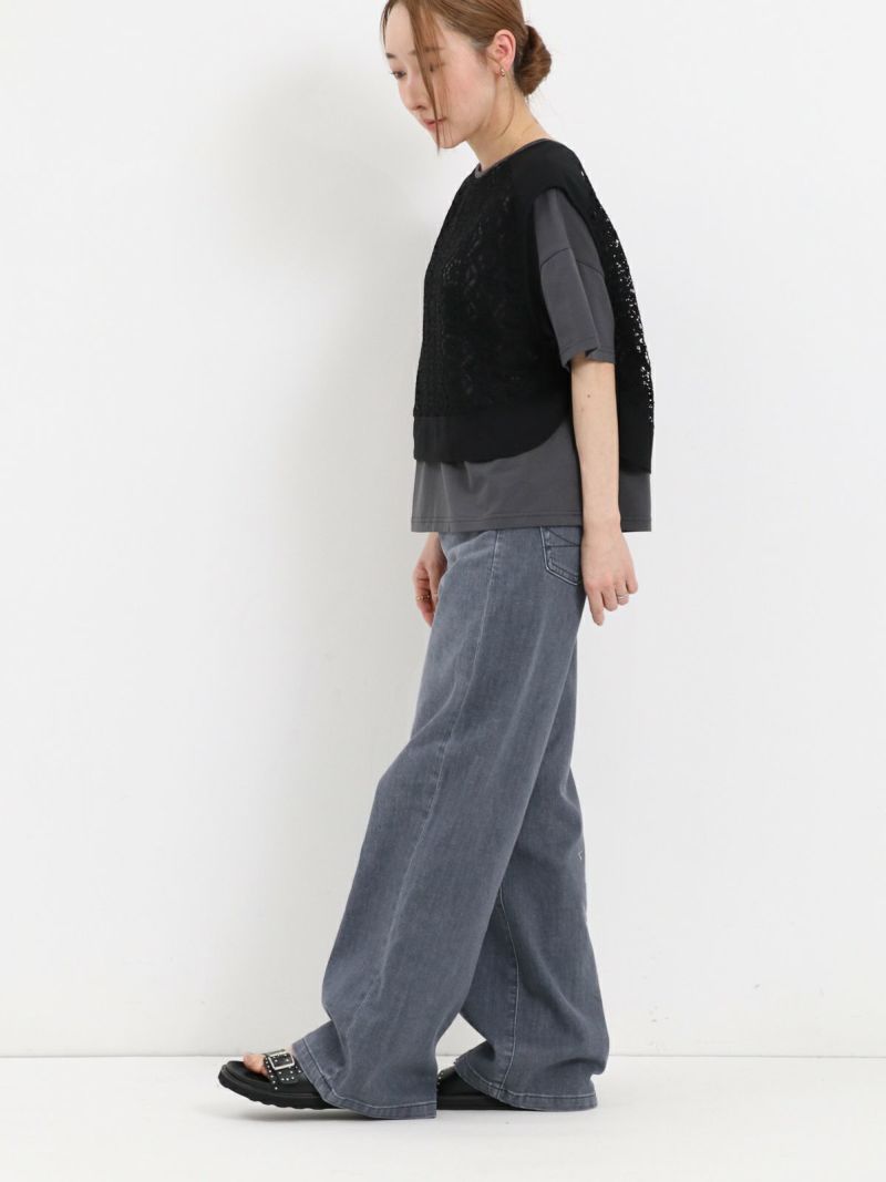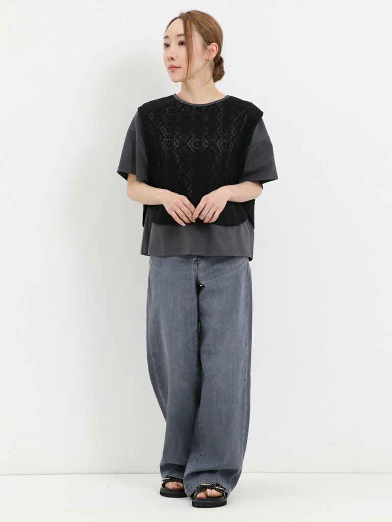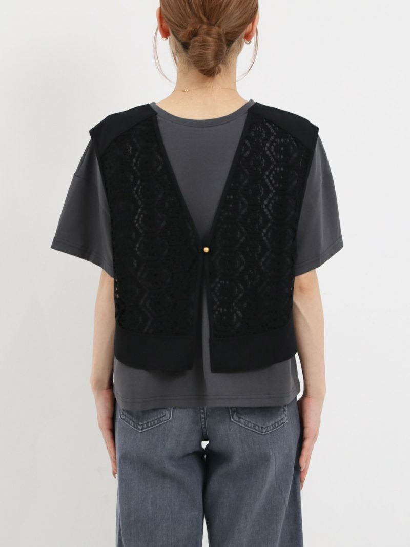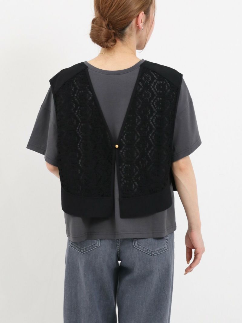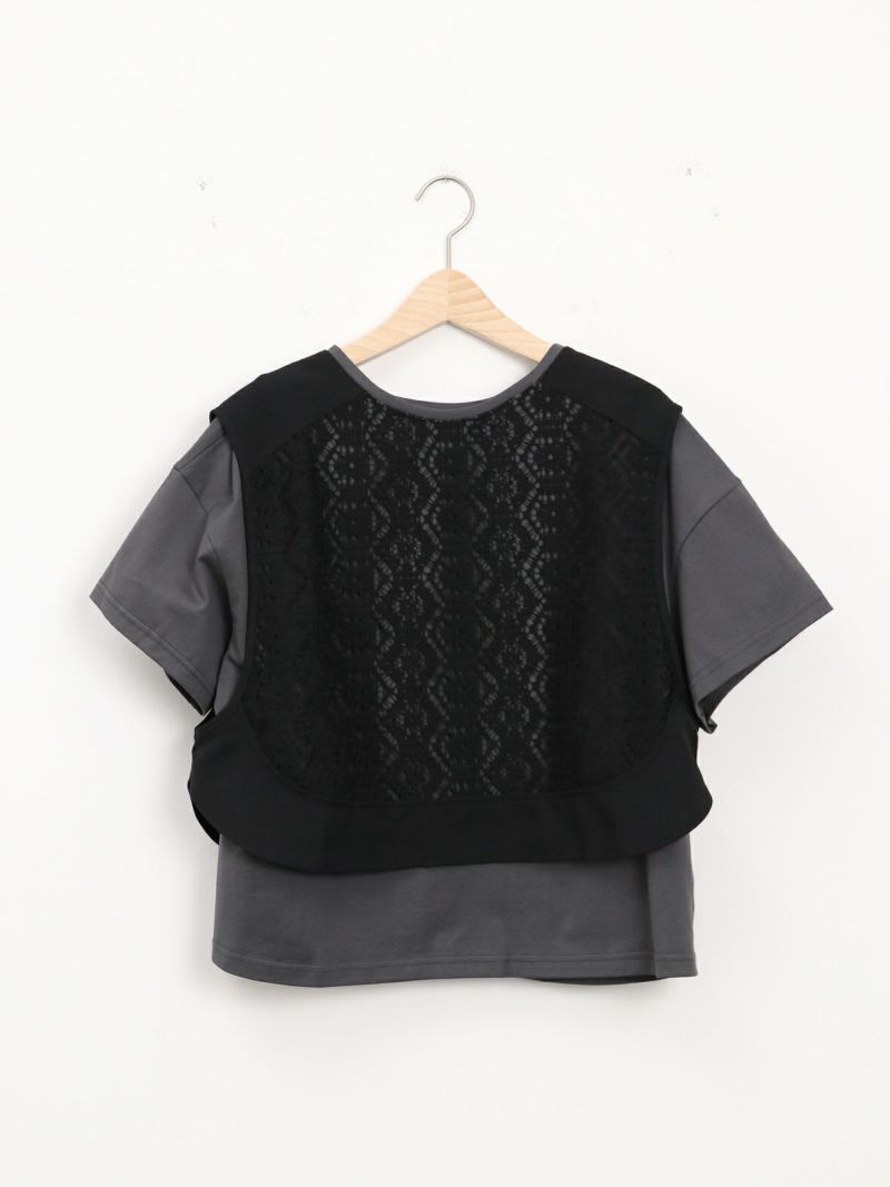 肌触りの良い上質なコットン100%のシルケット素材のレイヤードプルオーバー。 前後2wayで着用可能で、繊細なレースがカジュアルスタイルを品良くまとめてくれます。