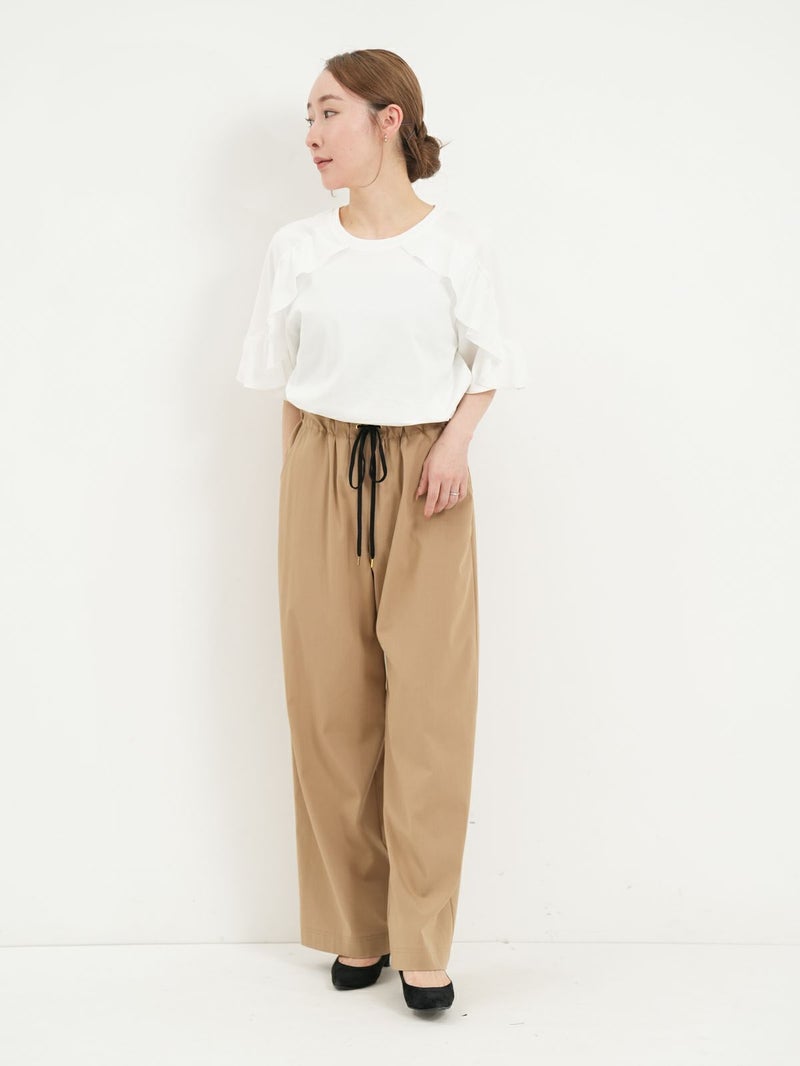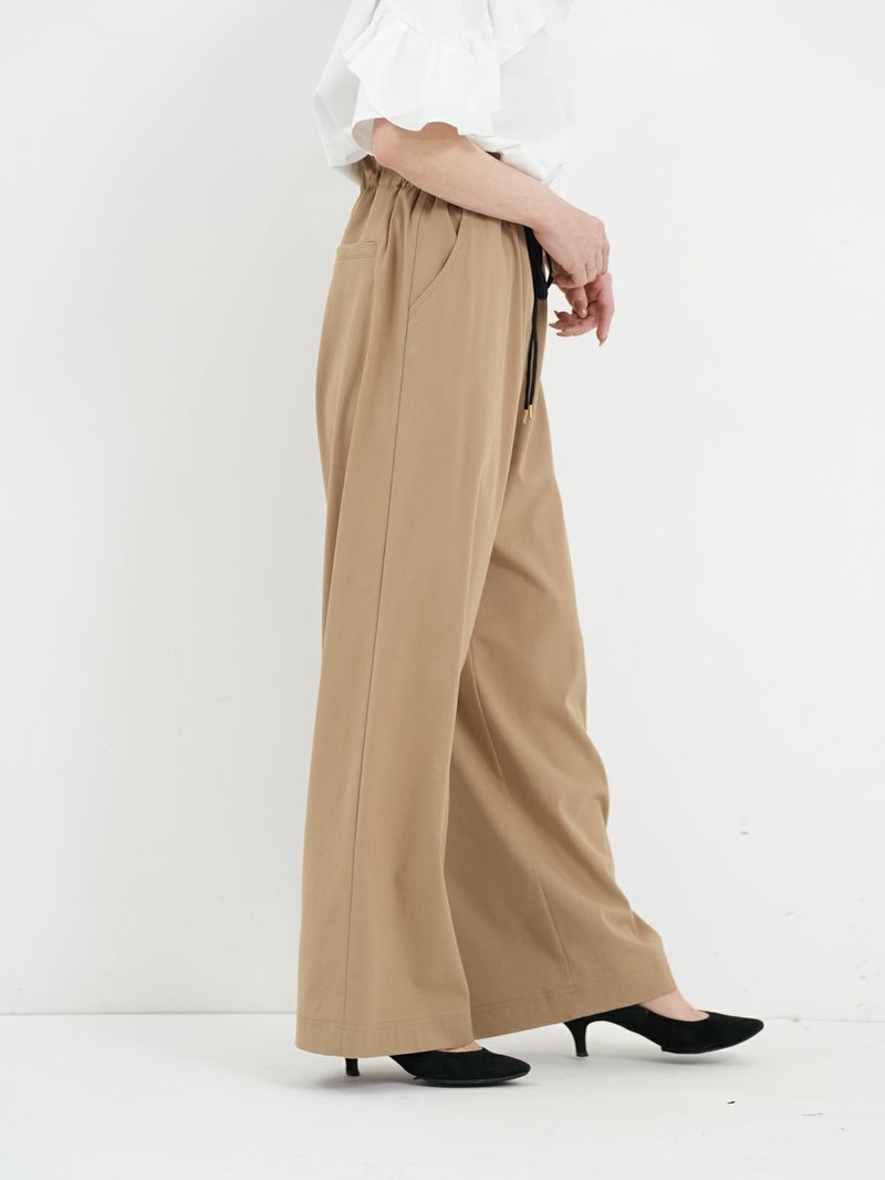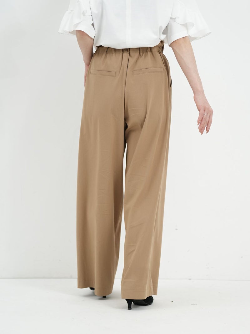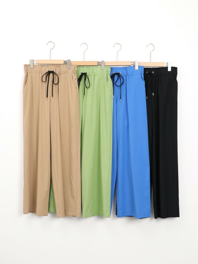 麻ライクなストレッチ生地を使用したセミワイドパンツ。ナチュラルな生地感と上品でスッキリとしたデザインが人気のロングセラーパンツです。
