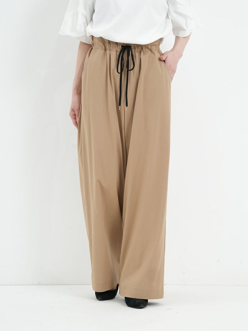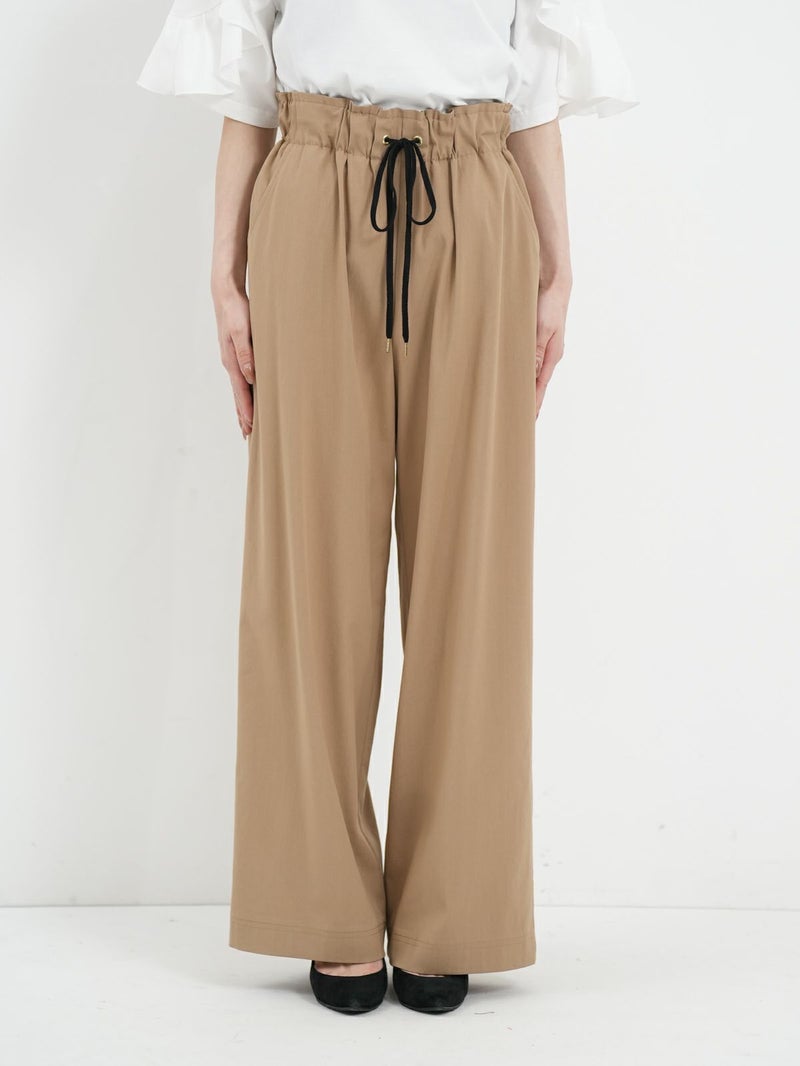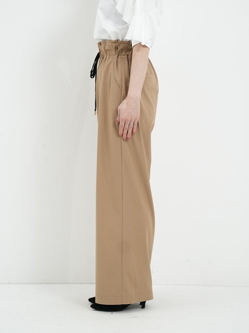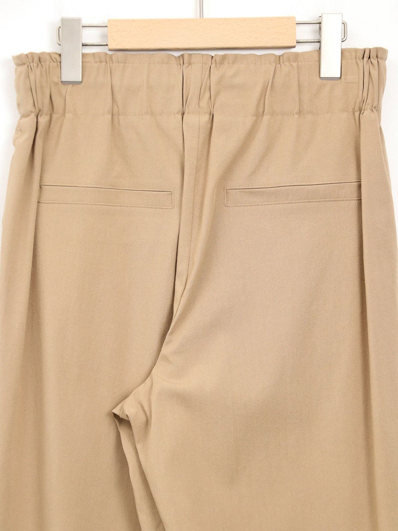 麻ライクなストレッチ生地を使用したセミワイドパンツ。ナチュラルな生地感と上品でスッキリとしたデザインが人気のロングセラーパンツです。