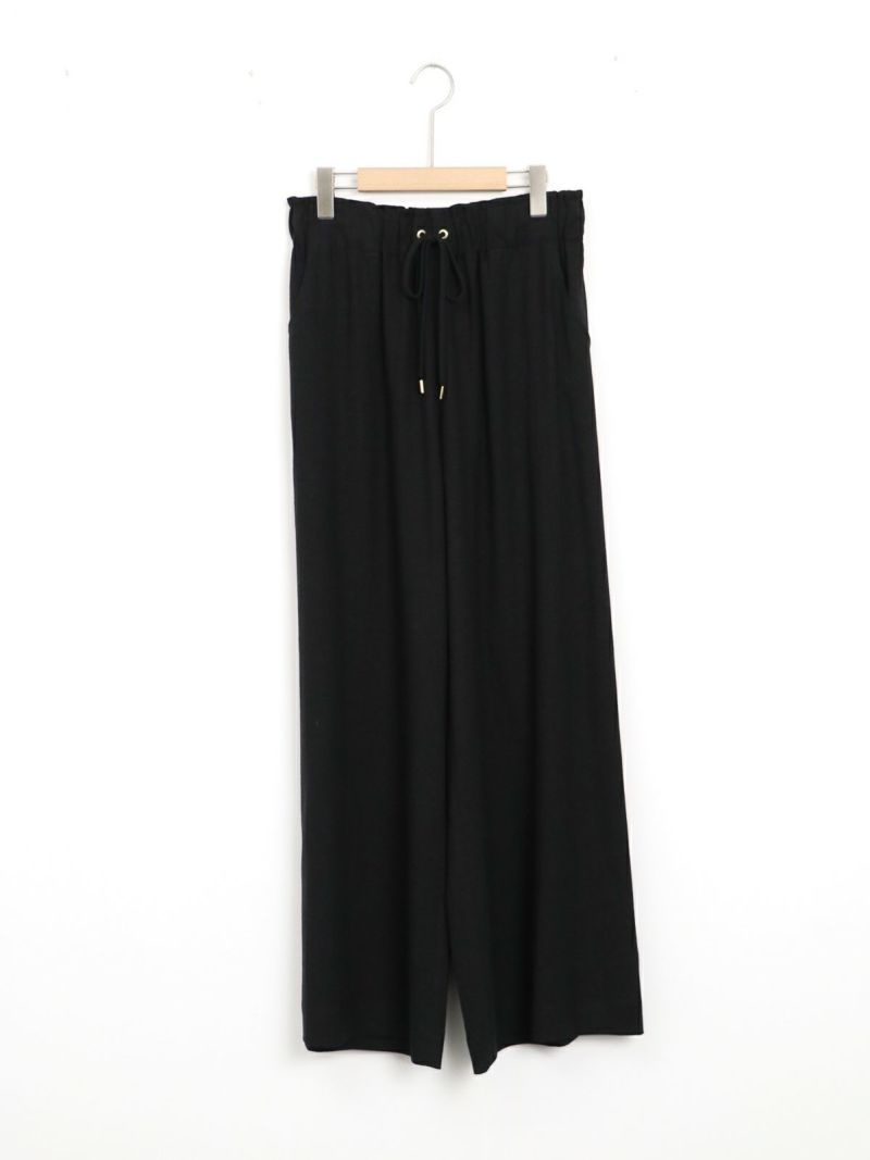 ナチュラルな風合いとリラックス感のあるtrois定番セミワイドパンツ。 程良くゆとりのあるシルエットが脚のラインを拾わず、ウエストゴムでストレスフリーな穿き心地です。
