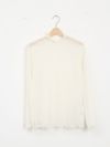 軽やかな透け感が魅力のトリコットシフォン素材を使用したハイネックトップス。 窮屈感のないストレスフリーな着心地なので、程よい透け感がスタイリングに抜け感を与え、キャミソールやワンピースとのレイヤードスタイルにぴったり。 インナーとしてもメイントップスとしても活躍し、シーズンレスで使える万能アイテムです。