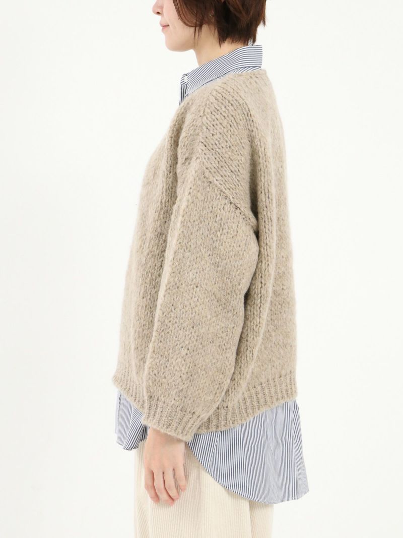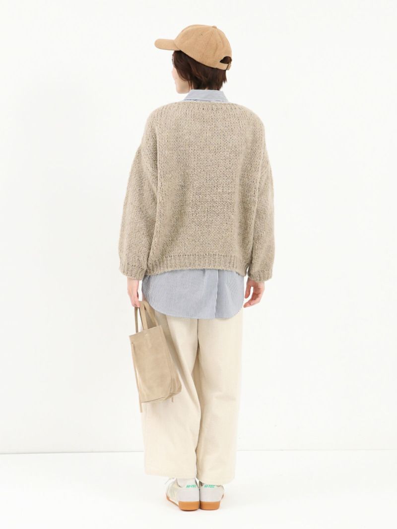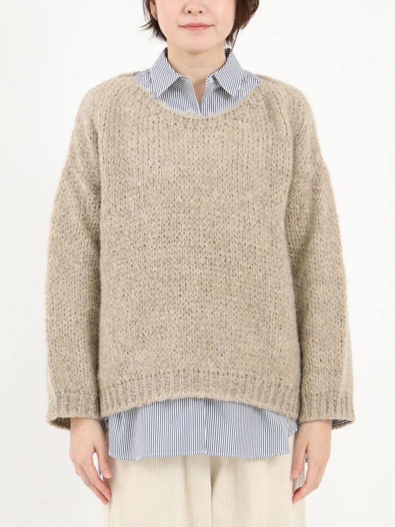 モヘア混でふんわりと柔らかな風合いのニット。 ゆったりとしたサイズ感・ボリュームのあるスリーブがポイントです。カジュアルなボトムスはもちろん、綺麗めなボトムスとも相性抜群。カットソーやシャツを合わせてレイヤードスタイルもおすすめです。