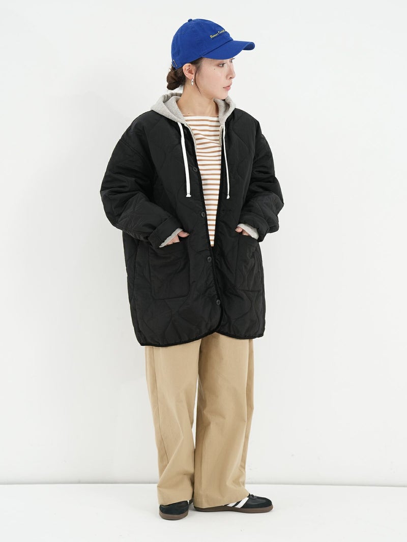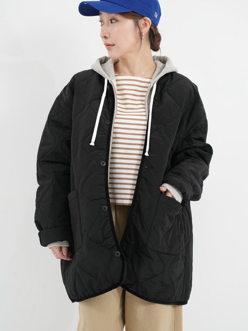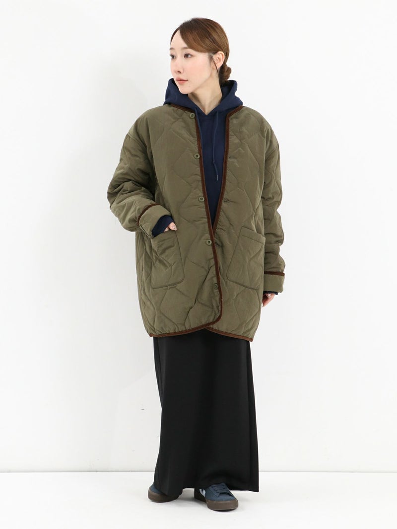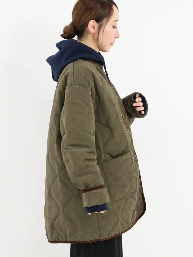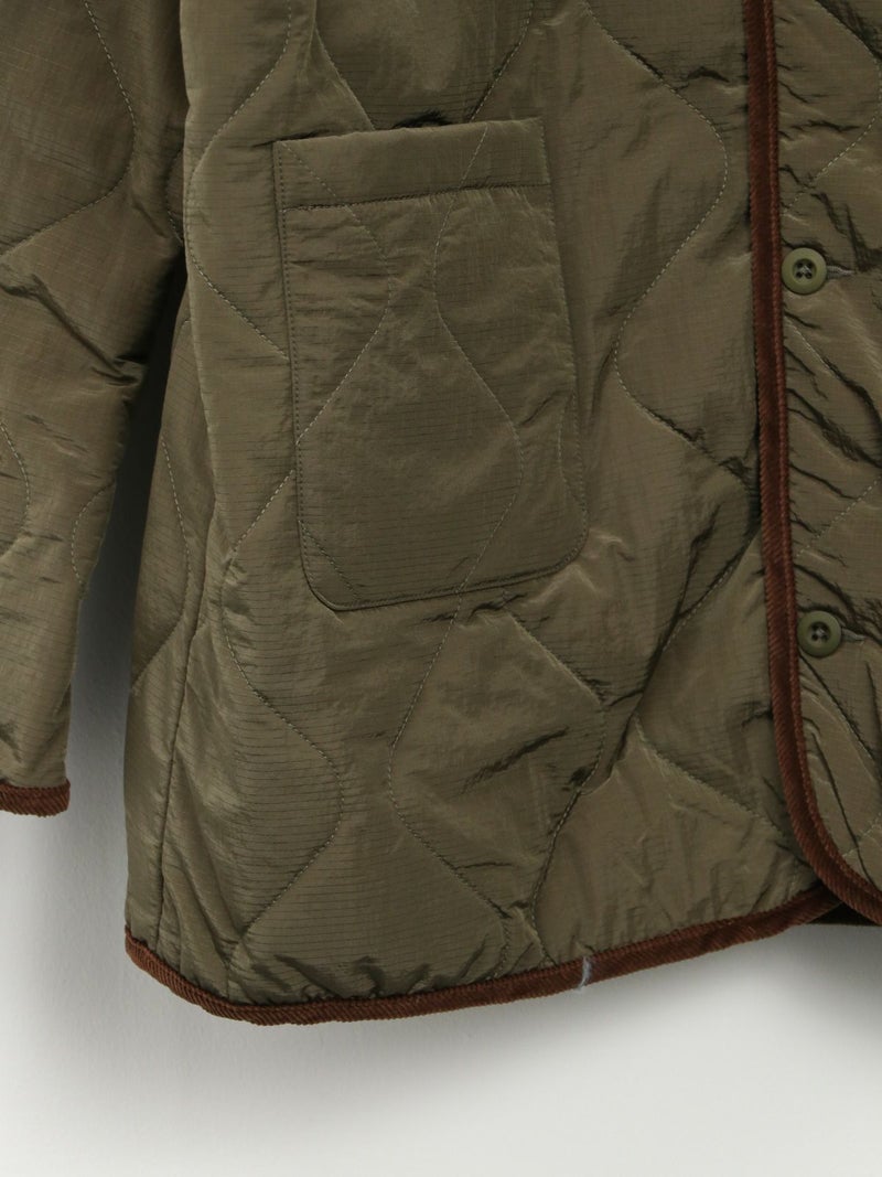 軽量で耐久性に優れたリップナイロン素材を使用したキルトジャケット。 中綿入りでしっかりと保温性がありながらも、スッキリとしたシルエット。アウターとしてはもちろん、インナージャケットとしても活躍します。