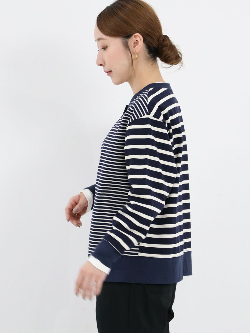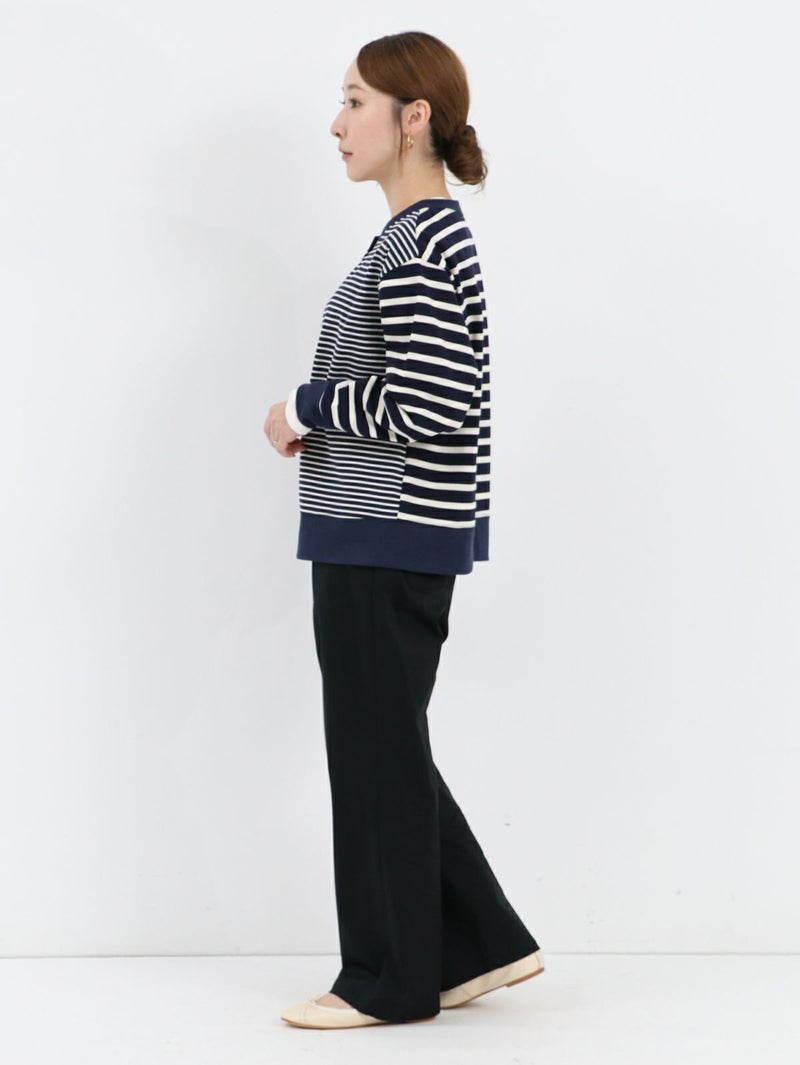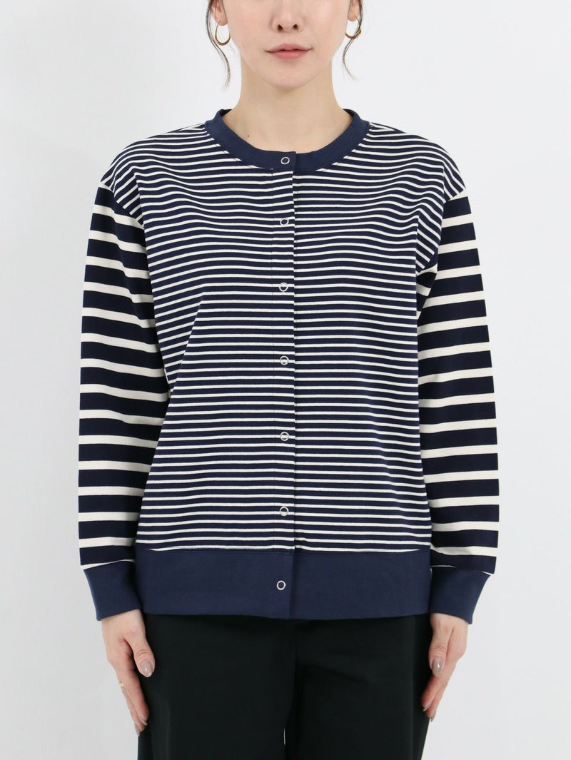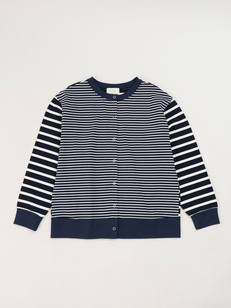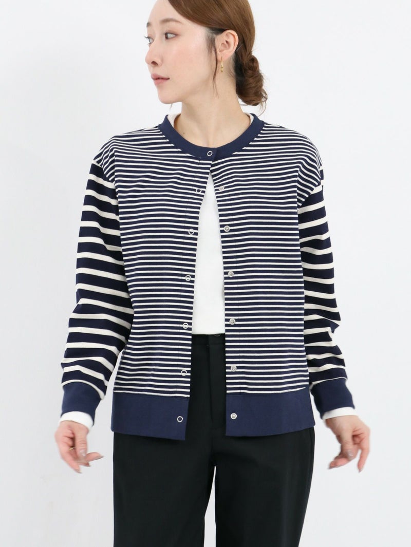 ボーダー柄が爽やかで上品な印象のカーディガン。 洗いざらしのようなドライでハリ感のある生地を使用しています。ピッチの異なるボーダーを組み合わせることで、コーディネートにアクセントをプラスします。