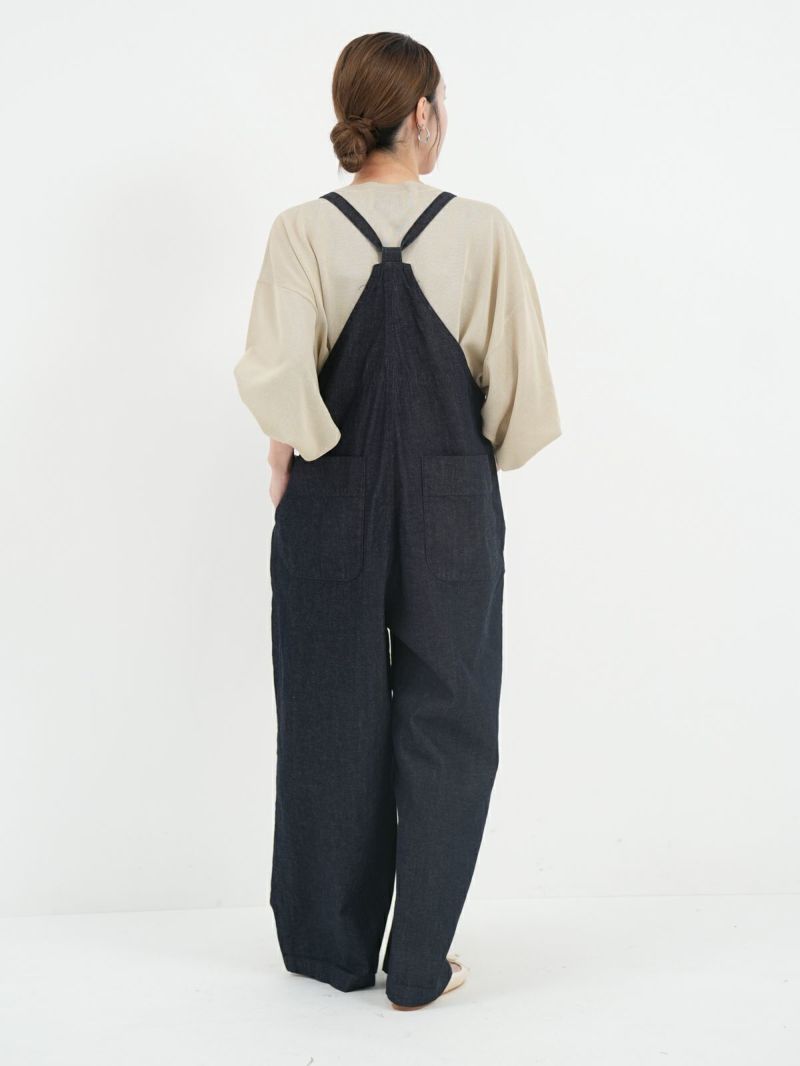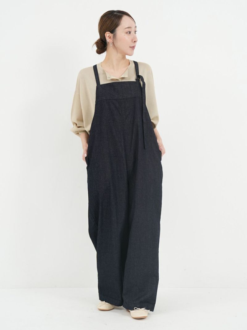 1枚で主役になるサロペット。 肩紐が細く、ワイドシルエットでもカジュアルになりすぎず、合わせるインナーや羽織り次第でマルチなスタイリングが叶うデザインです。 ※着丈は肩紐で調節可能。